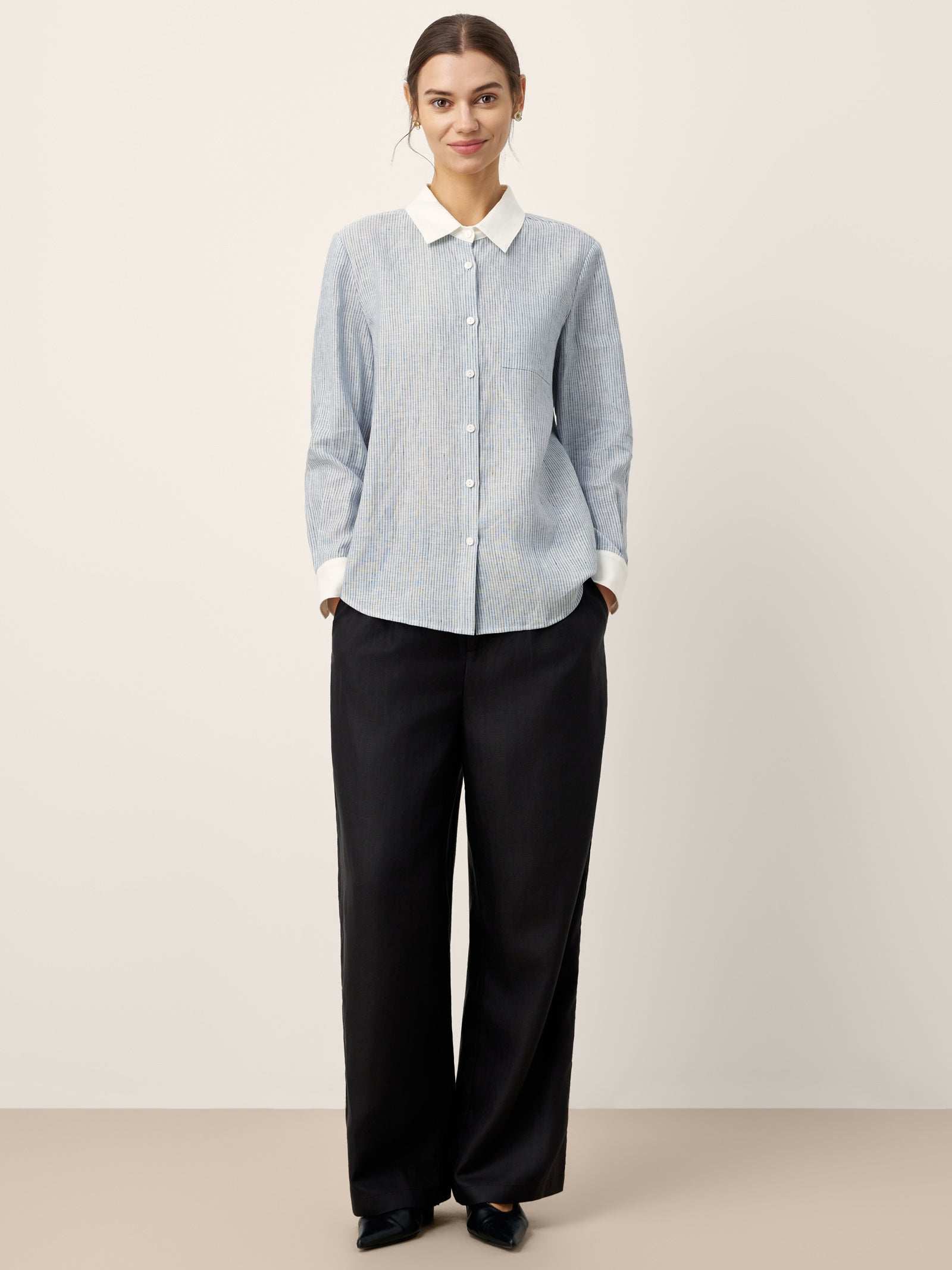 - Natural Shell Button Closure: Eco-friendly pearlescent fasteners mirror collar accents, uniting function with understated luxury.