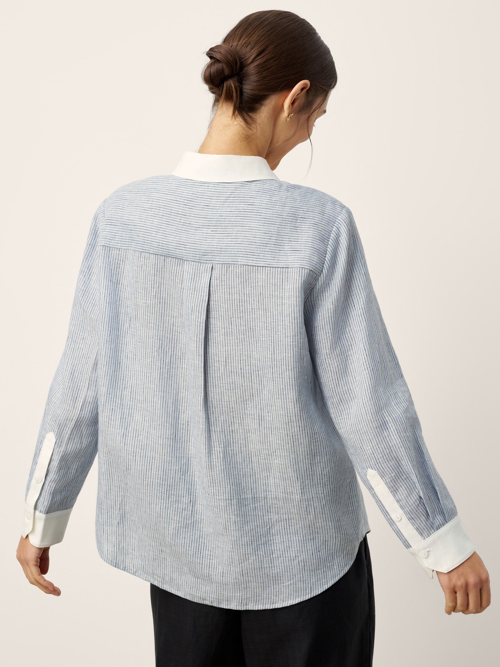 100% Linen Striped Patchwork Pleat Shirt THEA