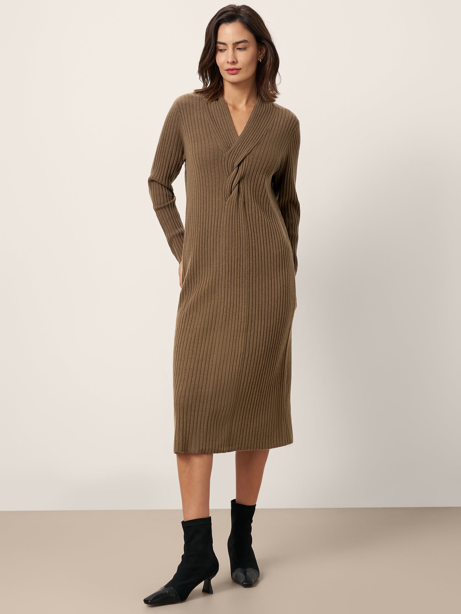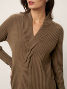 100% Merino Wool Twist Front Long Sleeve Top DEBORAH