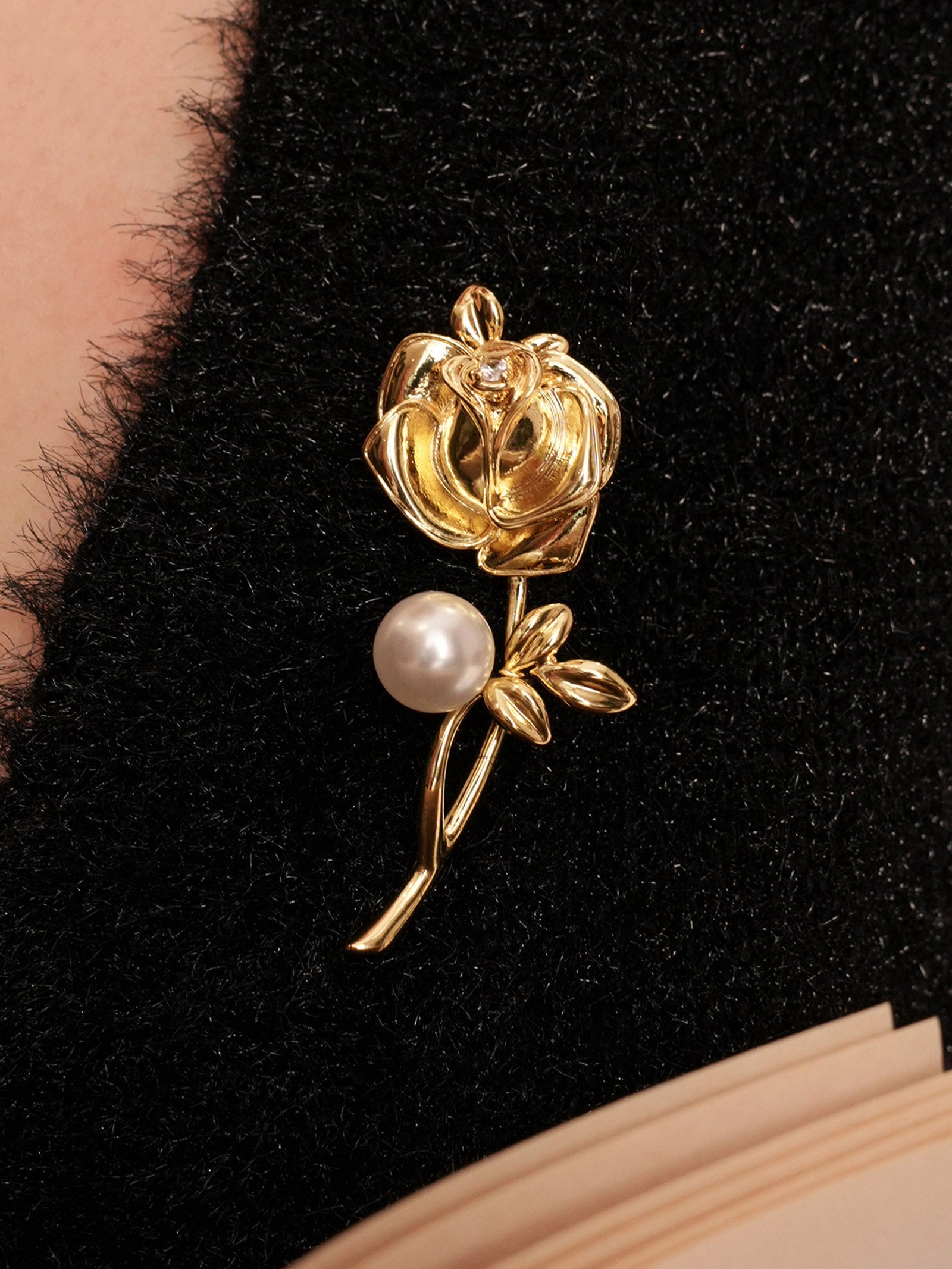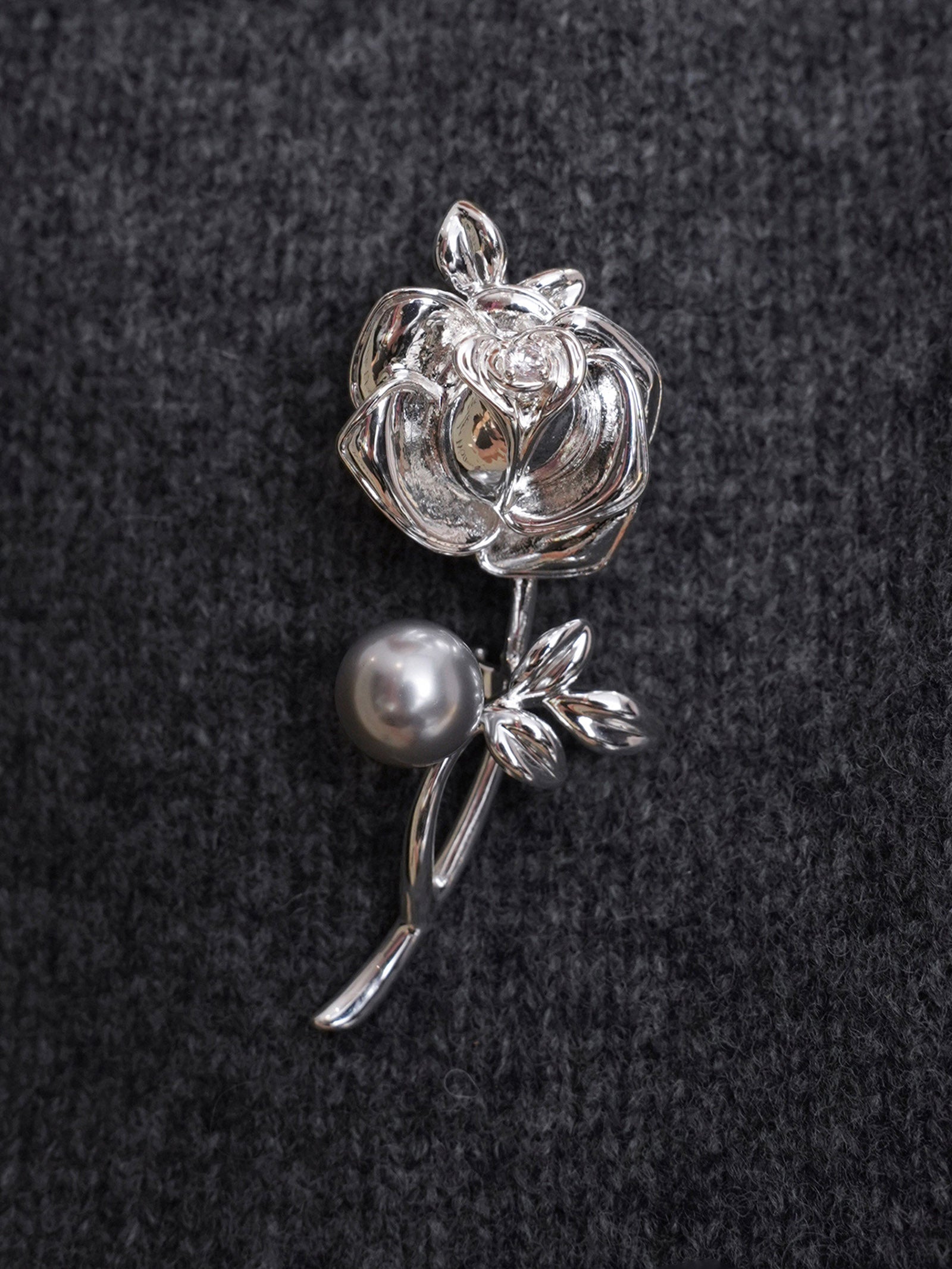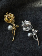 Freshwater Pearl & Alloy Rose Carved Brooch