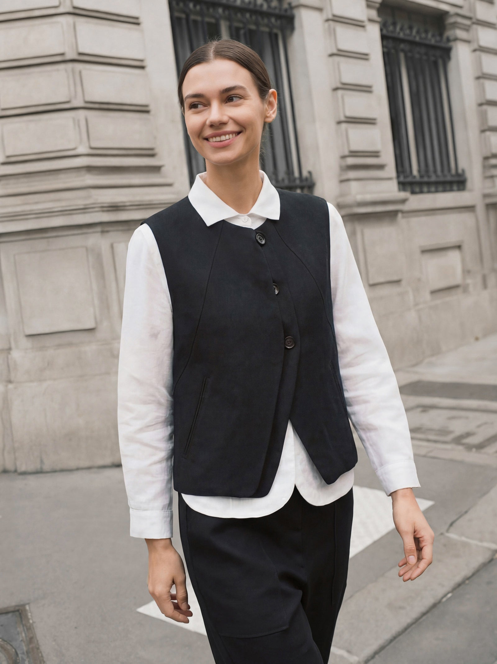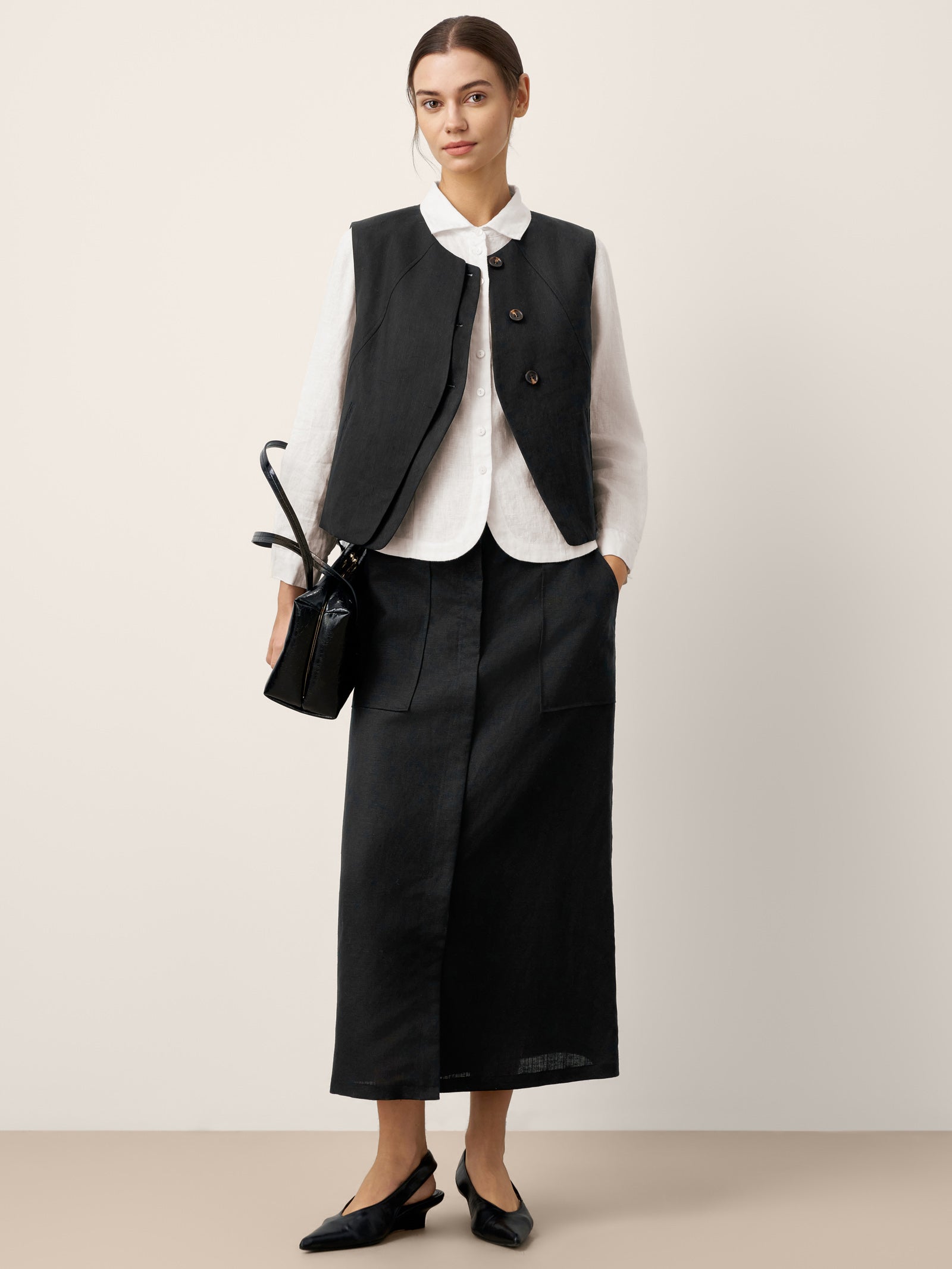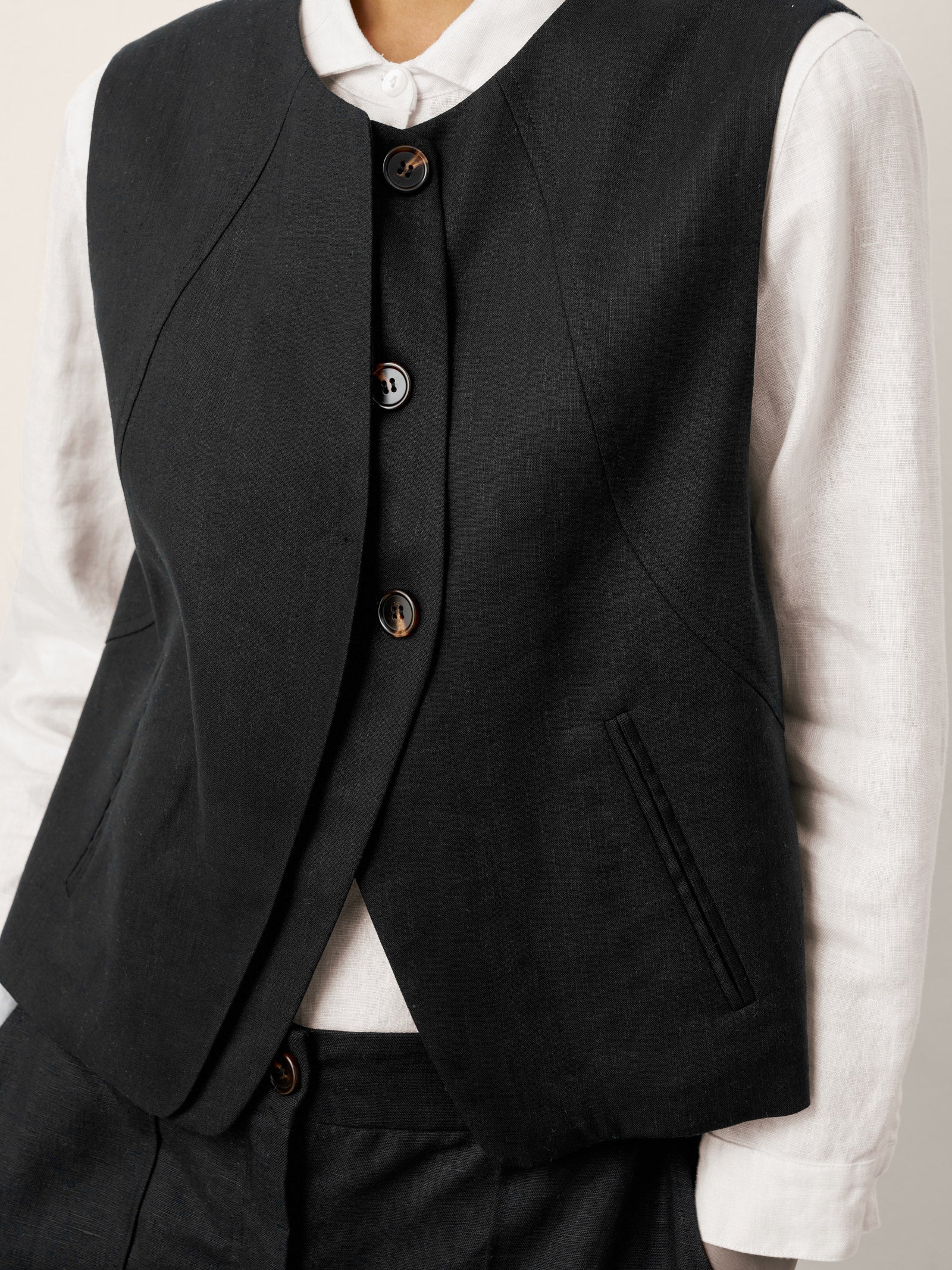 Linen-Lyocell Panel Layered Vest ODELIA