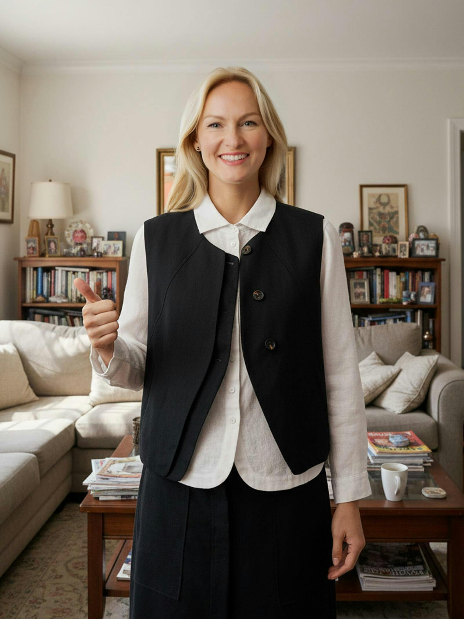 - Office Edge: Sleeveless silk blouse + tapered trousers + metallic loafers
