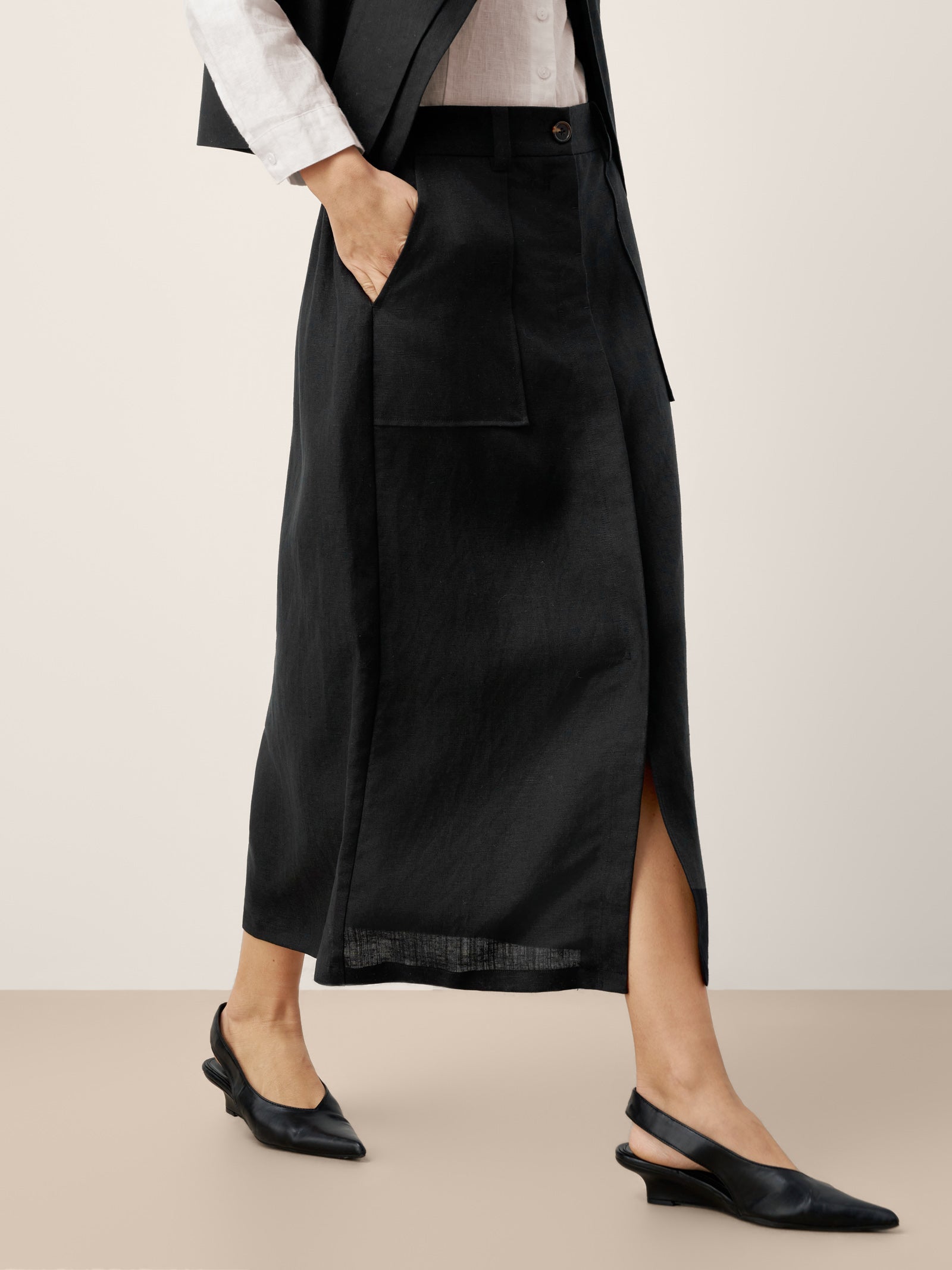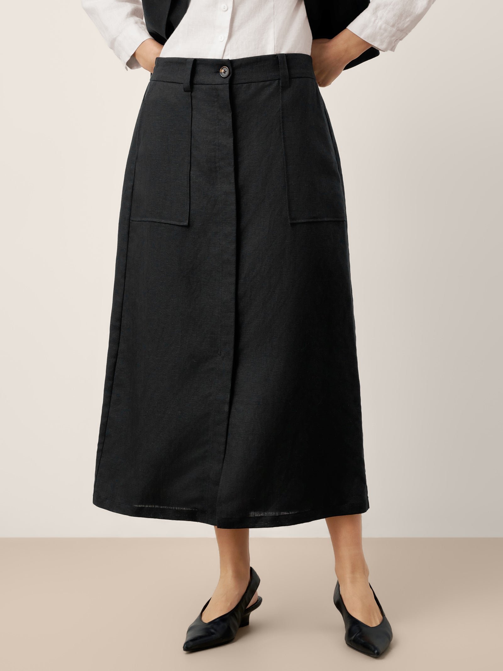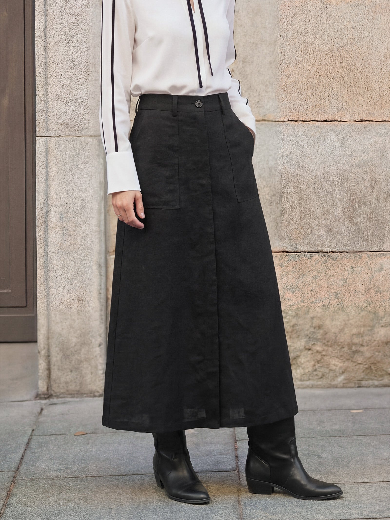 Linen-Lyocell Patch Pocket Placket Skirt LYRA