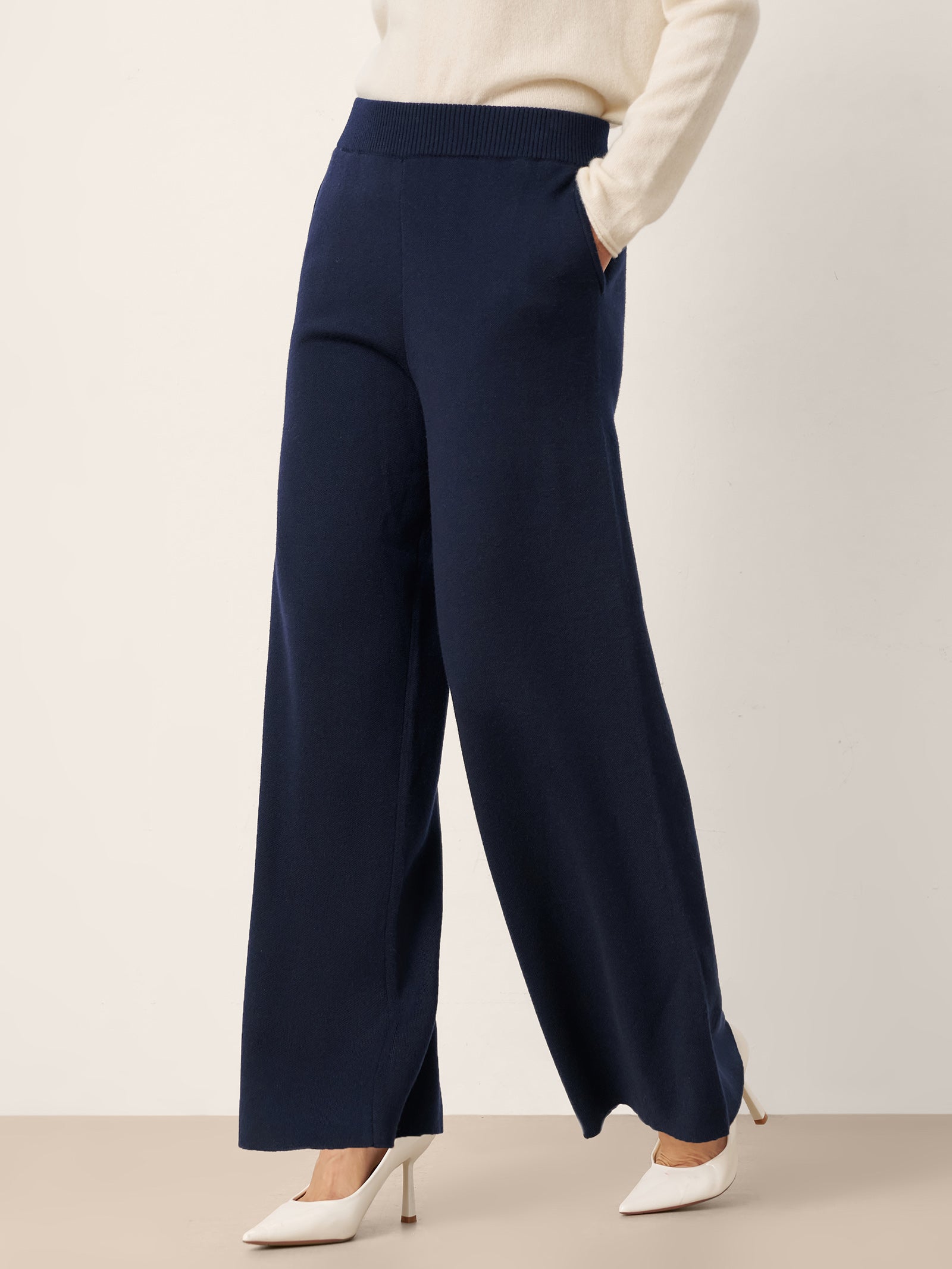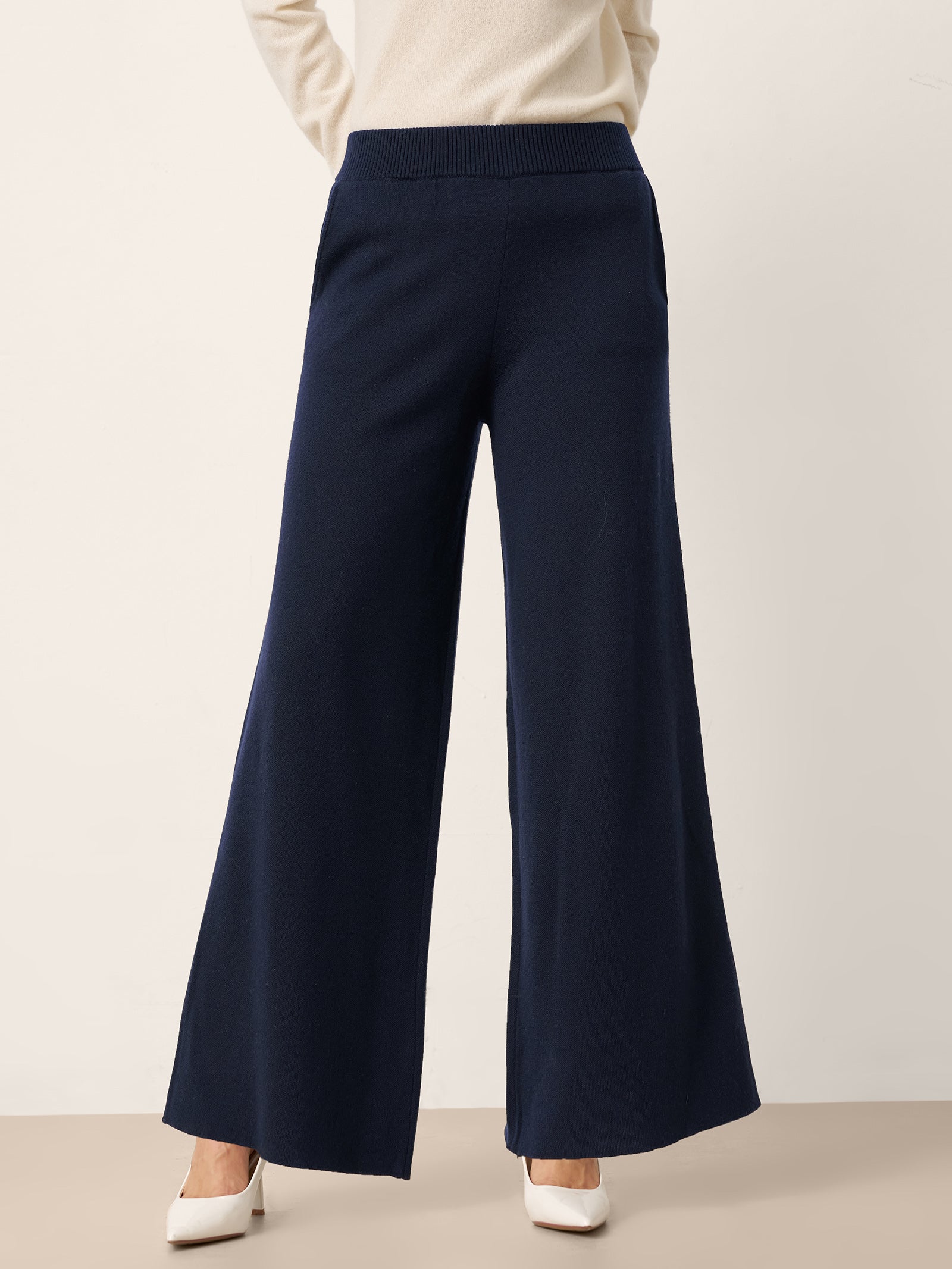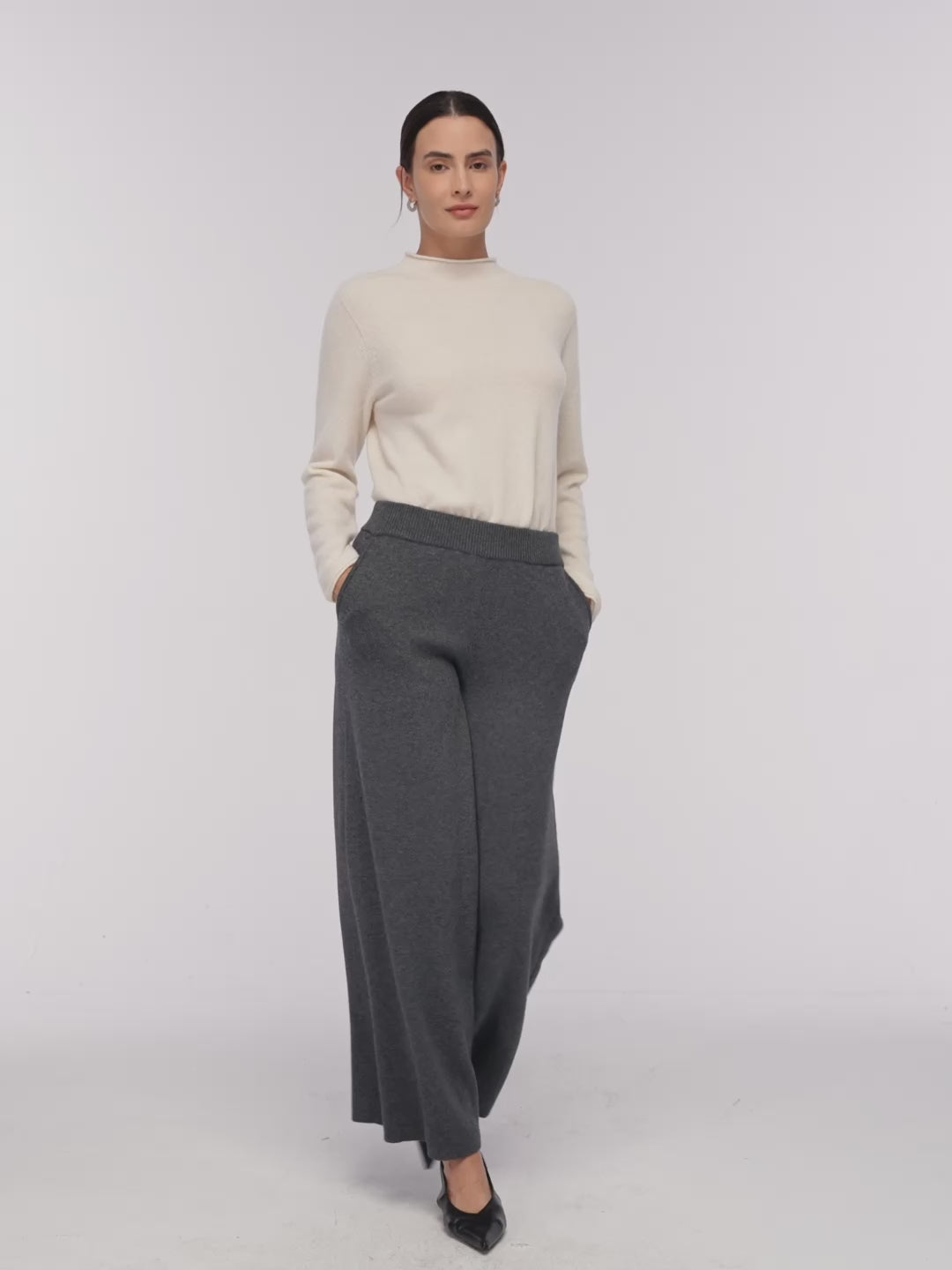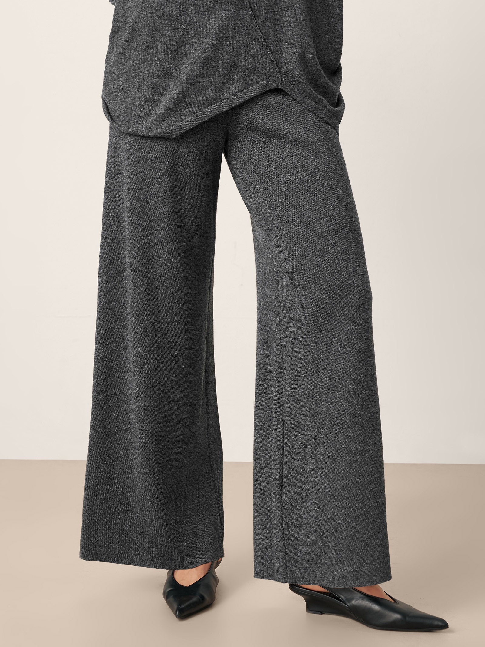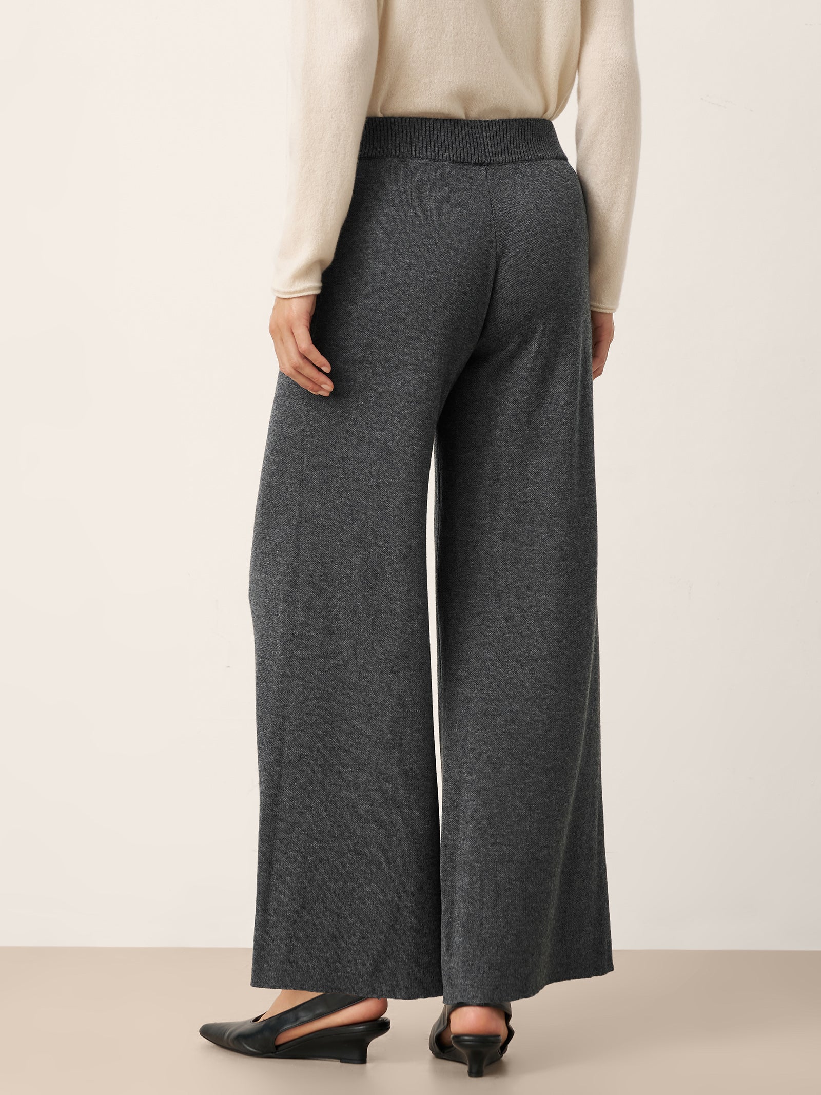 Merino Wool Ribbed Waist Wide Leg Pants CRISTAL