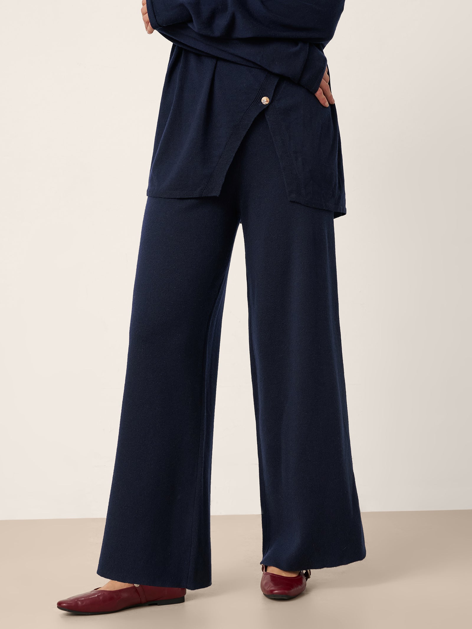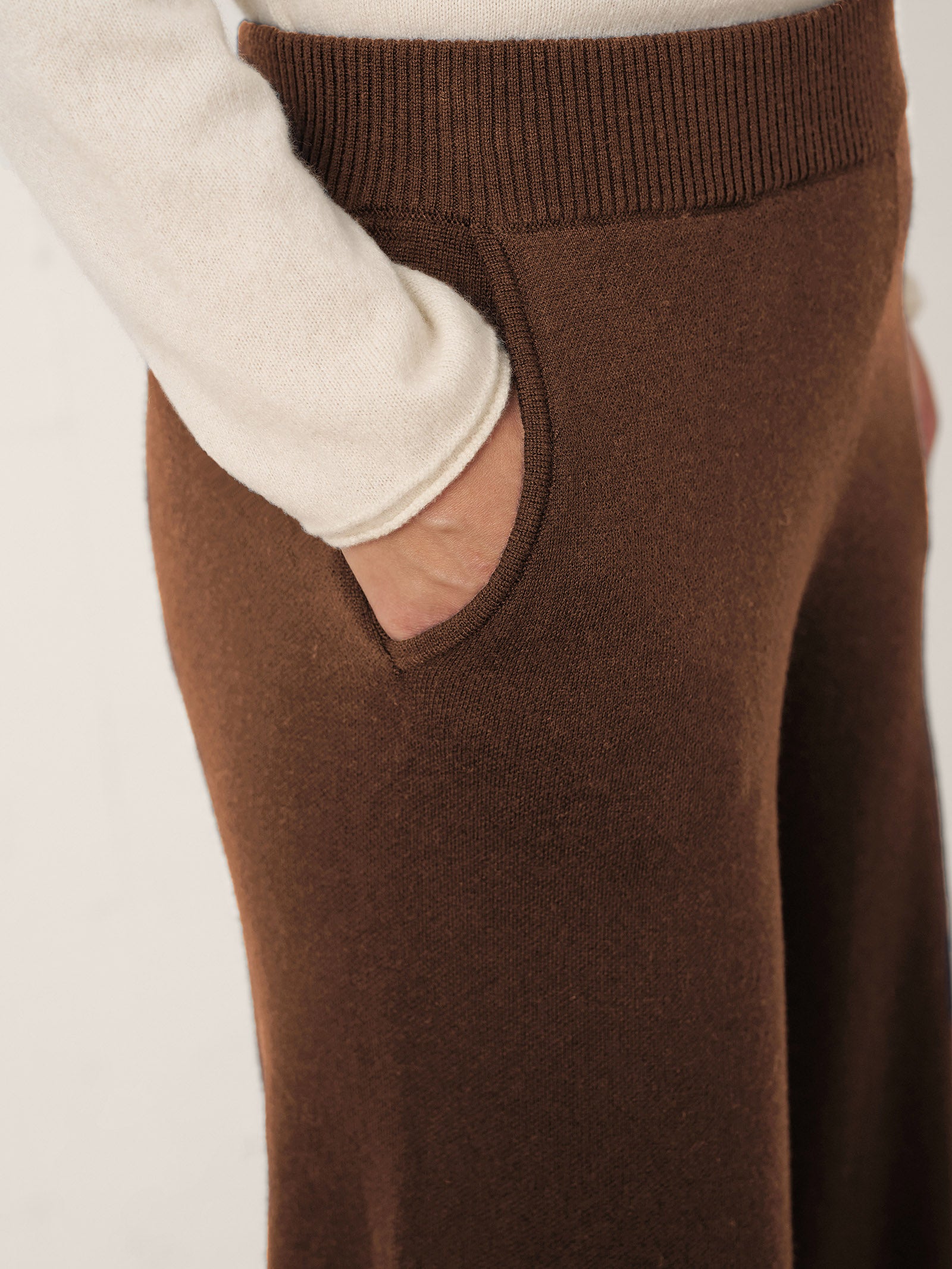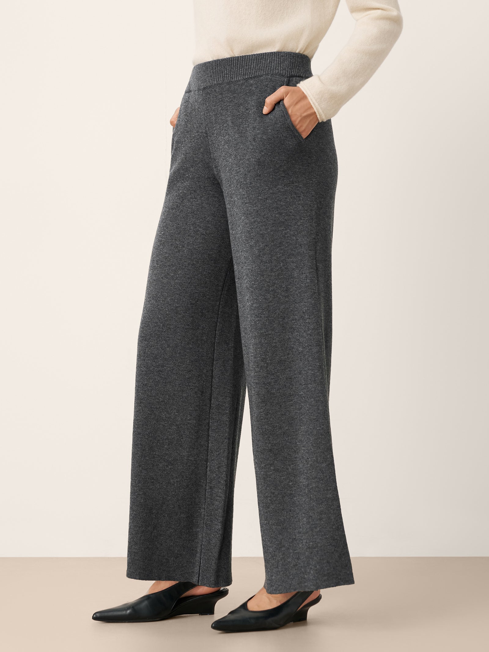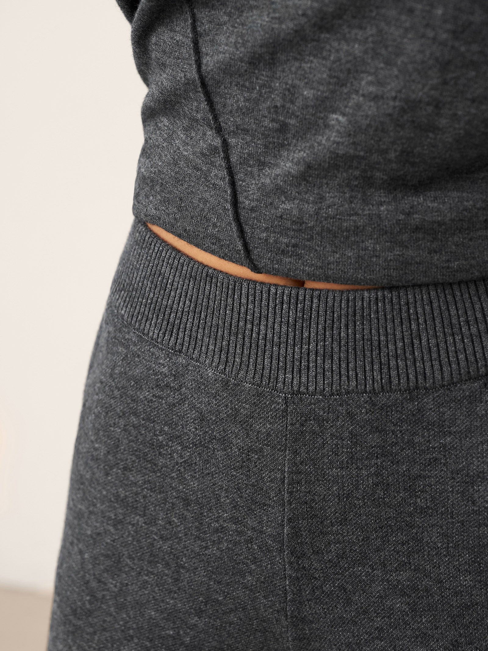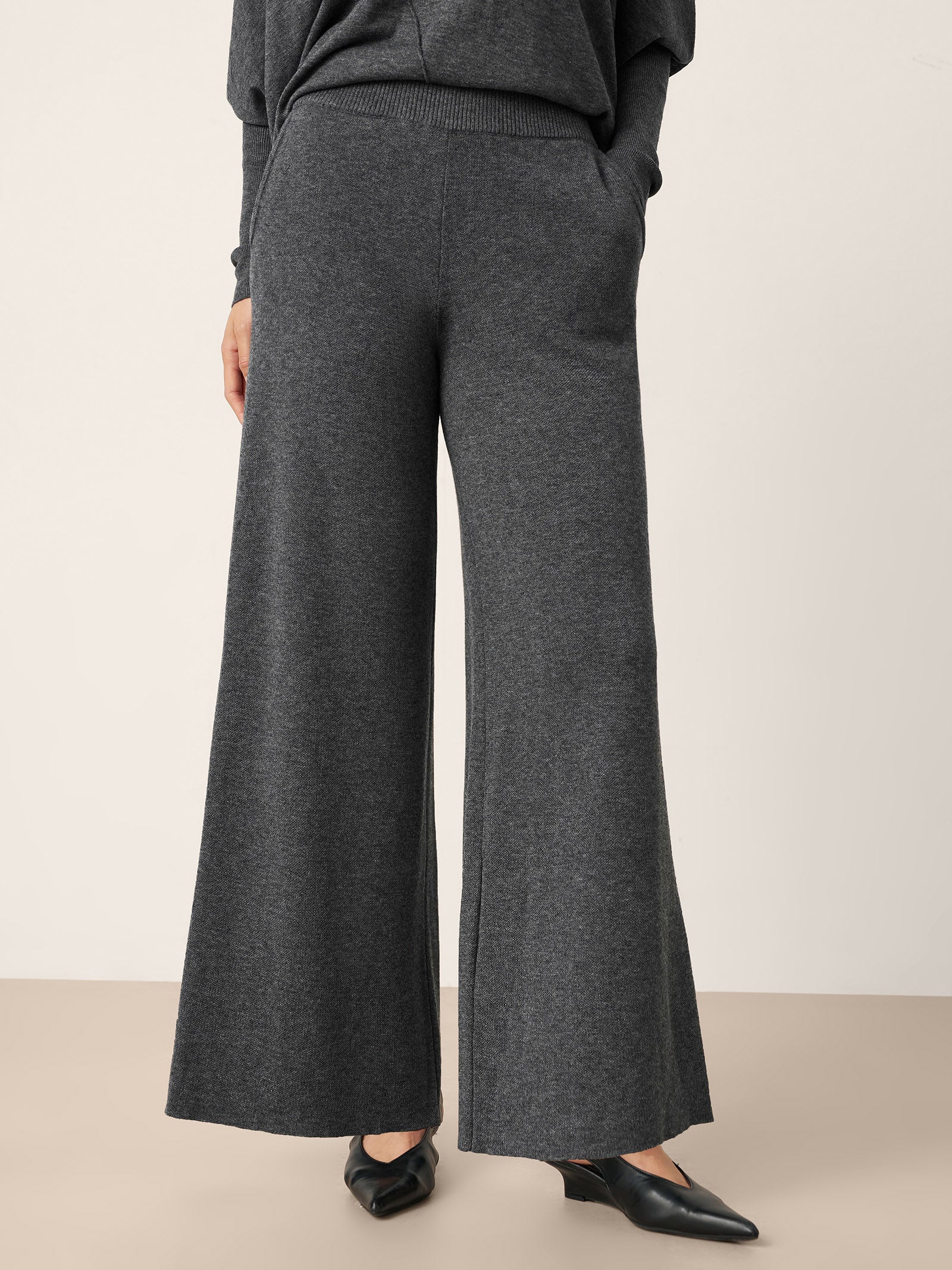 Merino Wool Ribbed Waist Wide Leg Pants CRISTAL