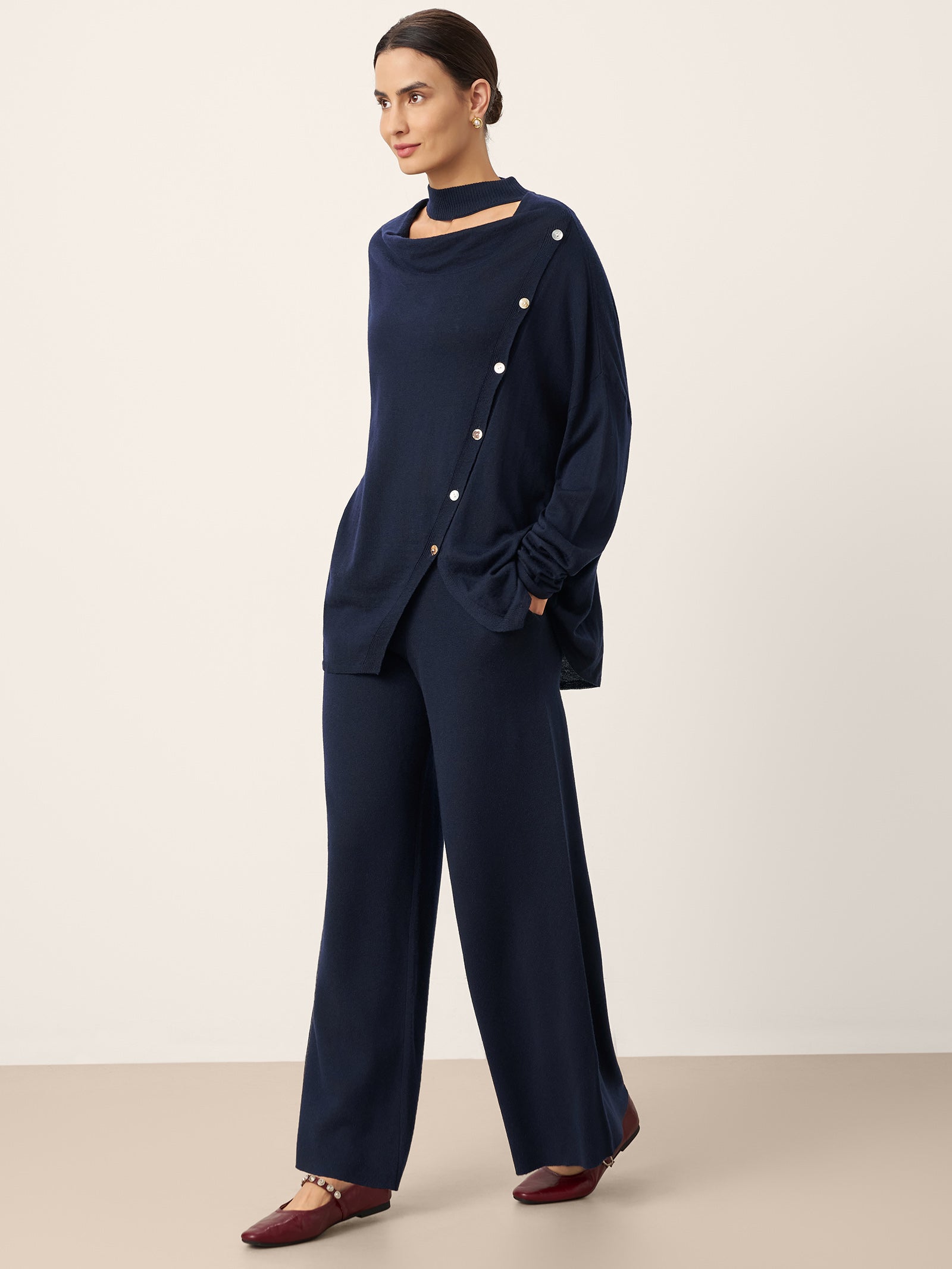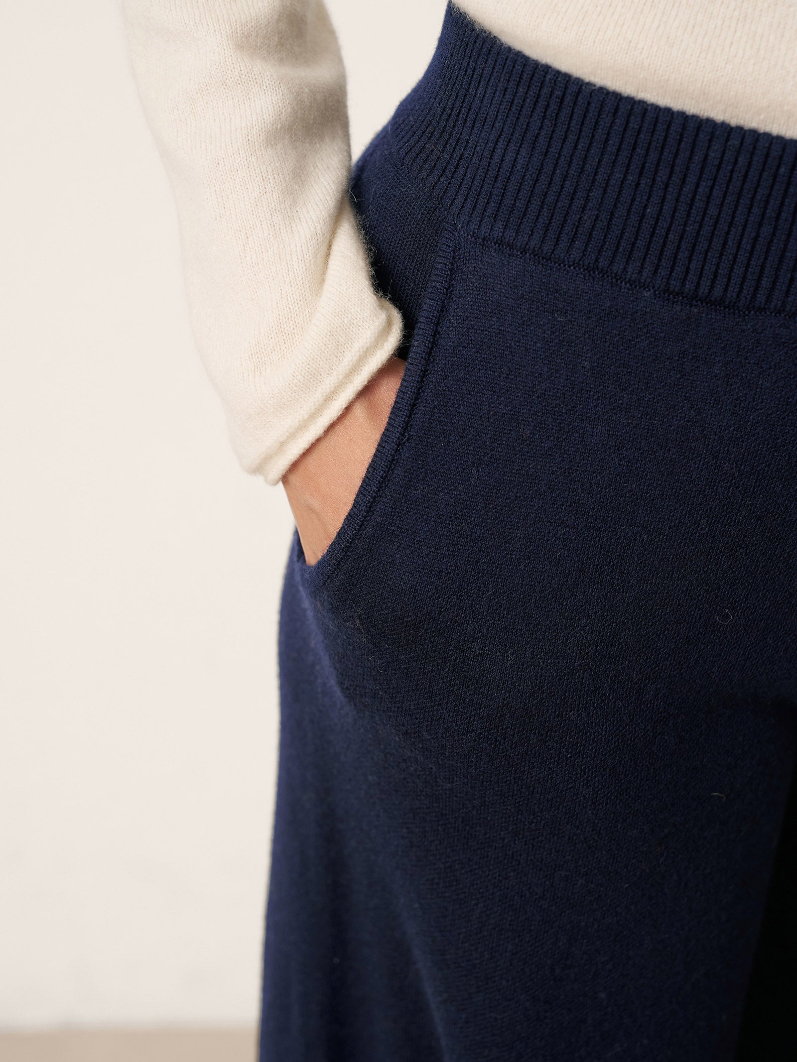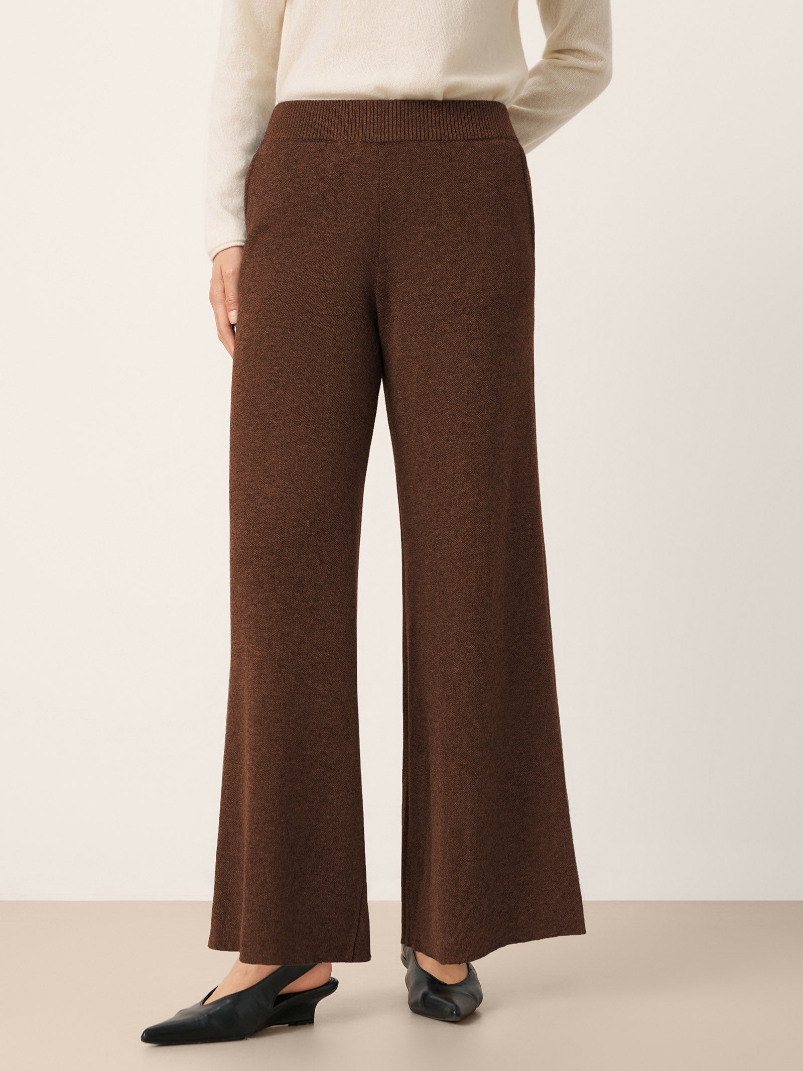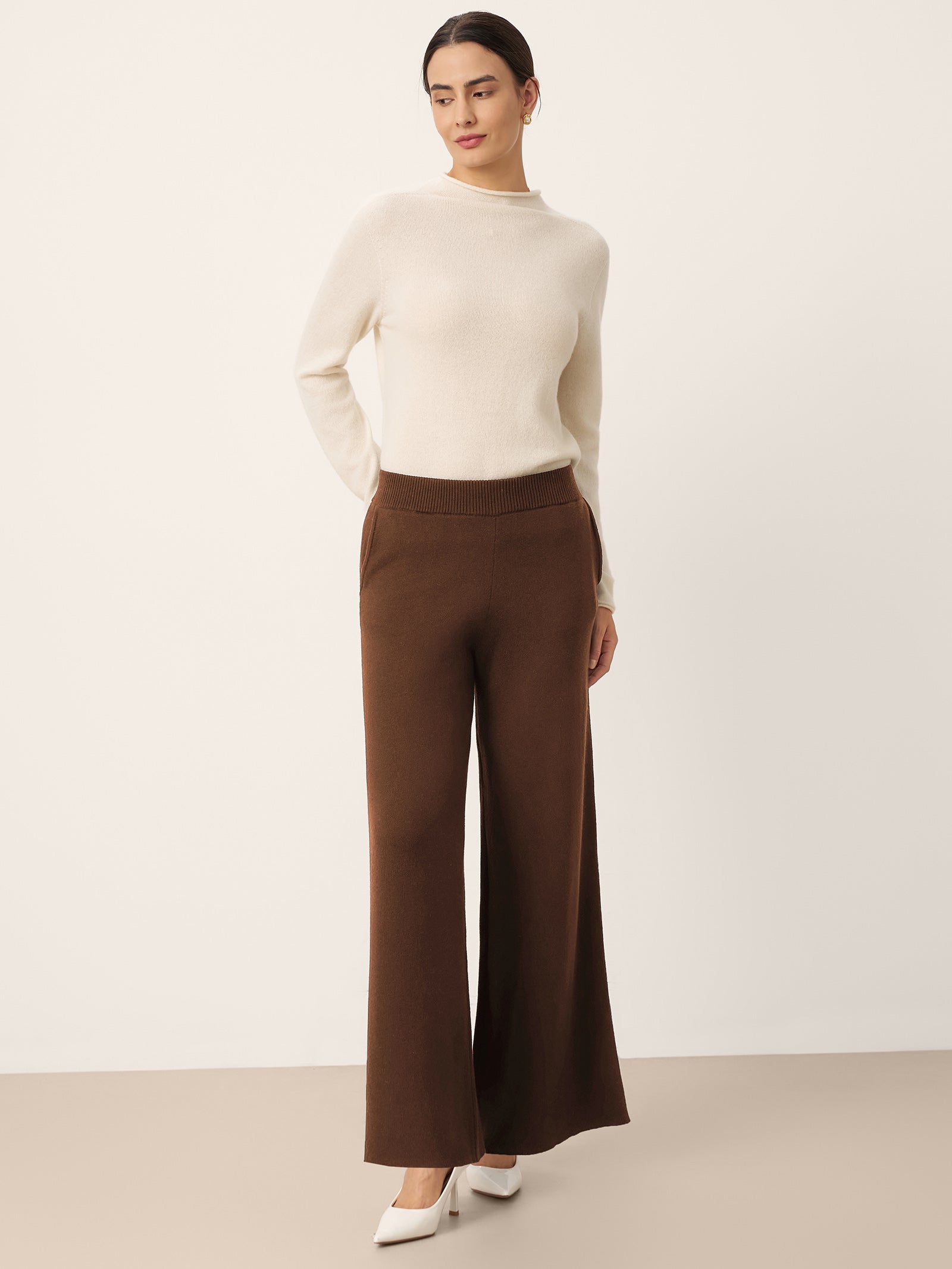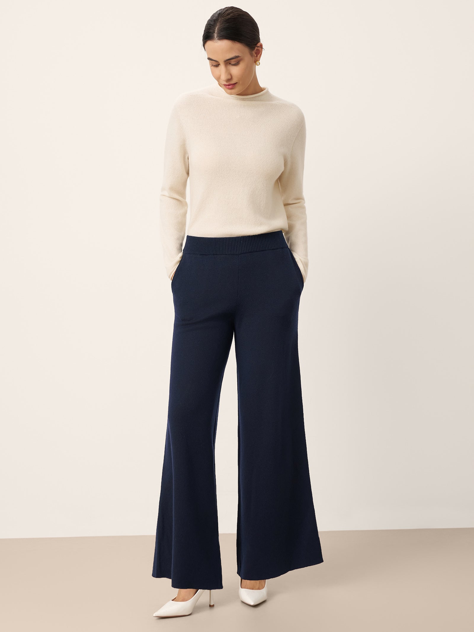 Merino Wool Ribbed Waist Wide Leg Pants CRISTAL