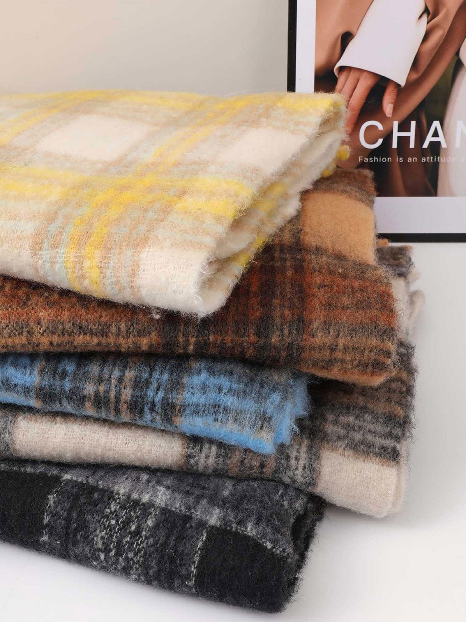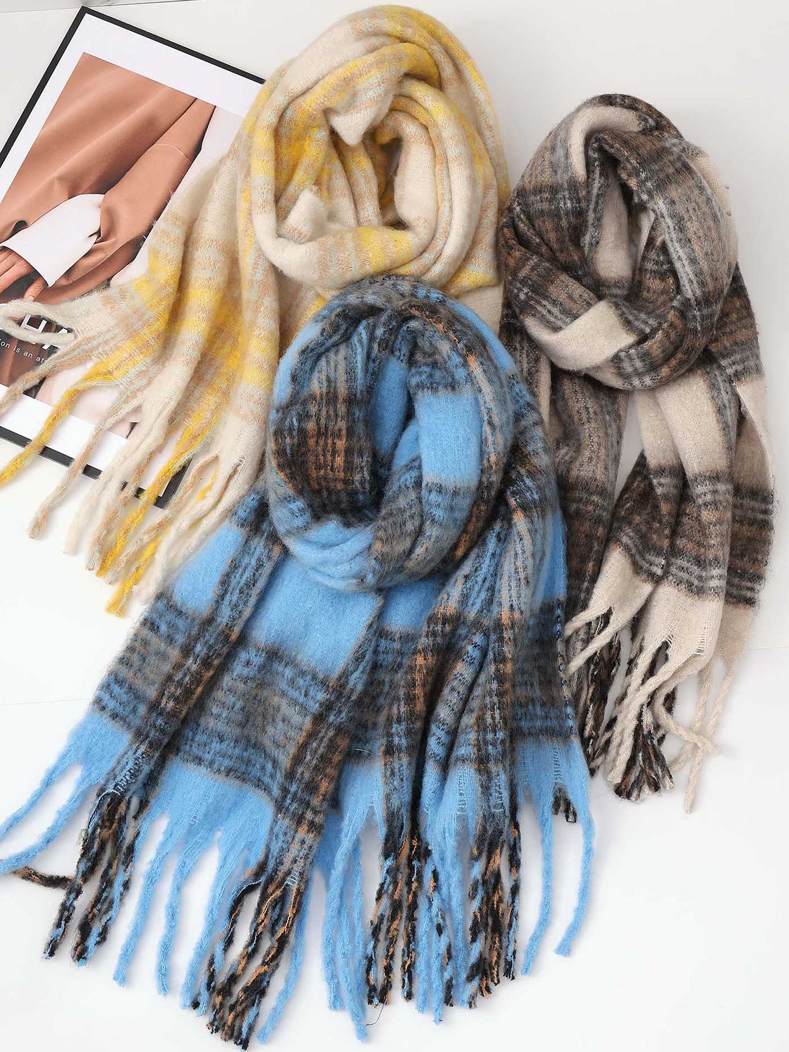 This scarf features a classic plaid design that never goes out of style, paired with soft fringe edges for a casual-chic touch. It has a skin-friendly texture and provides reliable warmth, ideal for everyday use. Measuring 200¡Á45cm, it offers generous length for versatile draping and layering.