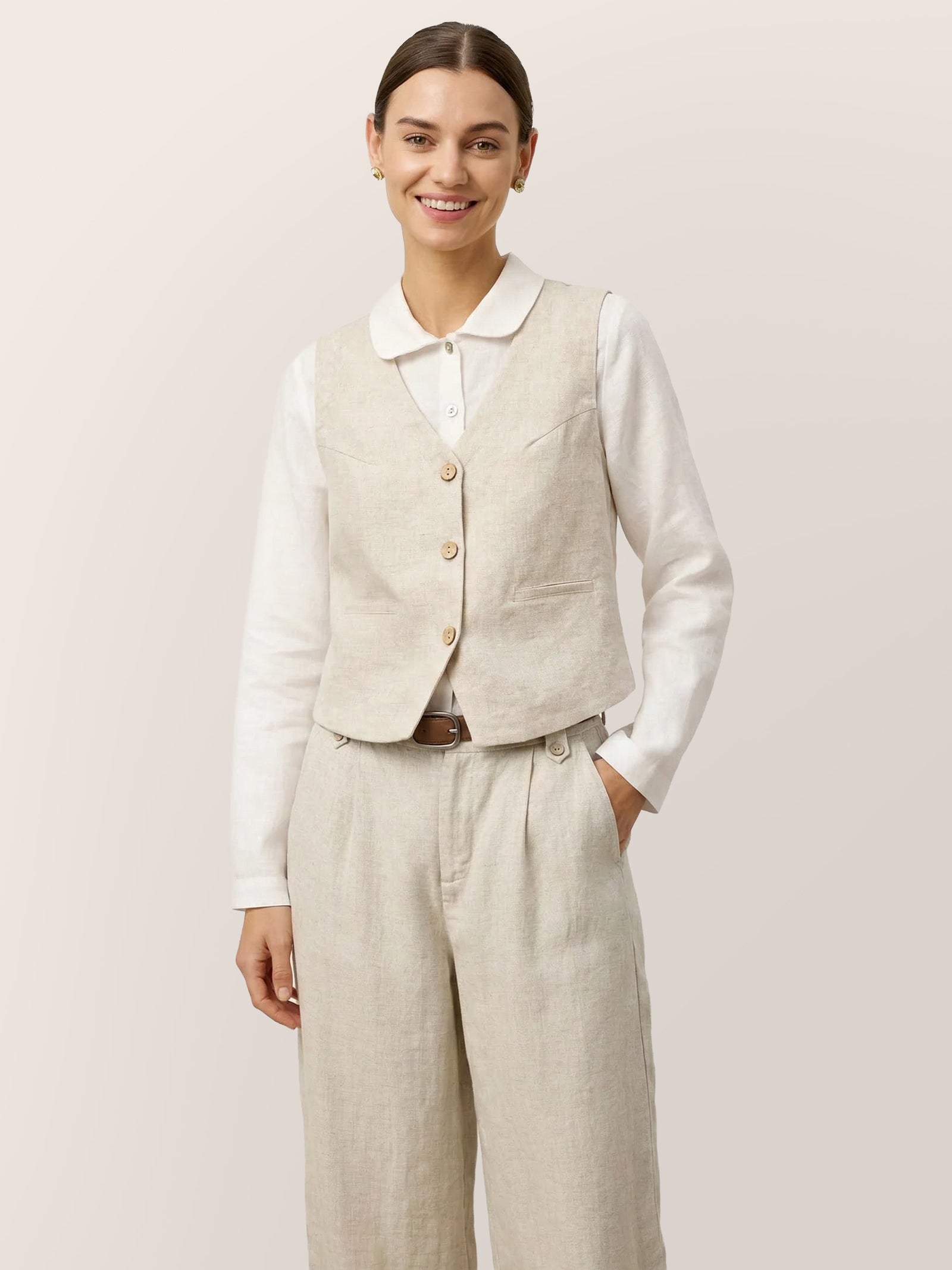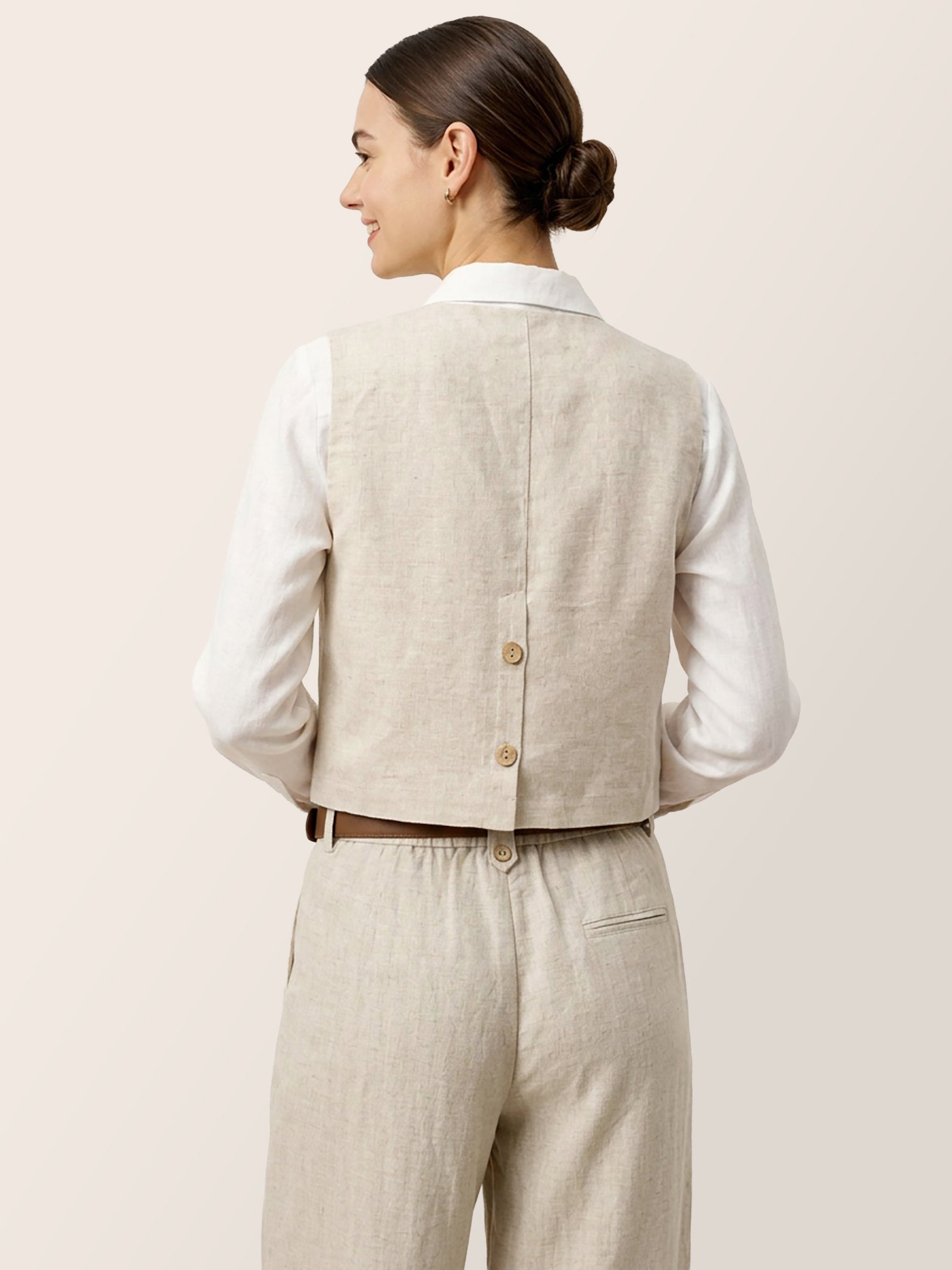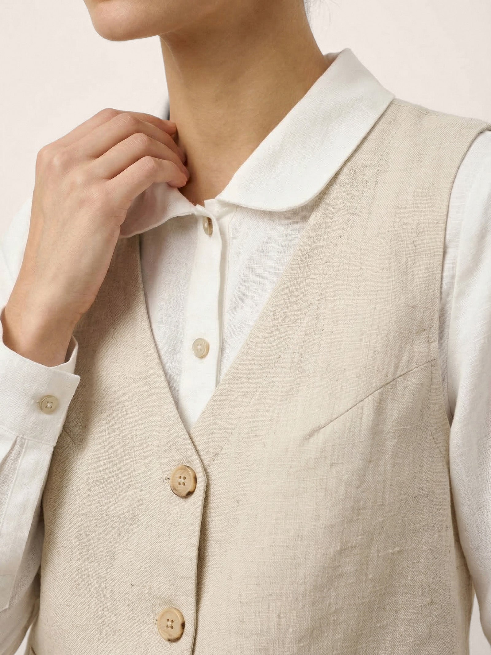 100% Linen V-Neck Buttoned Closure Vest DELIA