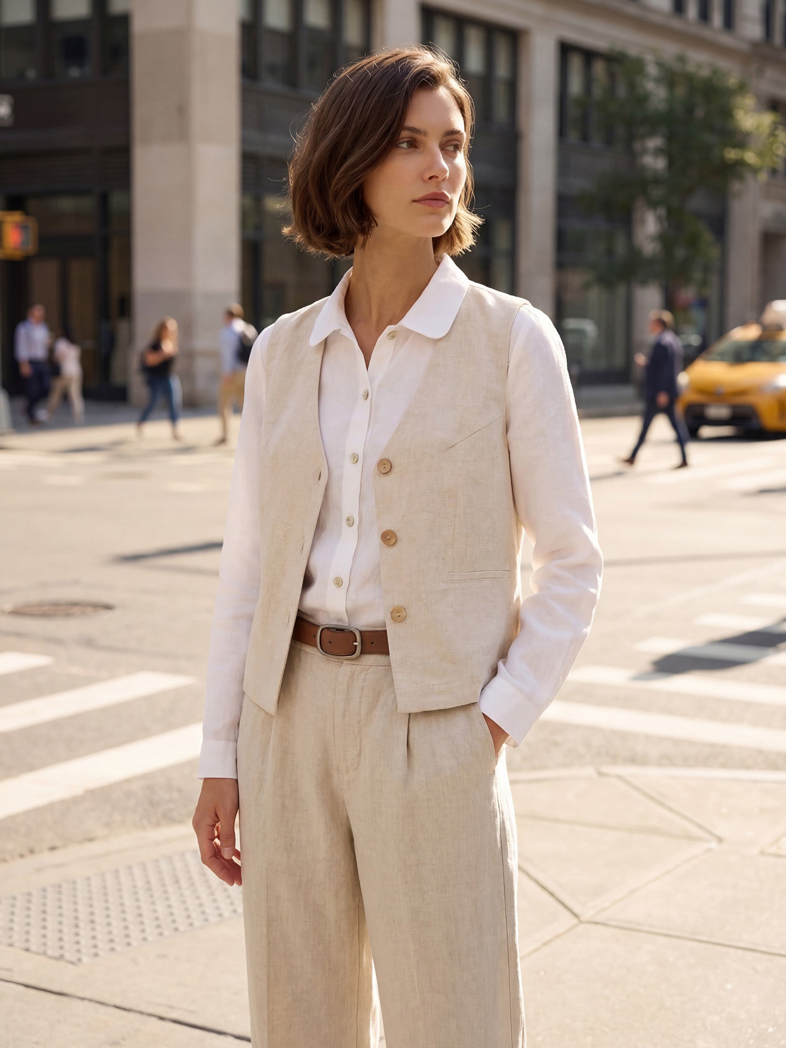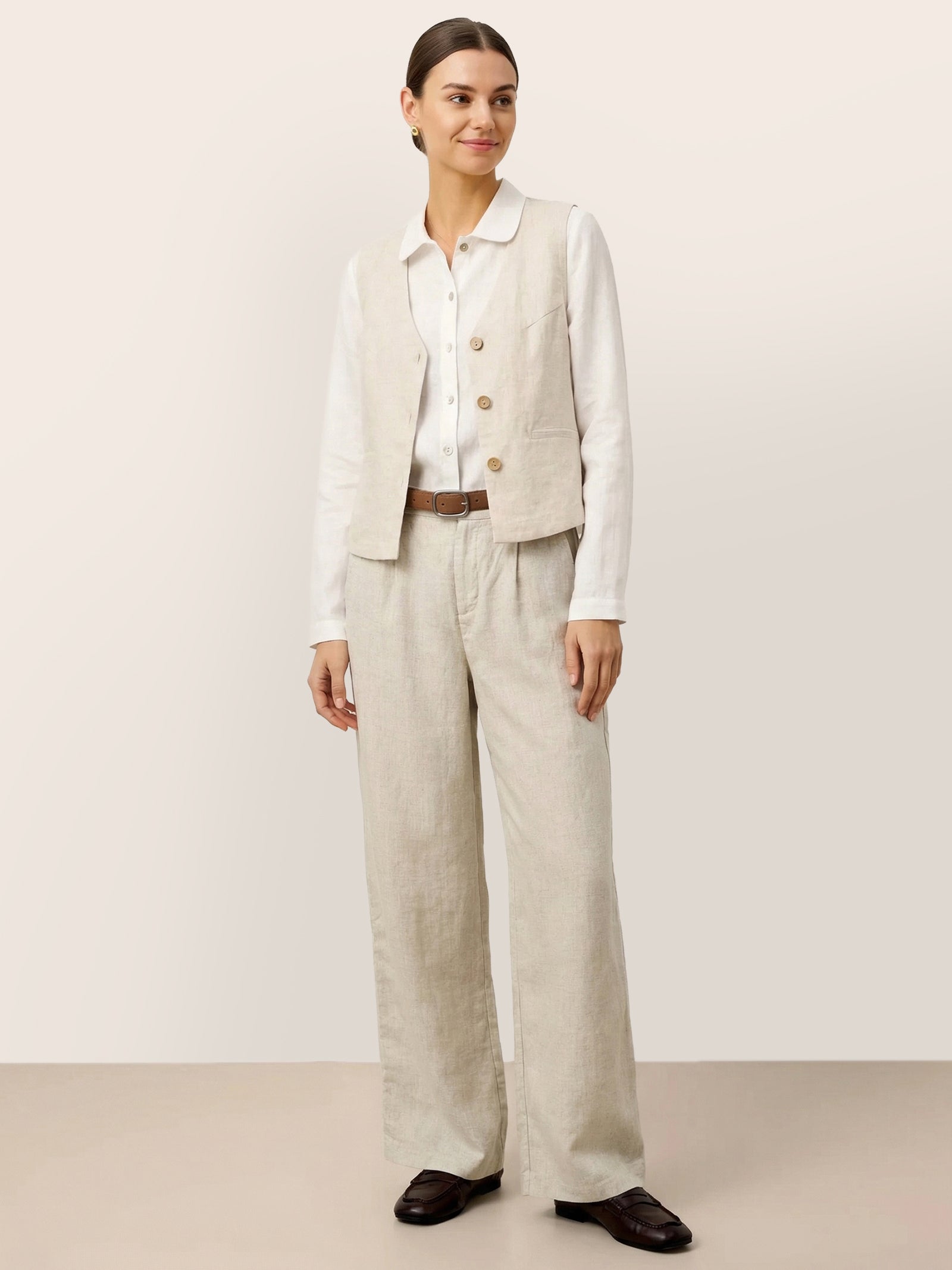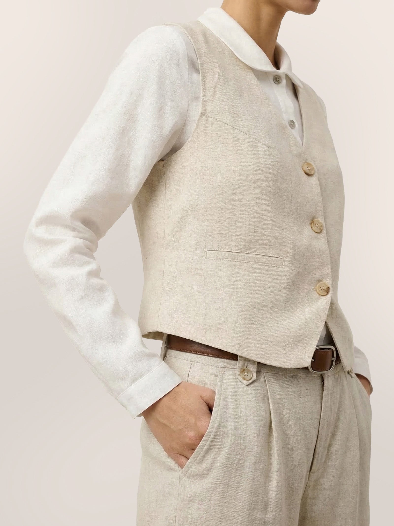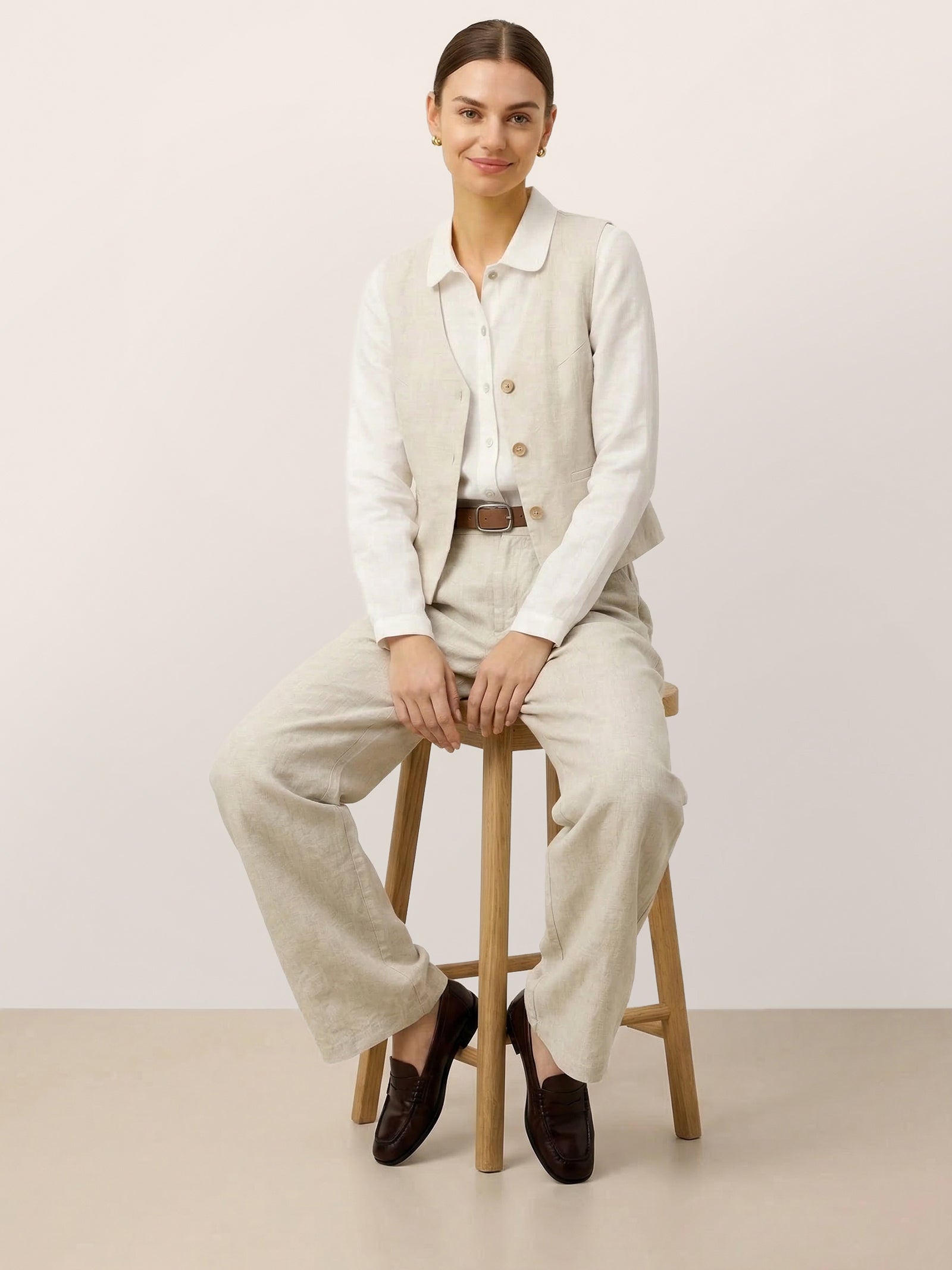 100% Linen V-Neck Buttoned Closure Vest DELIA