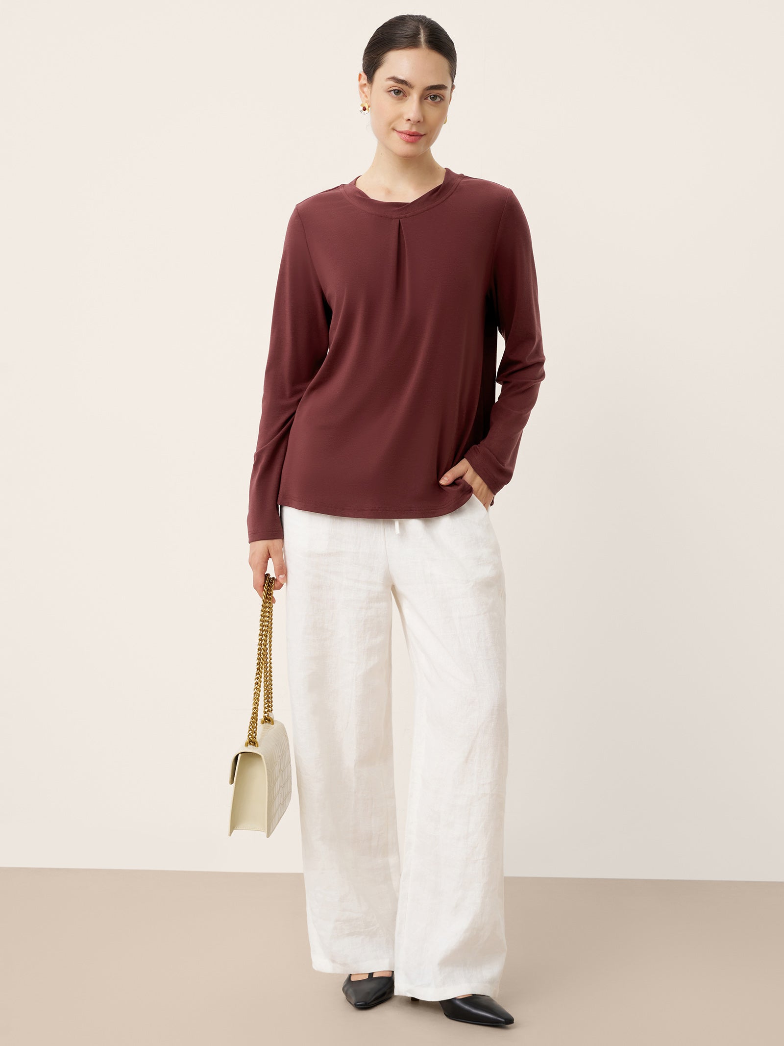 Wool Lyocell Twisted Neck Pullover Top NERISSA