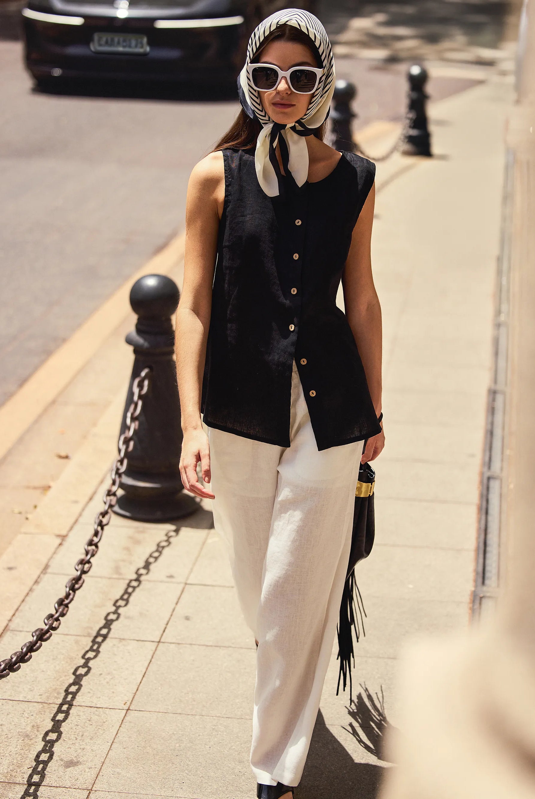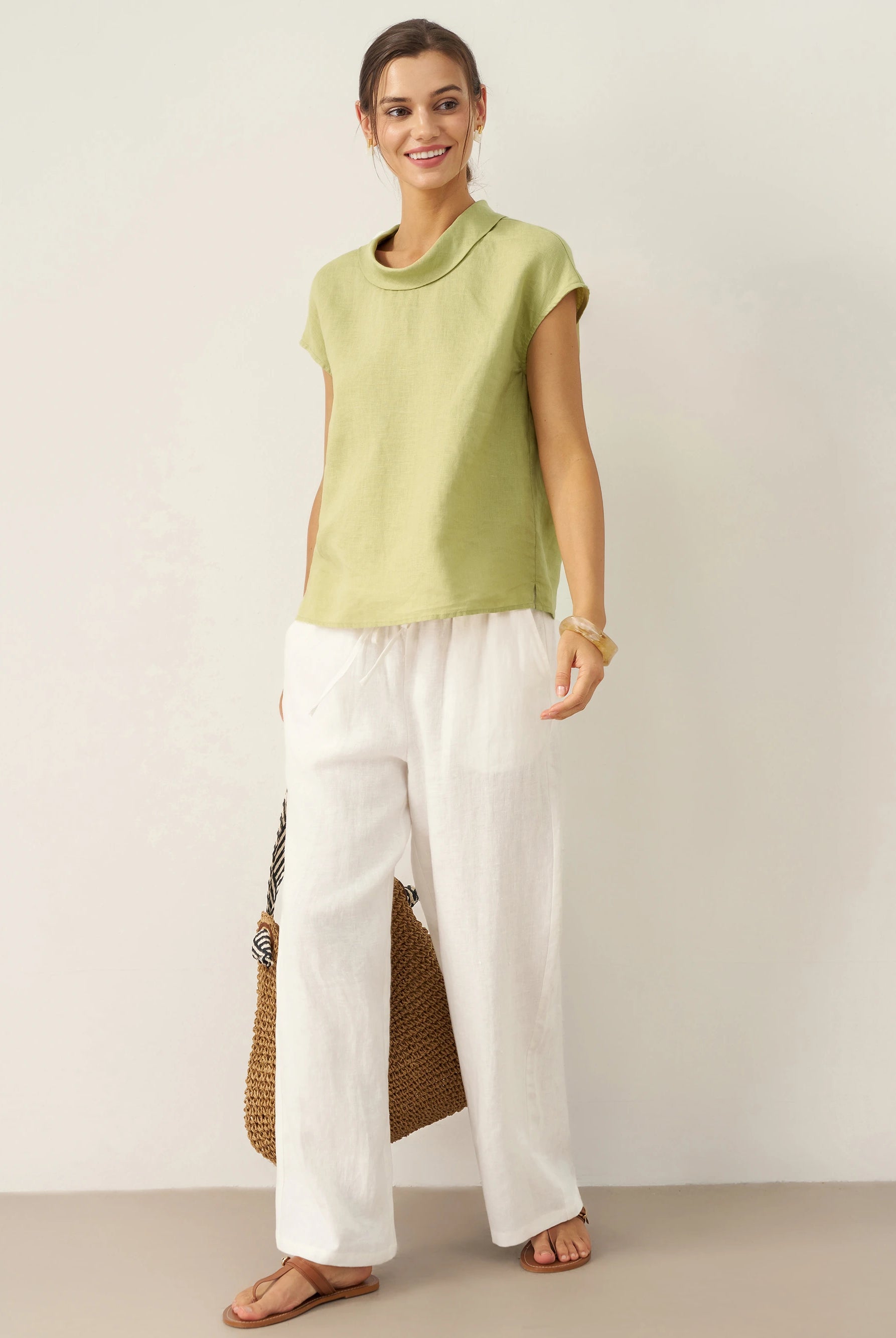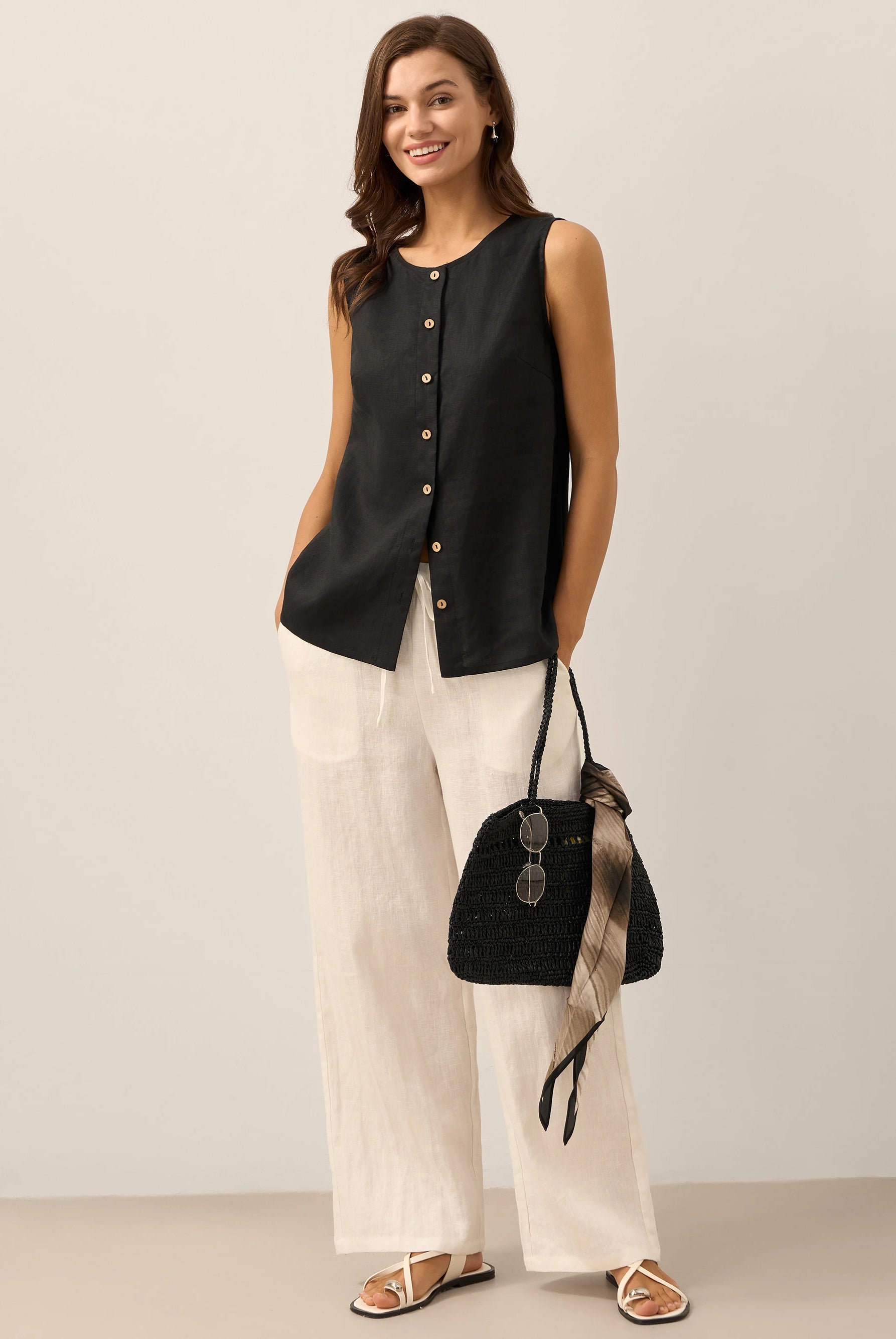 The look is so elevated and coastal chic paired with their linen pants. Linen gets better with every wear!!