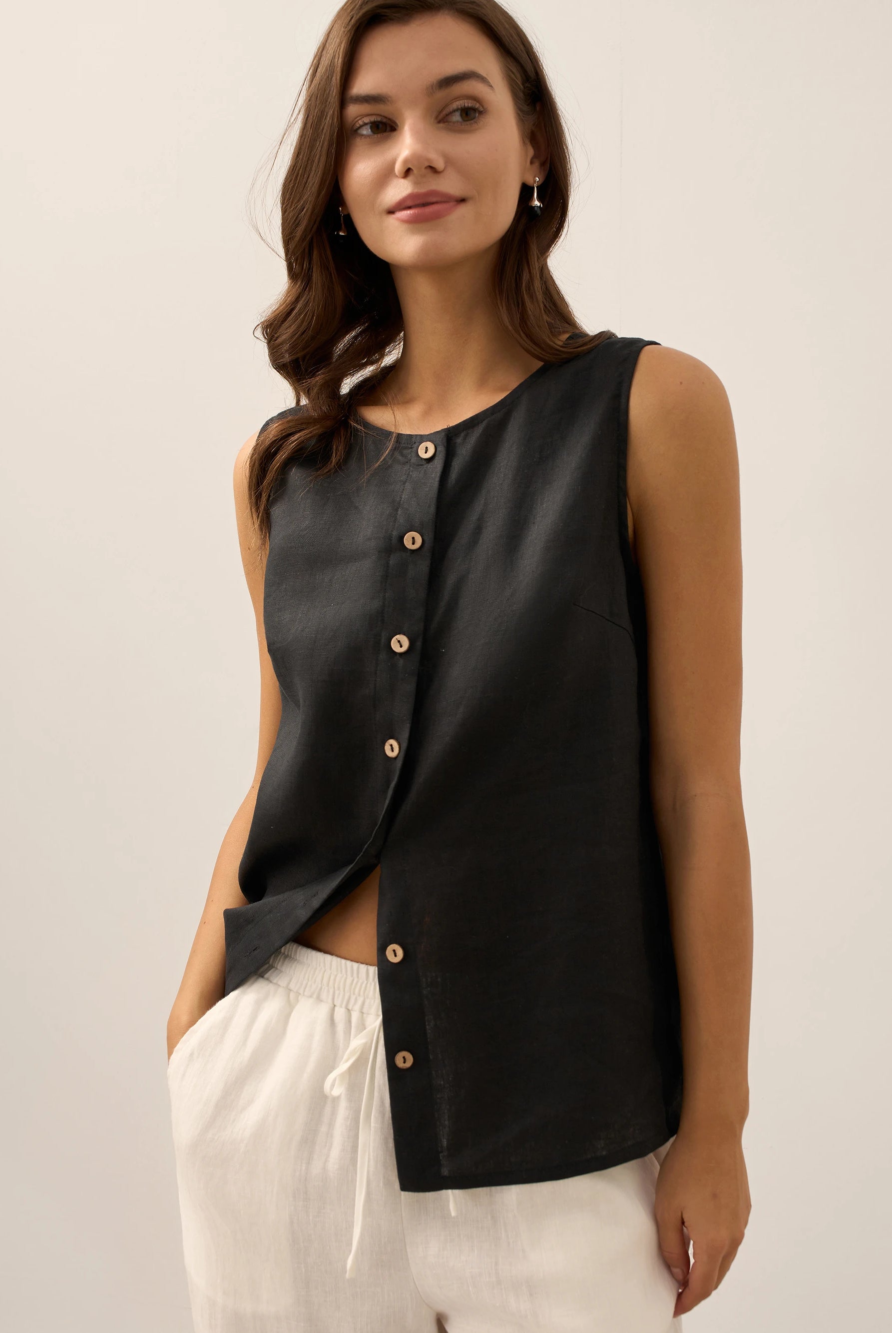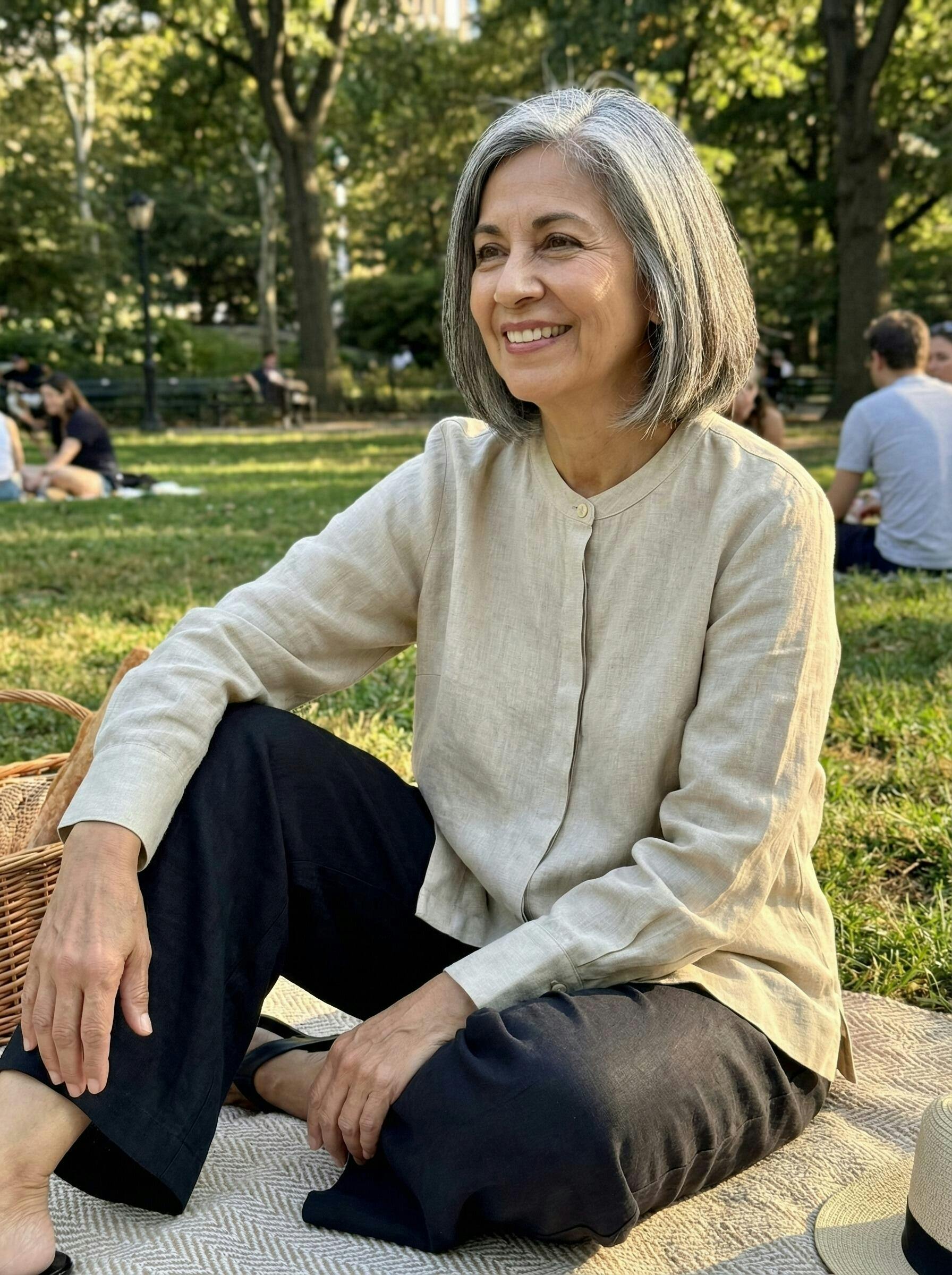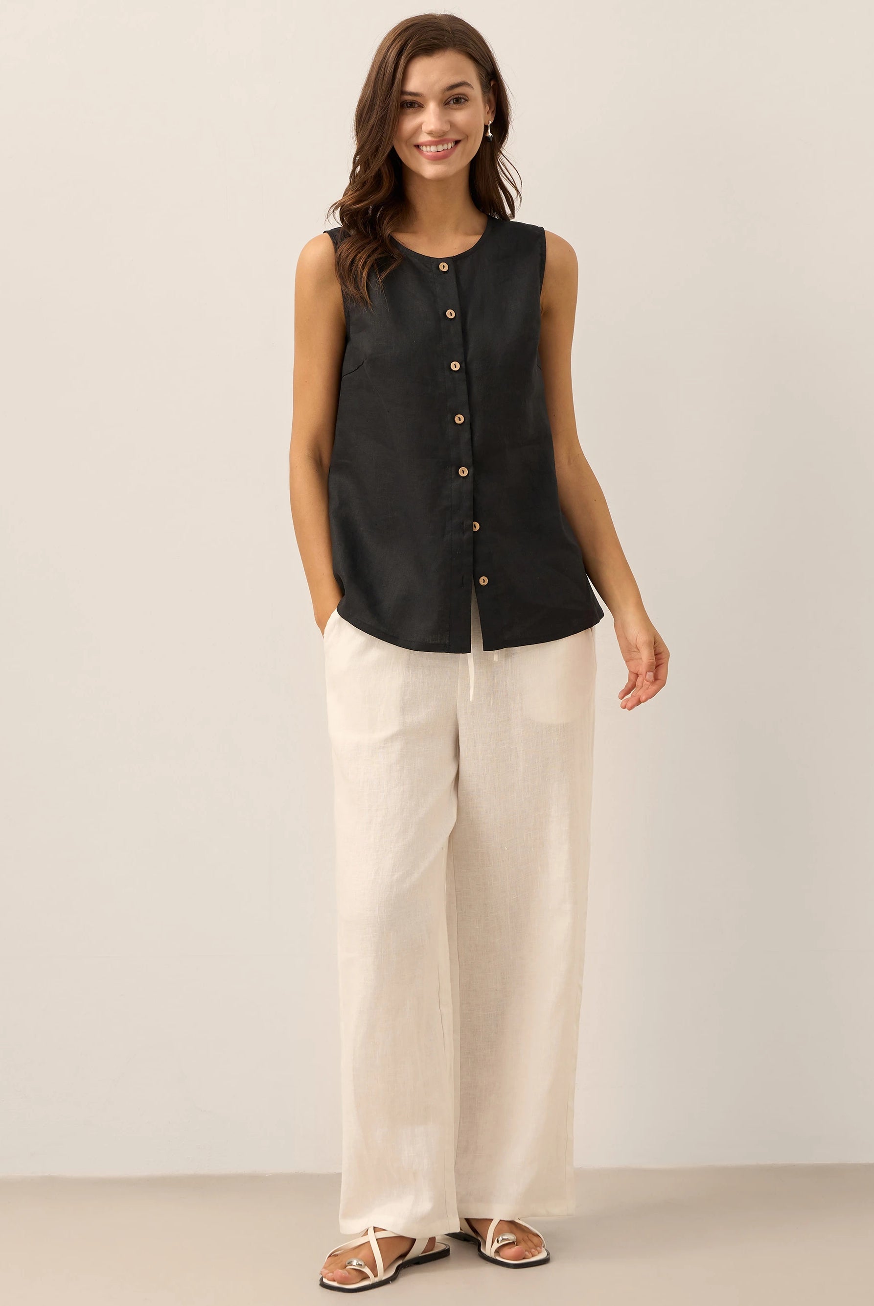 The look is so elevated and coastal chic paired with their linen pants. Linen gets better with every wear!!