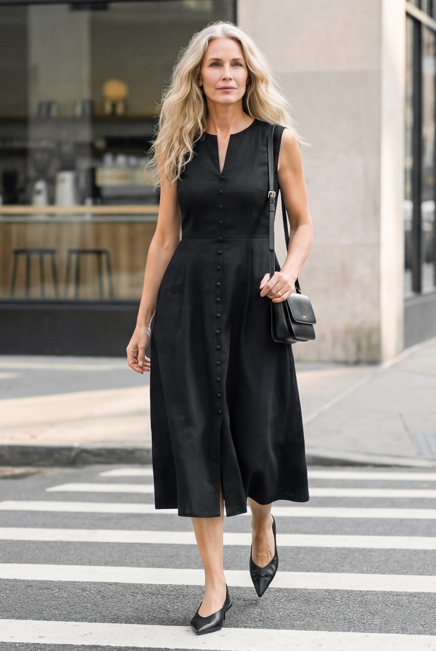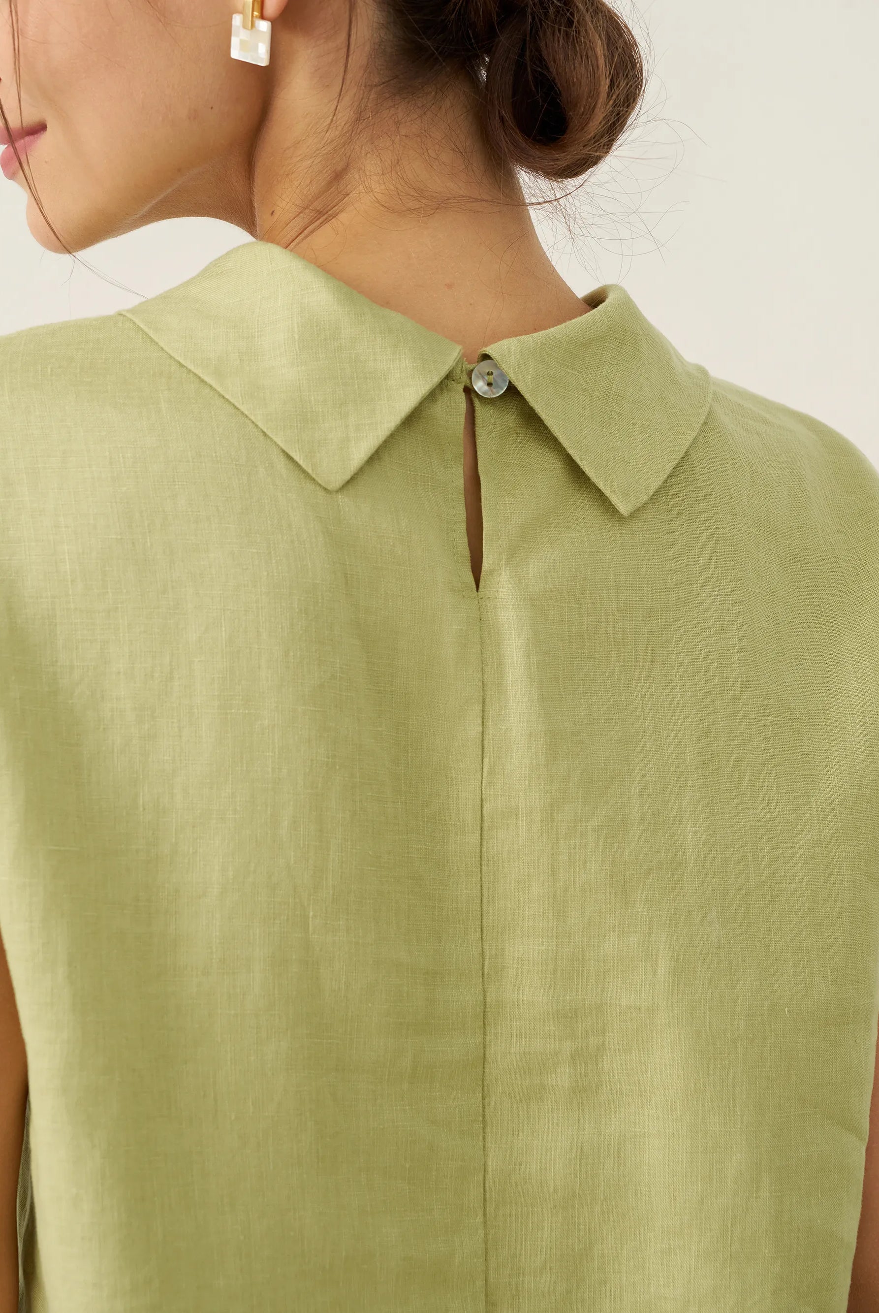 This sage green linen dress feels like a spring and summer dream, so light, flowy, and comfortable. Love how the A-line falls, elegant but easy to wear all day!