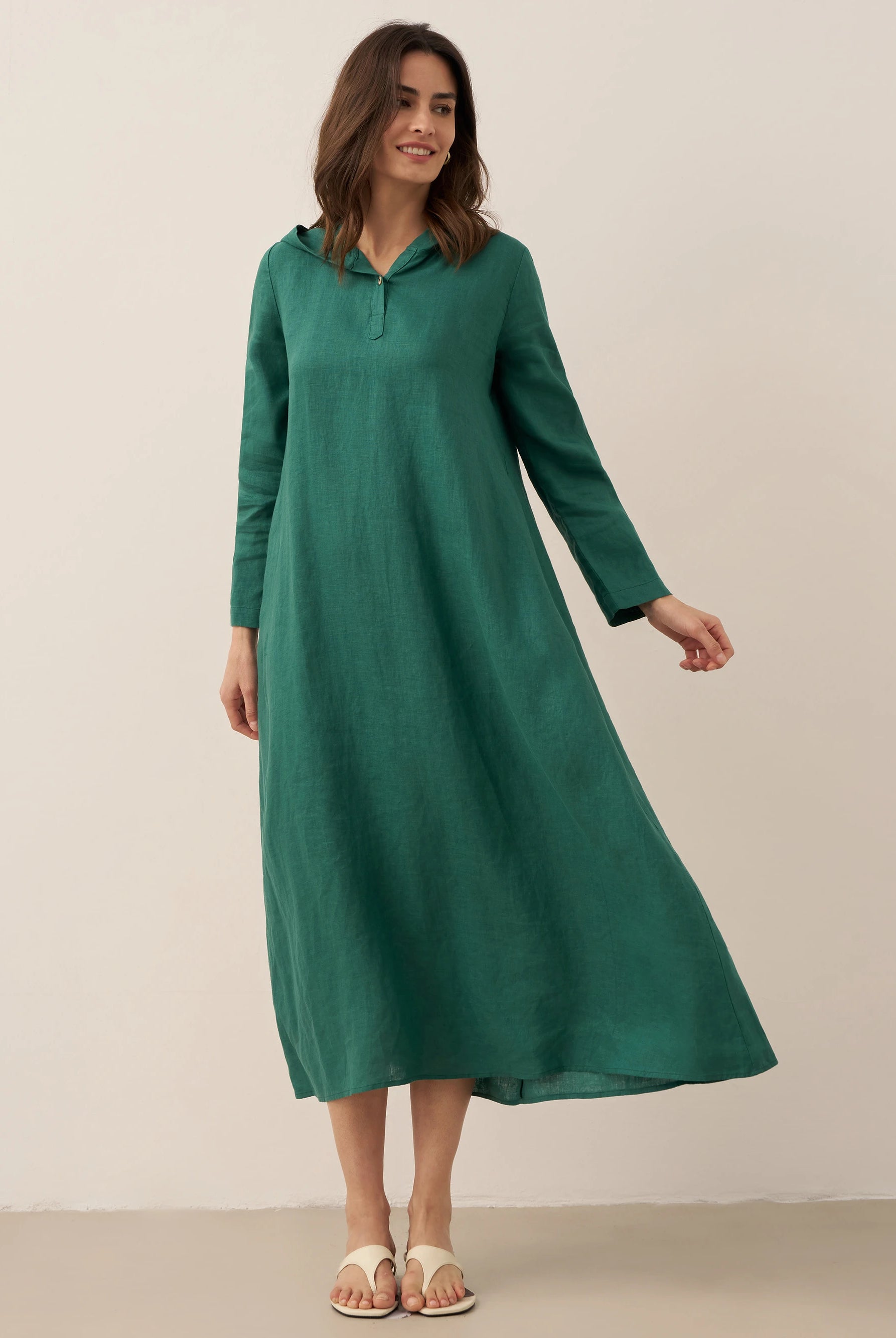 So happy with this dress purchase! Beautifully made with super comfortable soft linen fabric. The button detail is a nice addition, and it fits perfectly. Already worn it multiple times.
