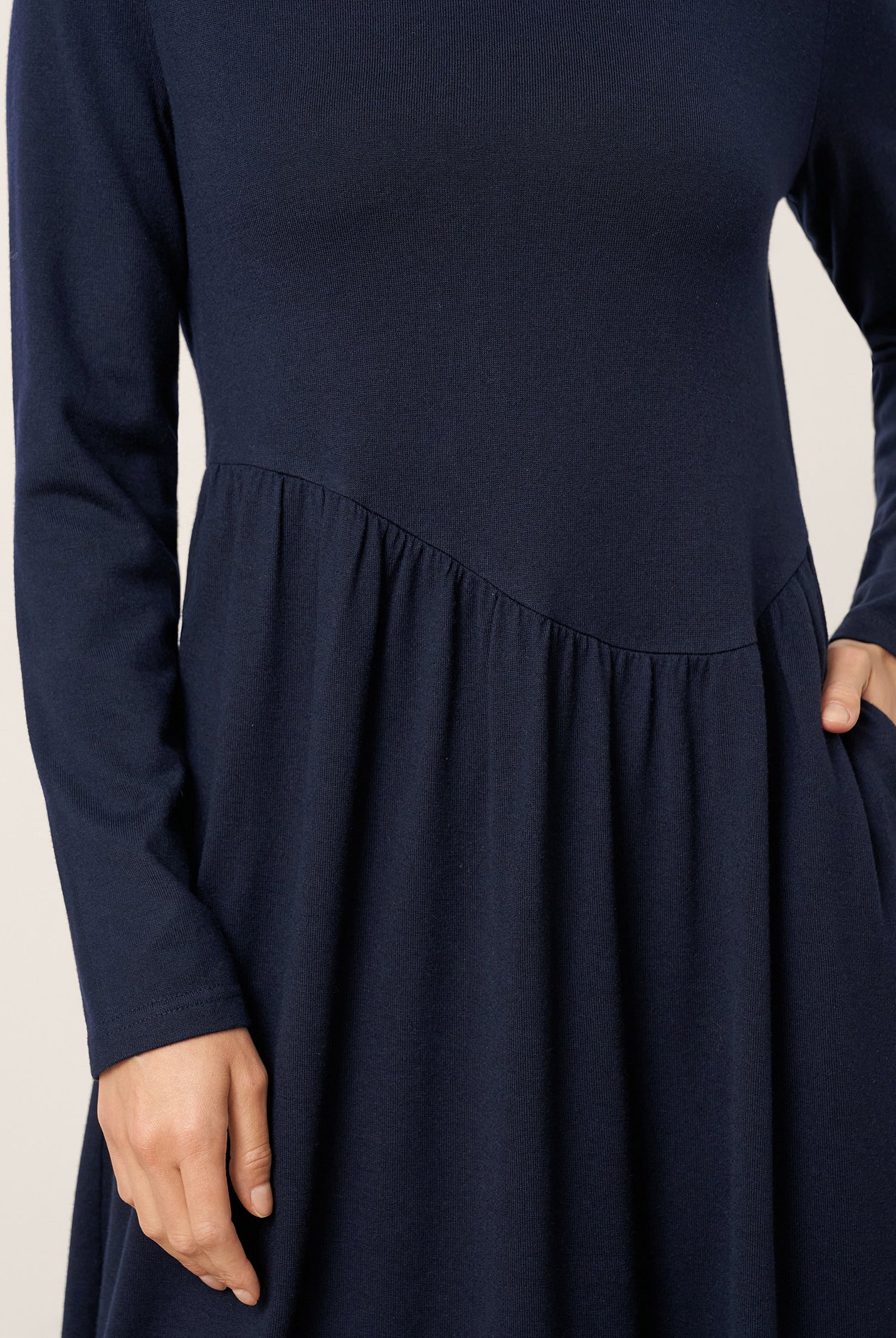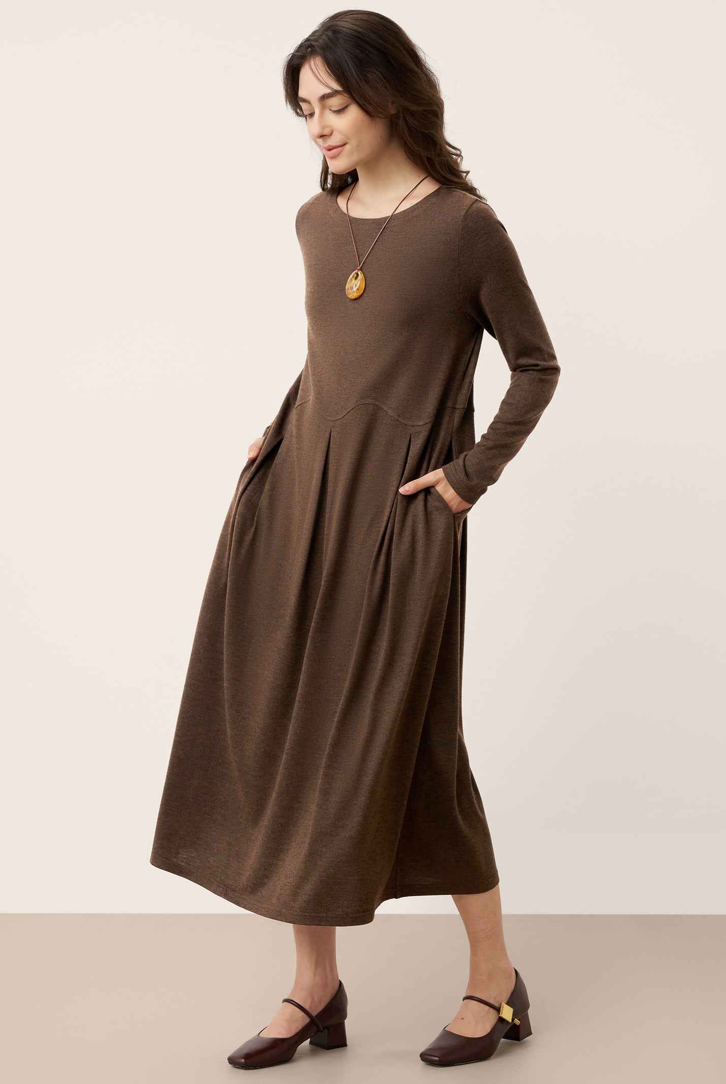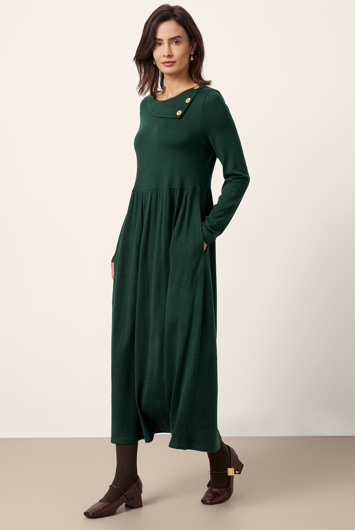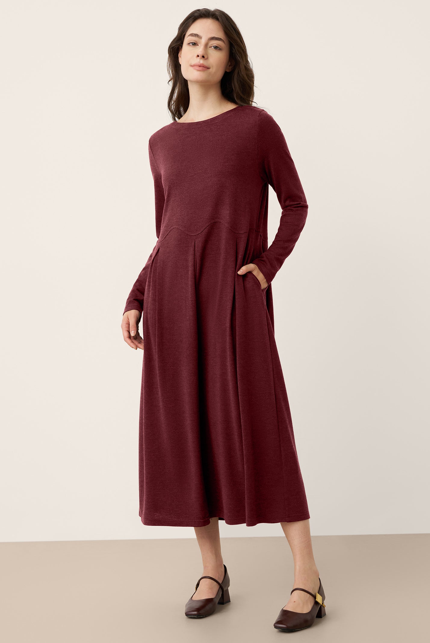 Love this dress the moment I tried it on. The fabric feels soft and breathable, perfect for warm days, and the white trim gives it a really clean, elegant look. The pockets are a nice surprise.