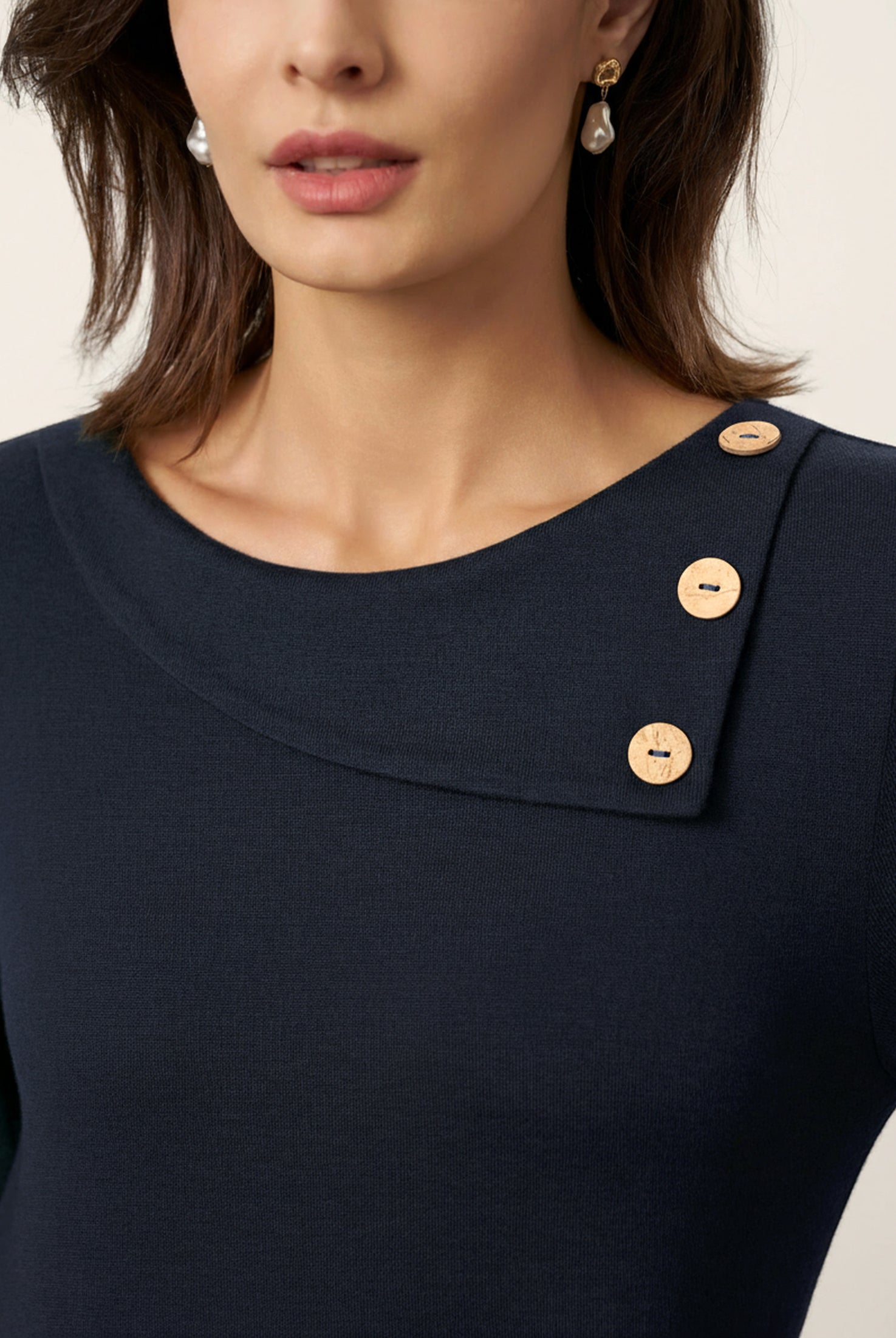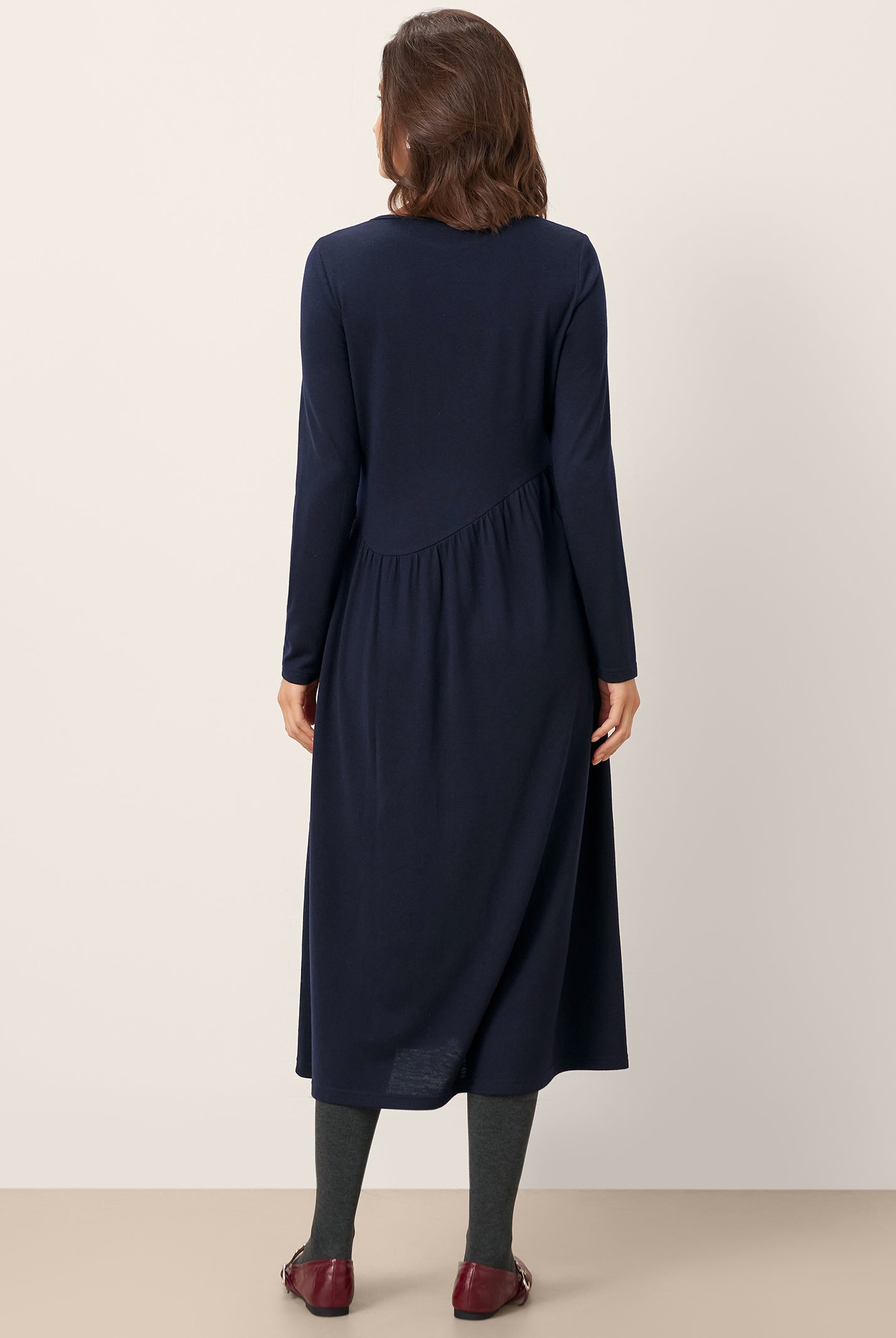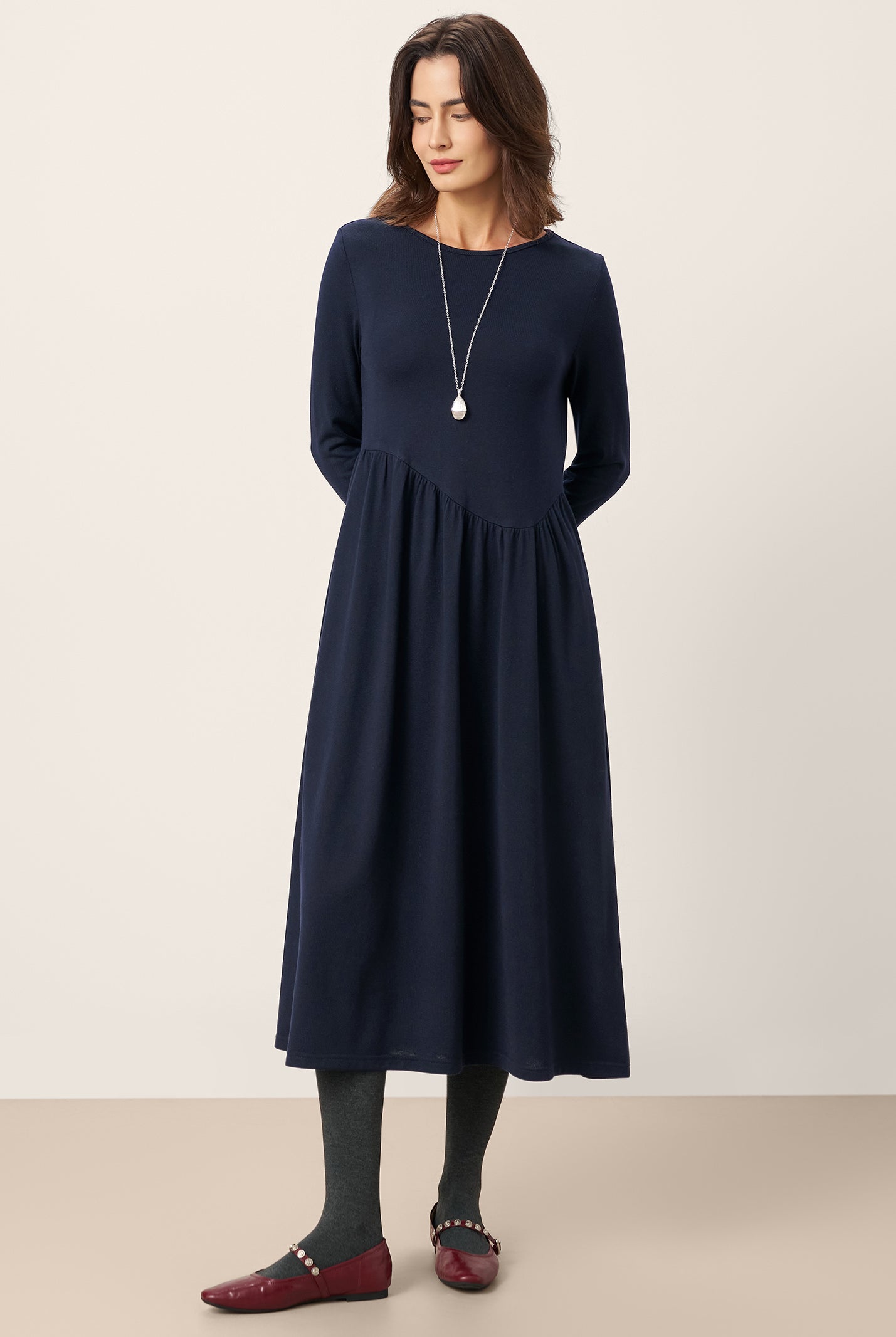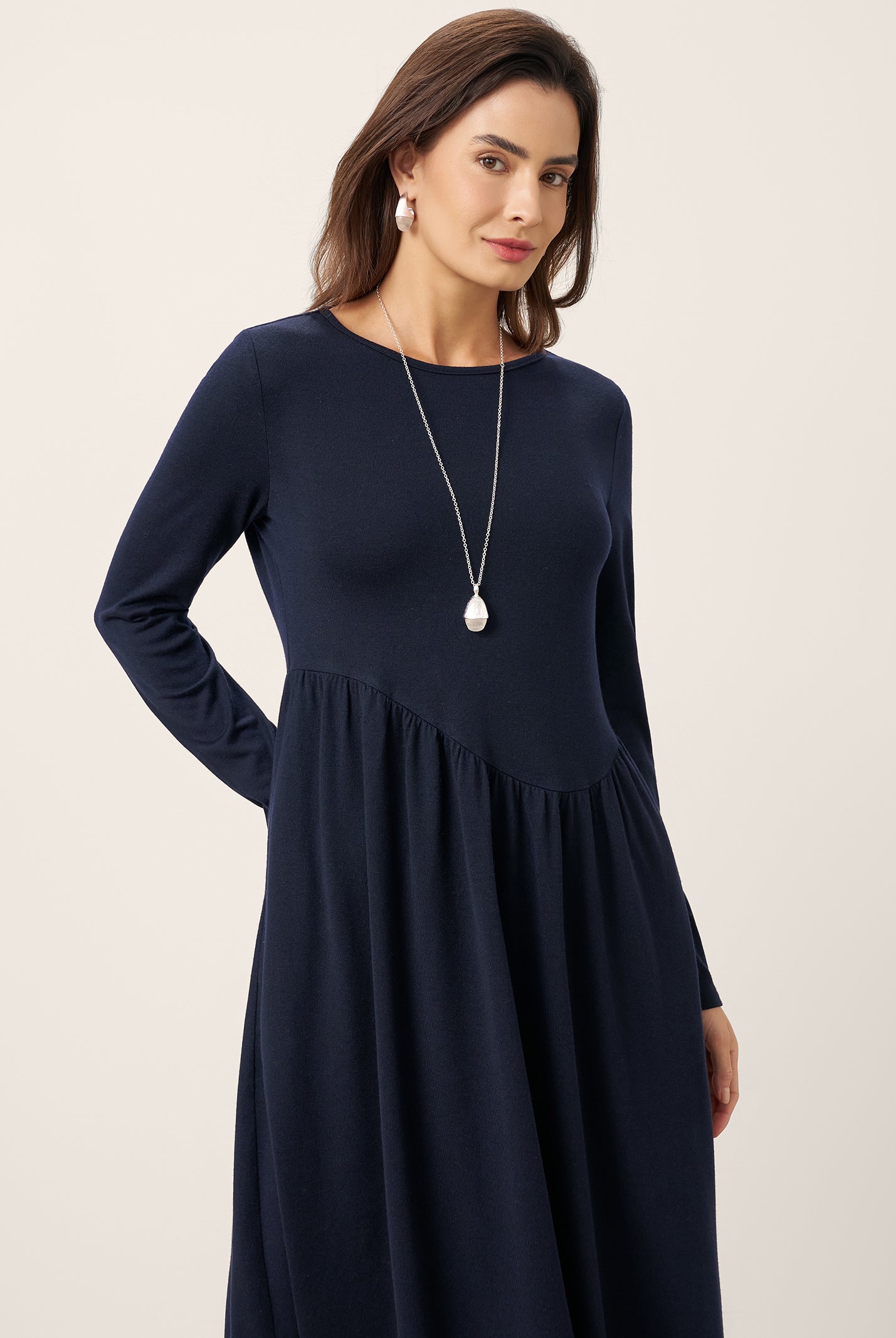 Love this dress the moment I tried it on. The fabric feels soft and breathable, perfect for warm days, and the white trim gives it a really clean, elegant look. The pockets are a nice surprise.