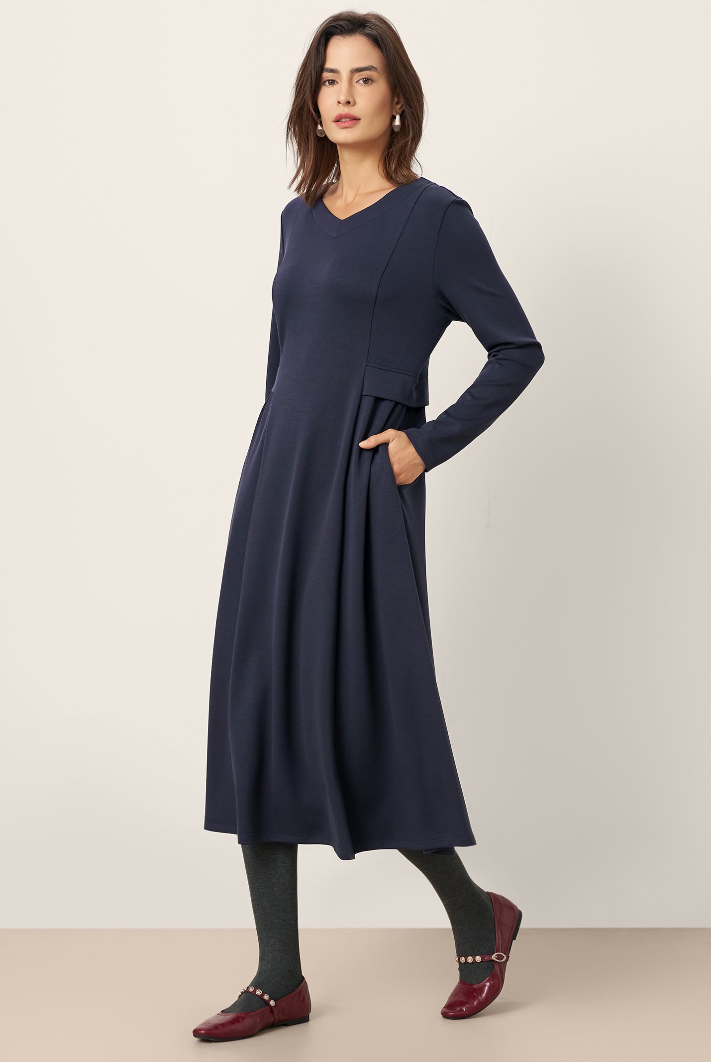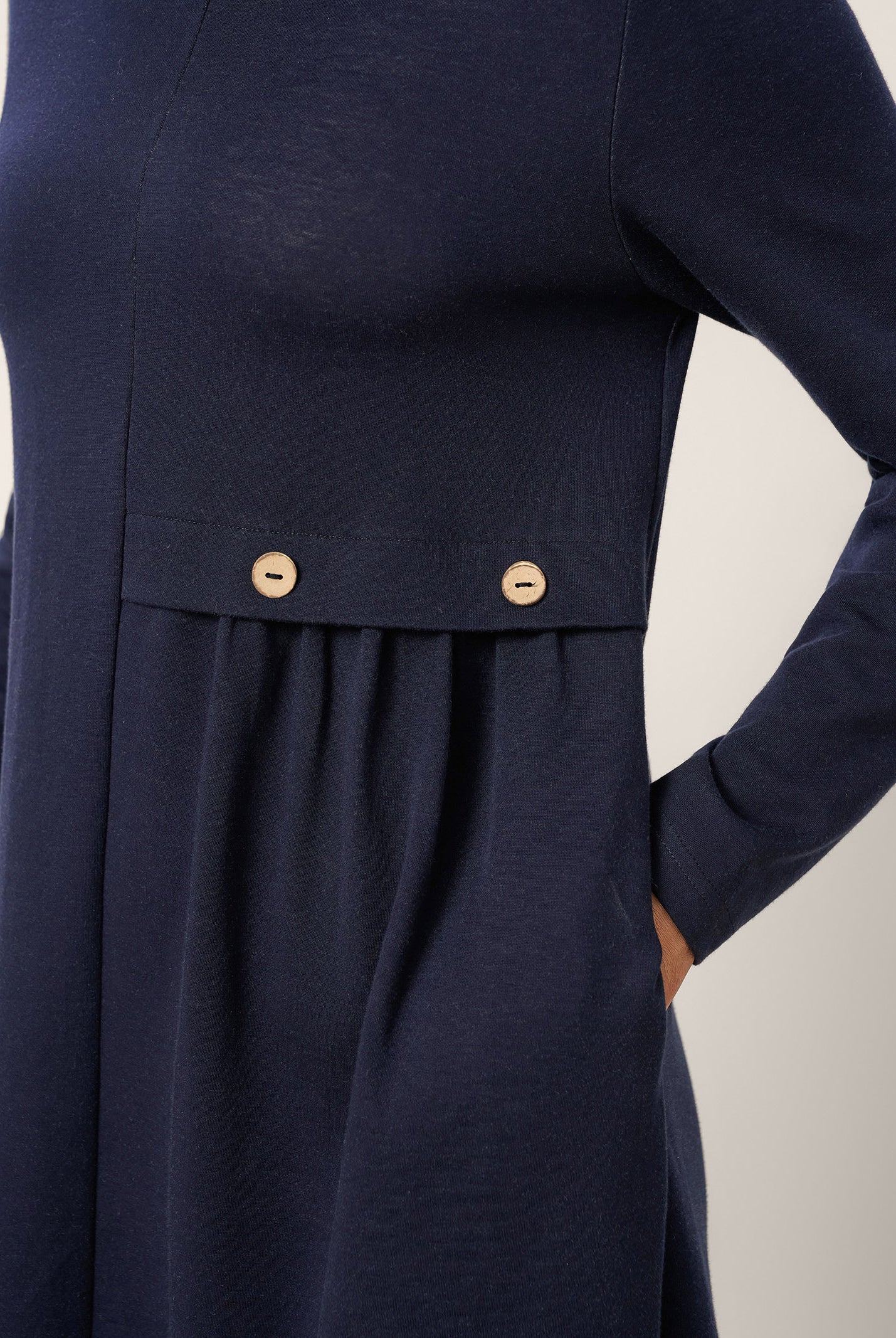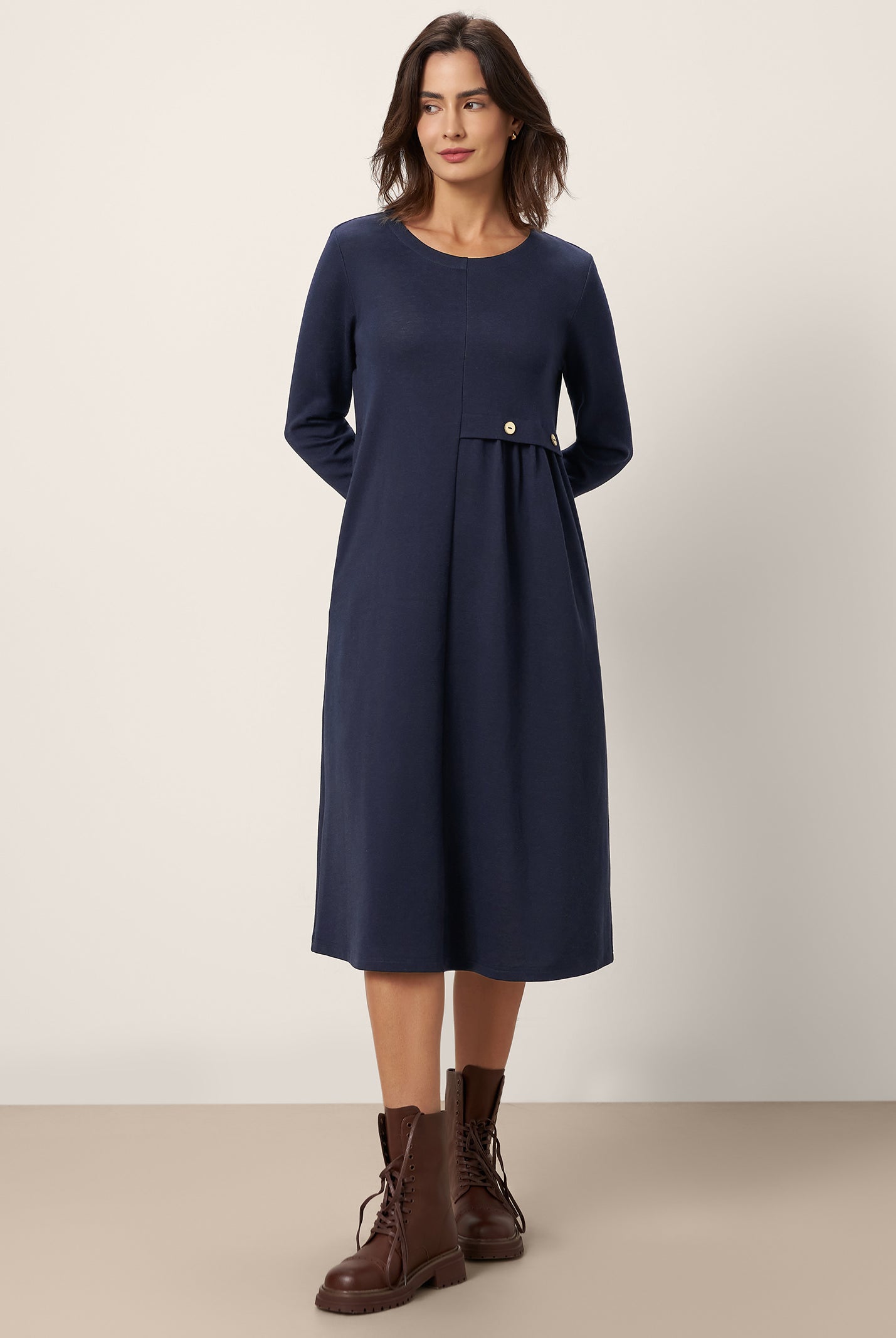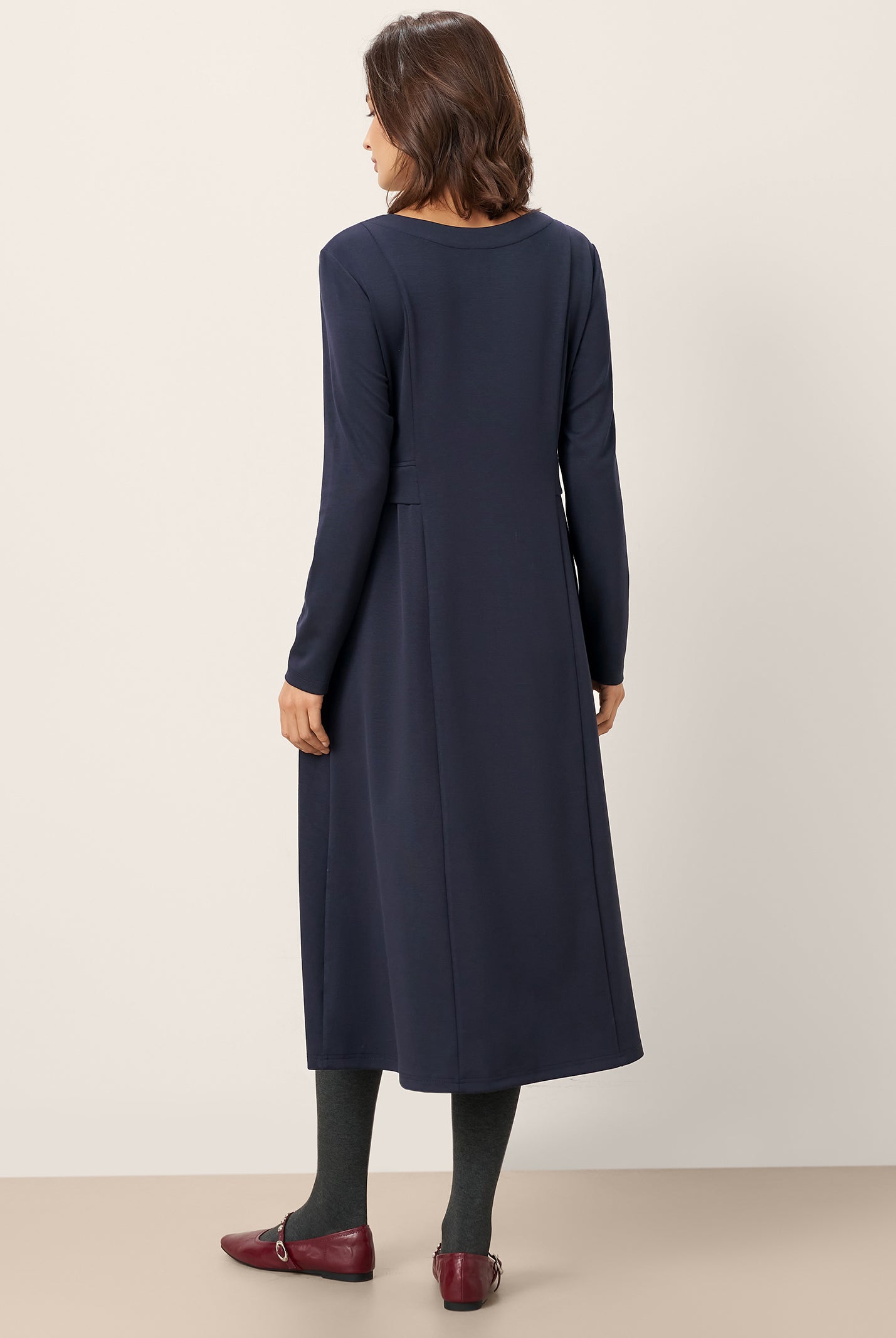 The wool cotton blend of this dress is so soft, and the crescent waist design flatters my figure perfectly. Definitely a wardrobe favorite now!