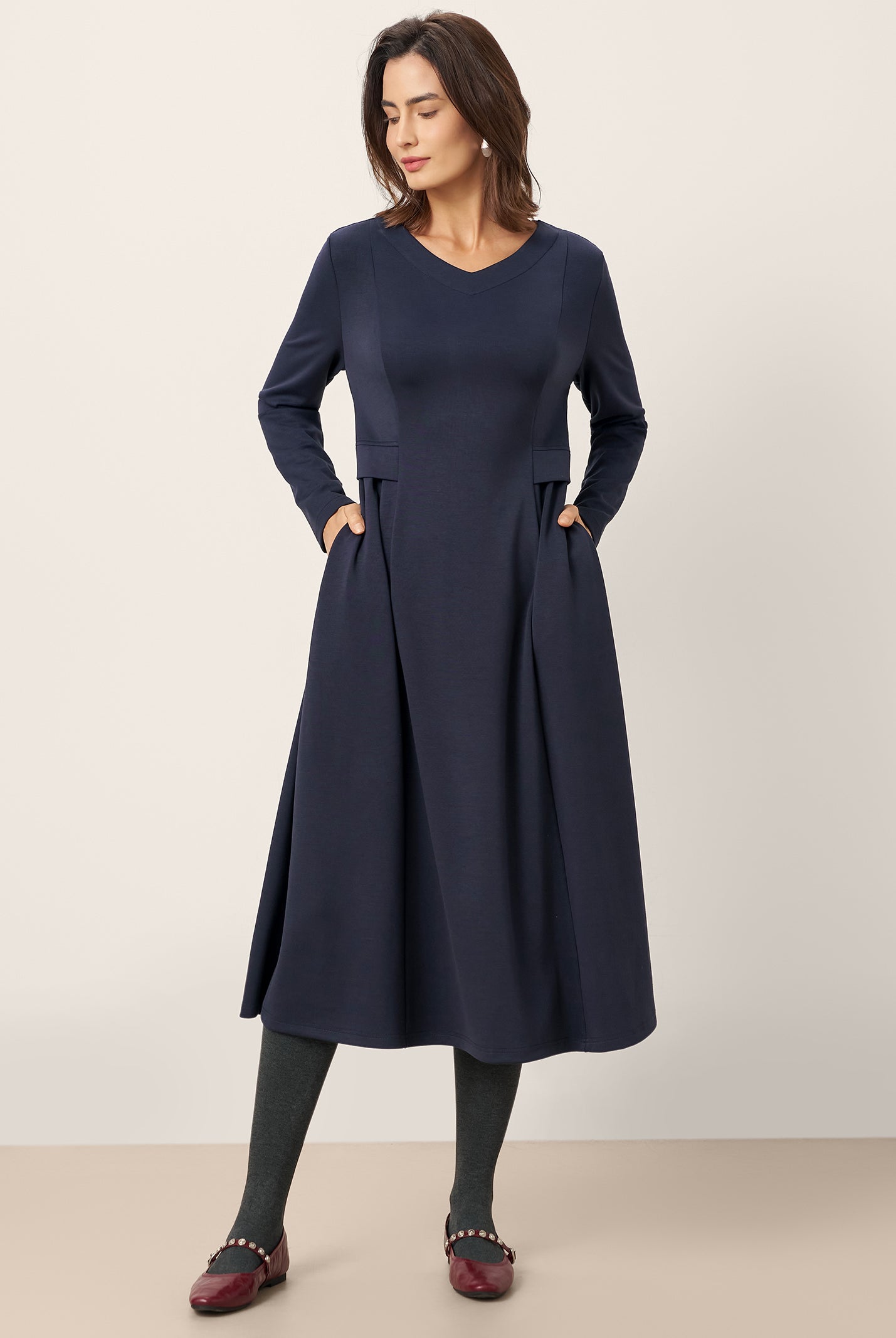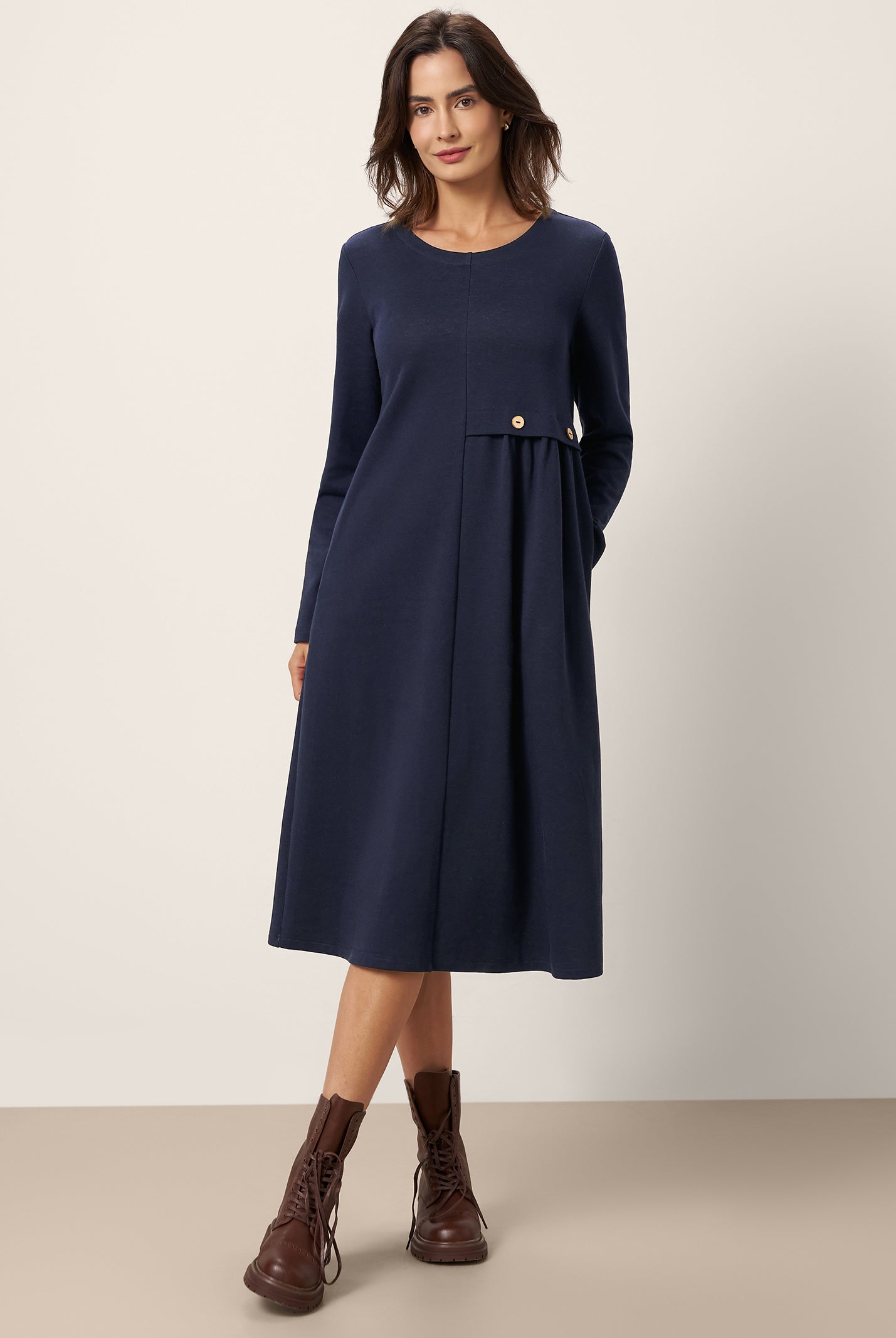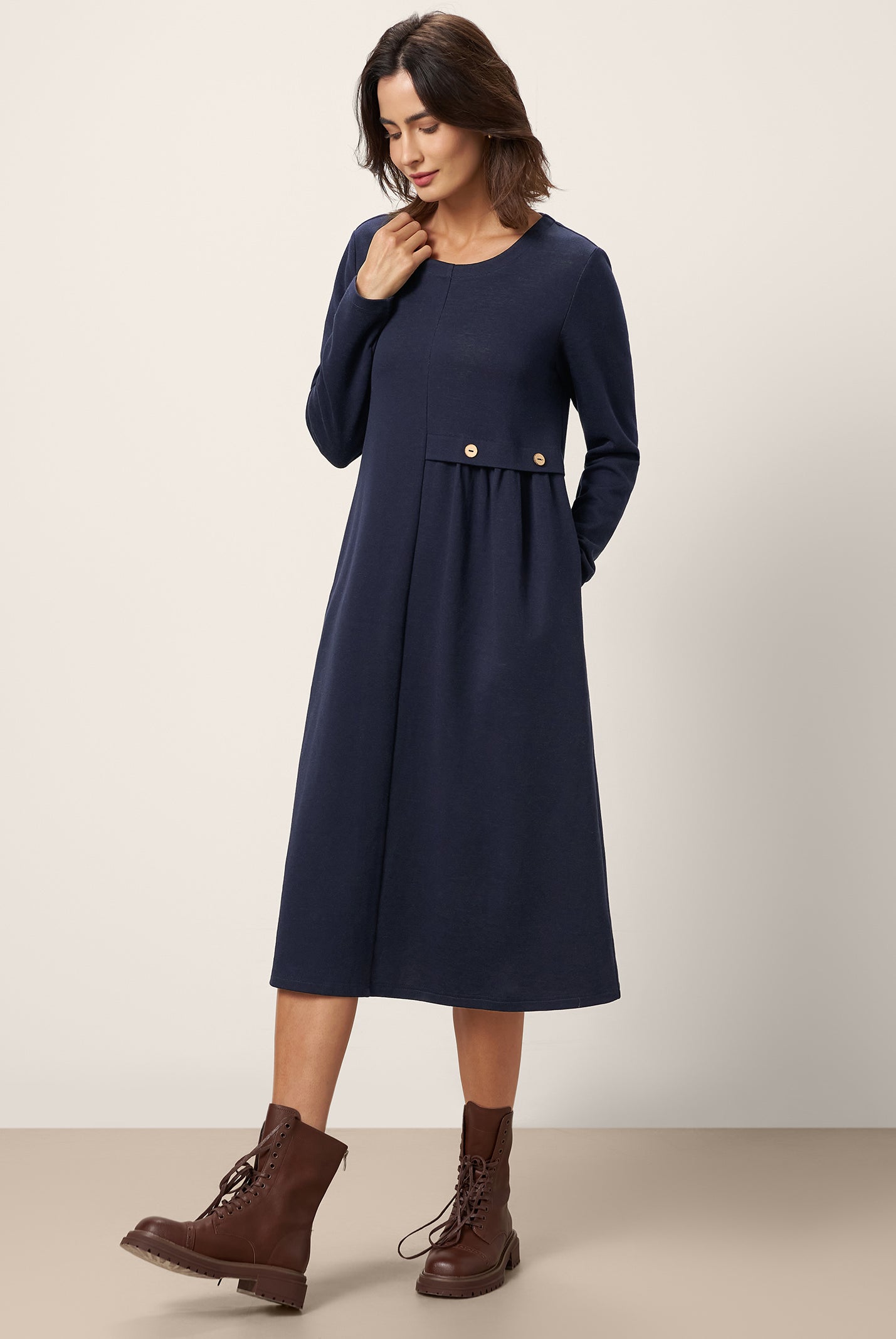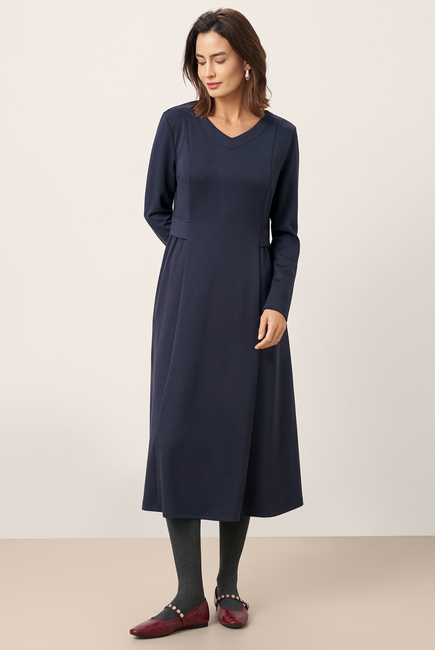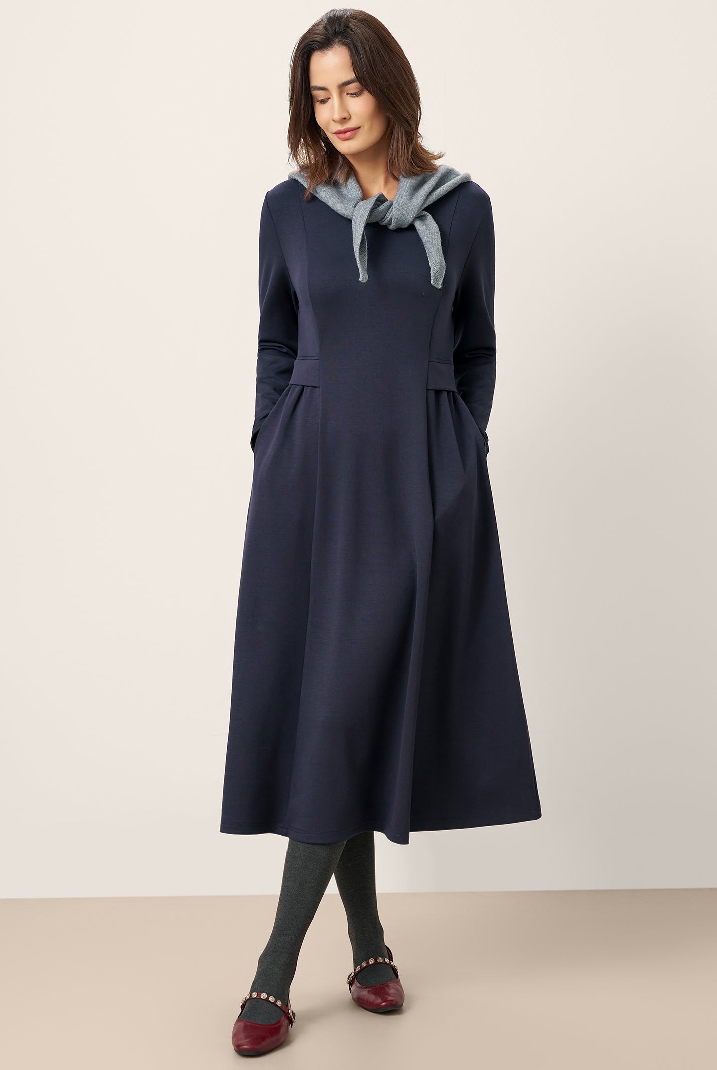 The wool cotton blend of this dress is so soft, and the crescent waist design flatters my figure perfectly. Definitely a wardrobe favorite now!