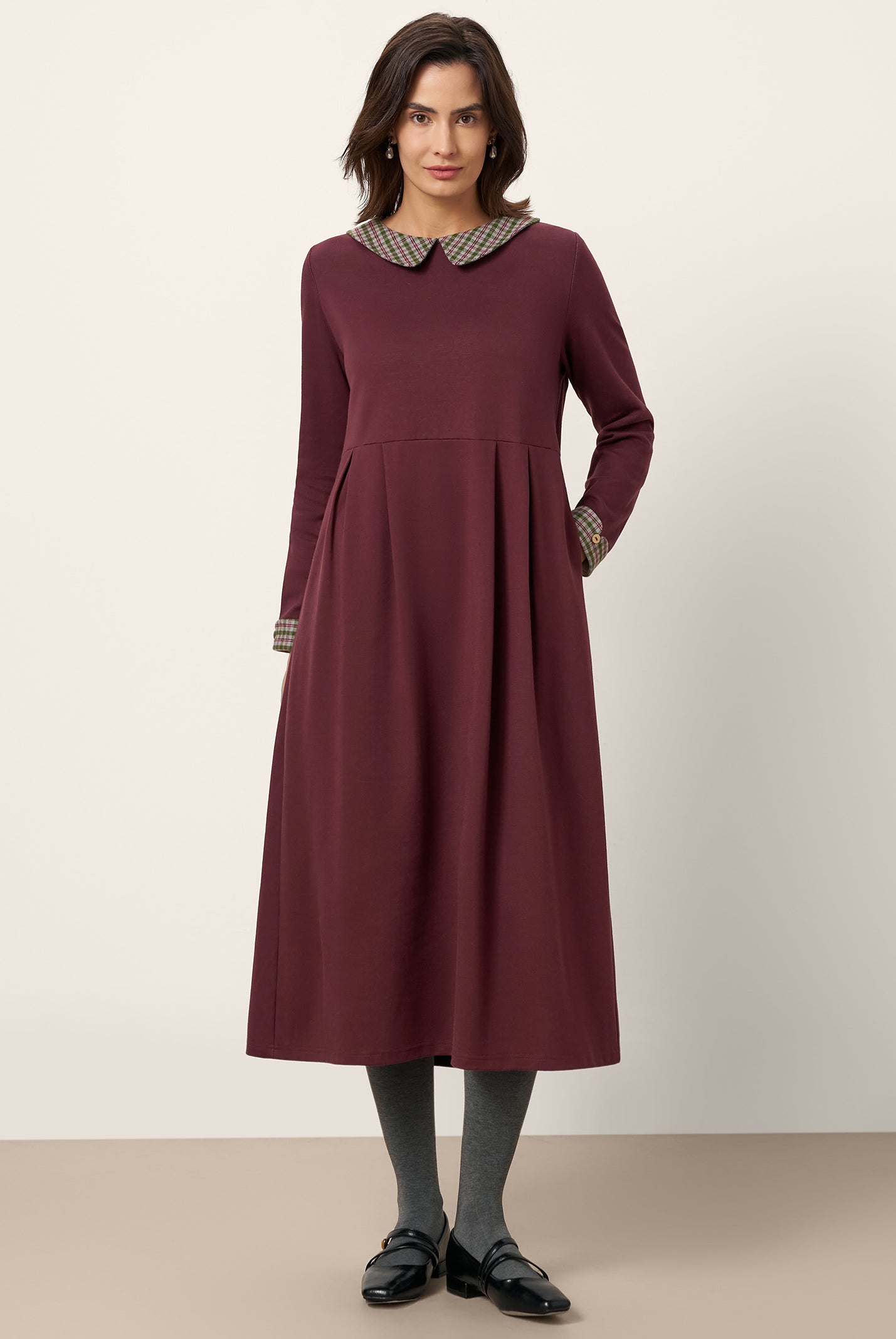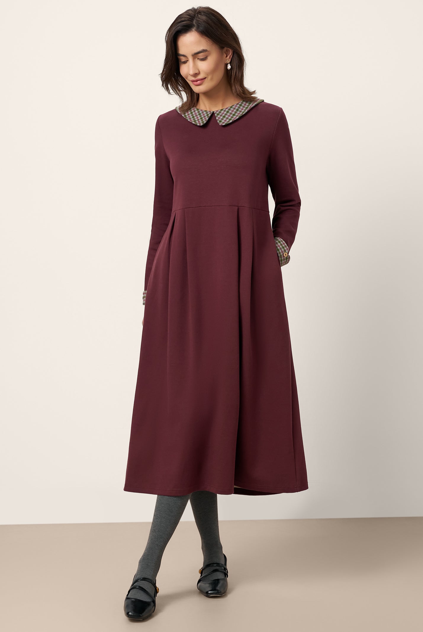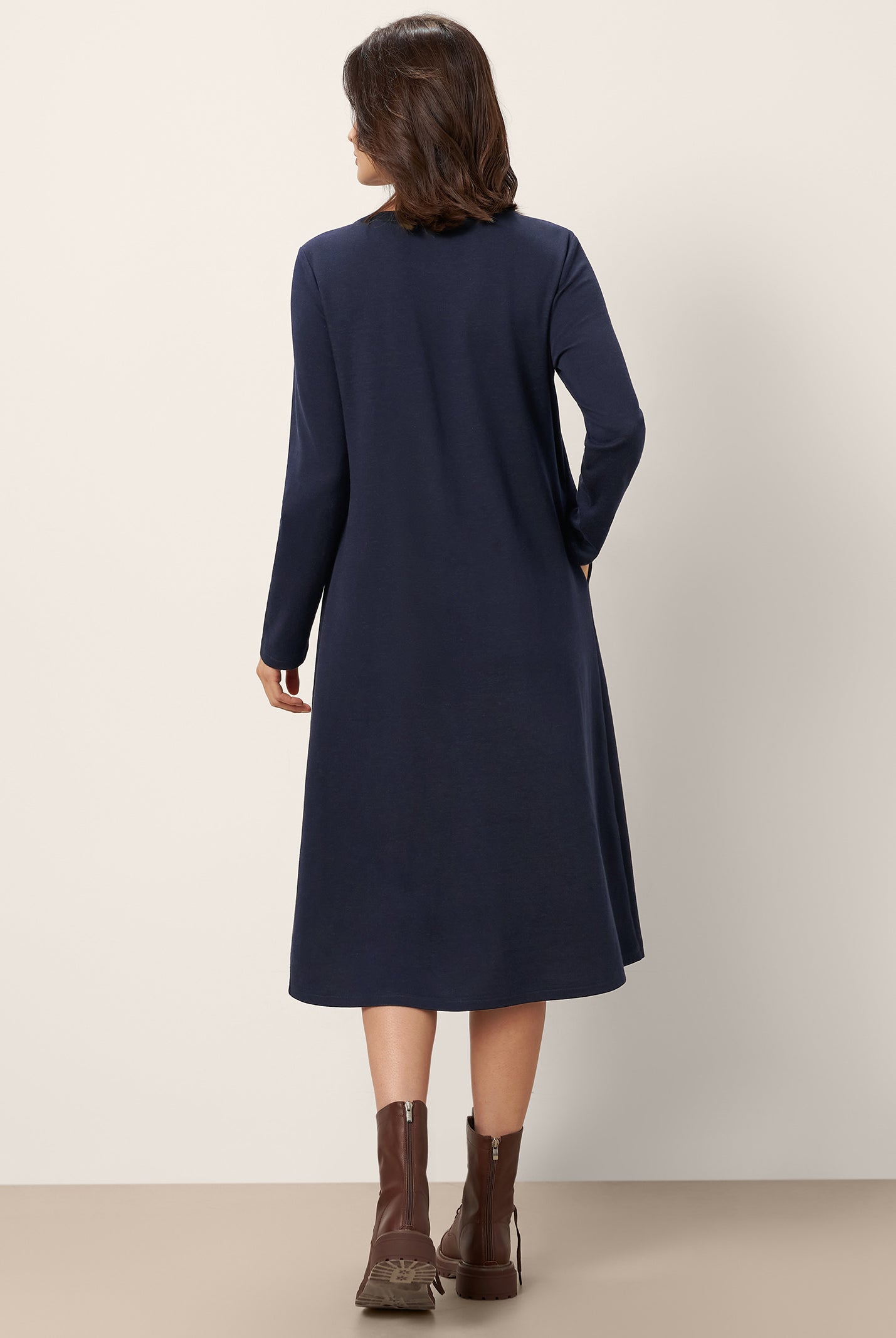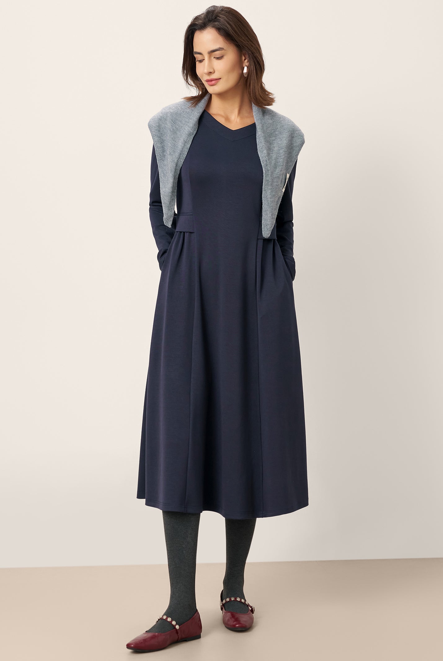 The wool cotton blend of this dress is so soft, and the crescent waist design flatters my figure perfectly. Definitely a wardrobe favorite now!