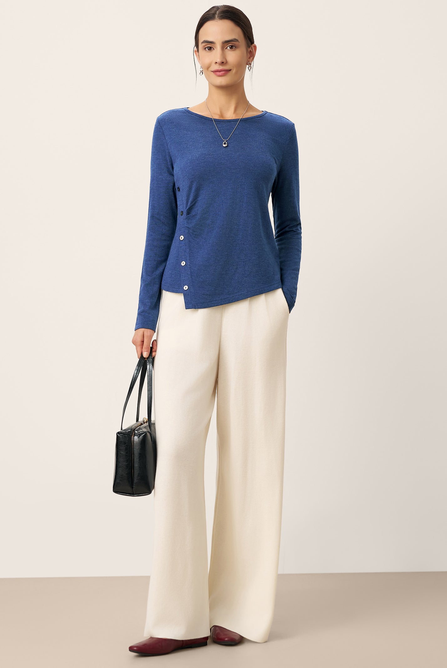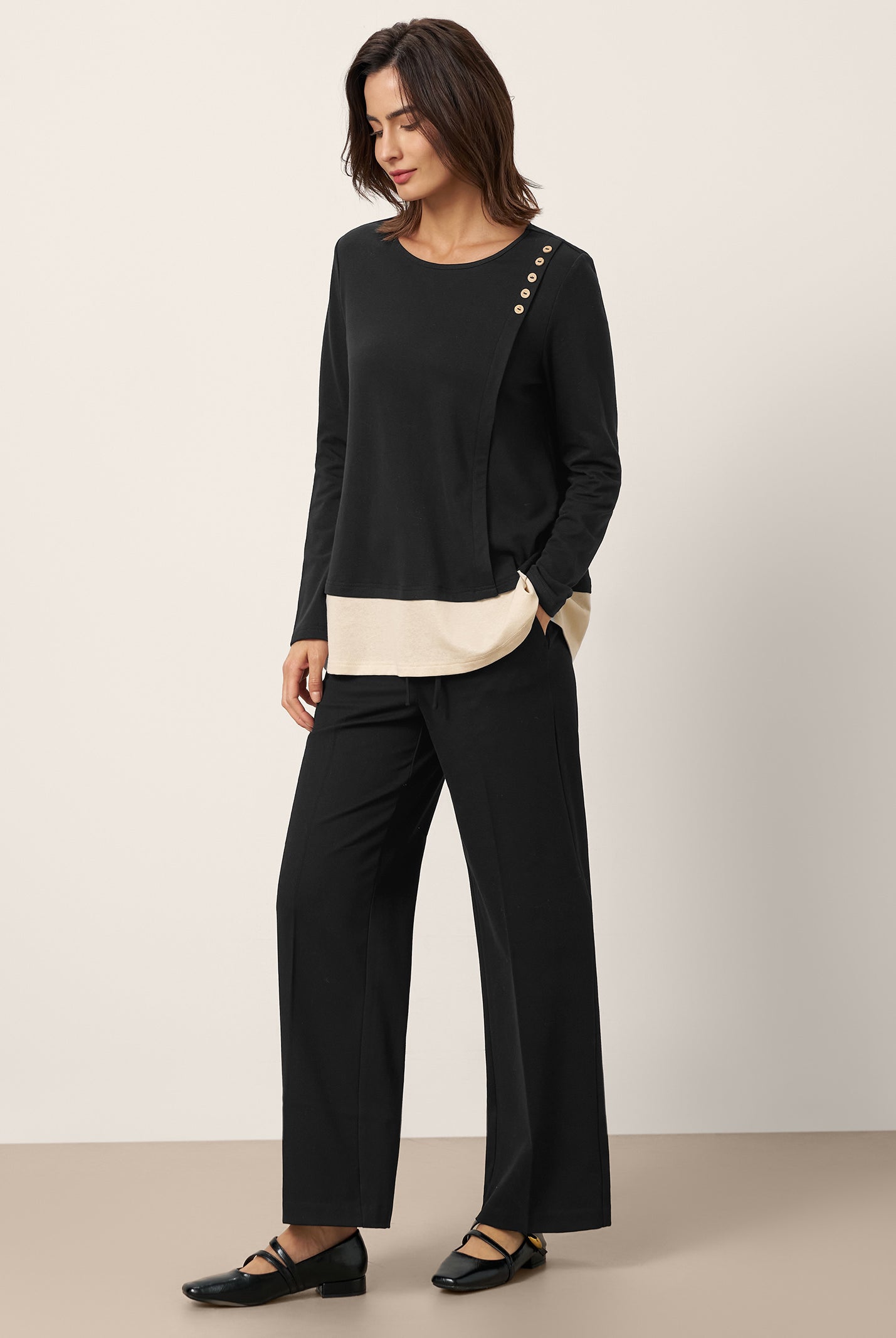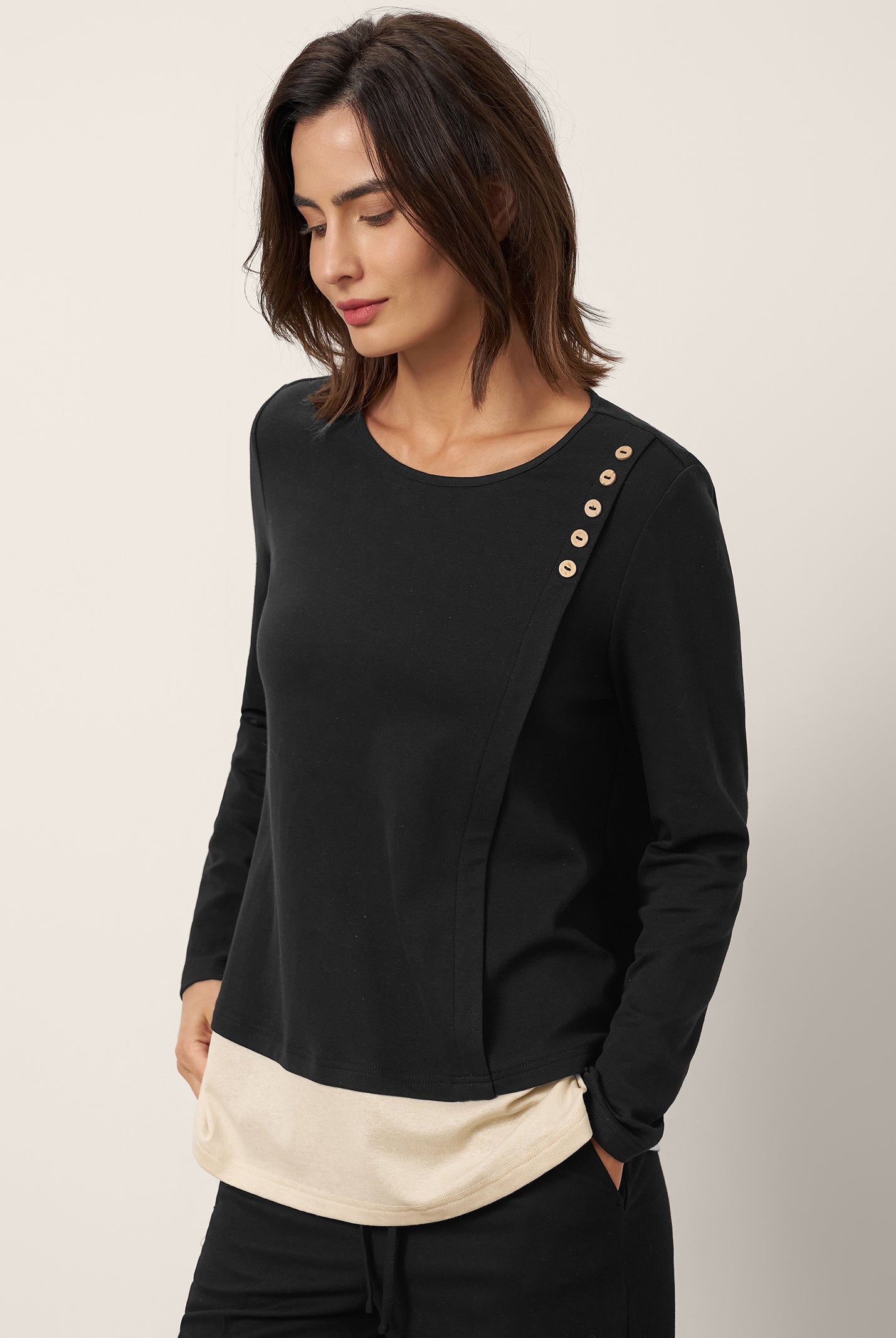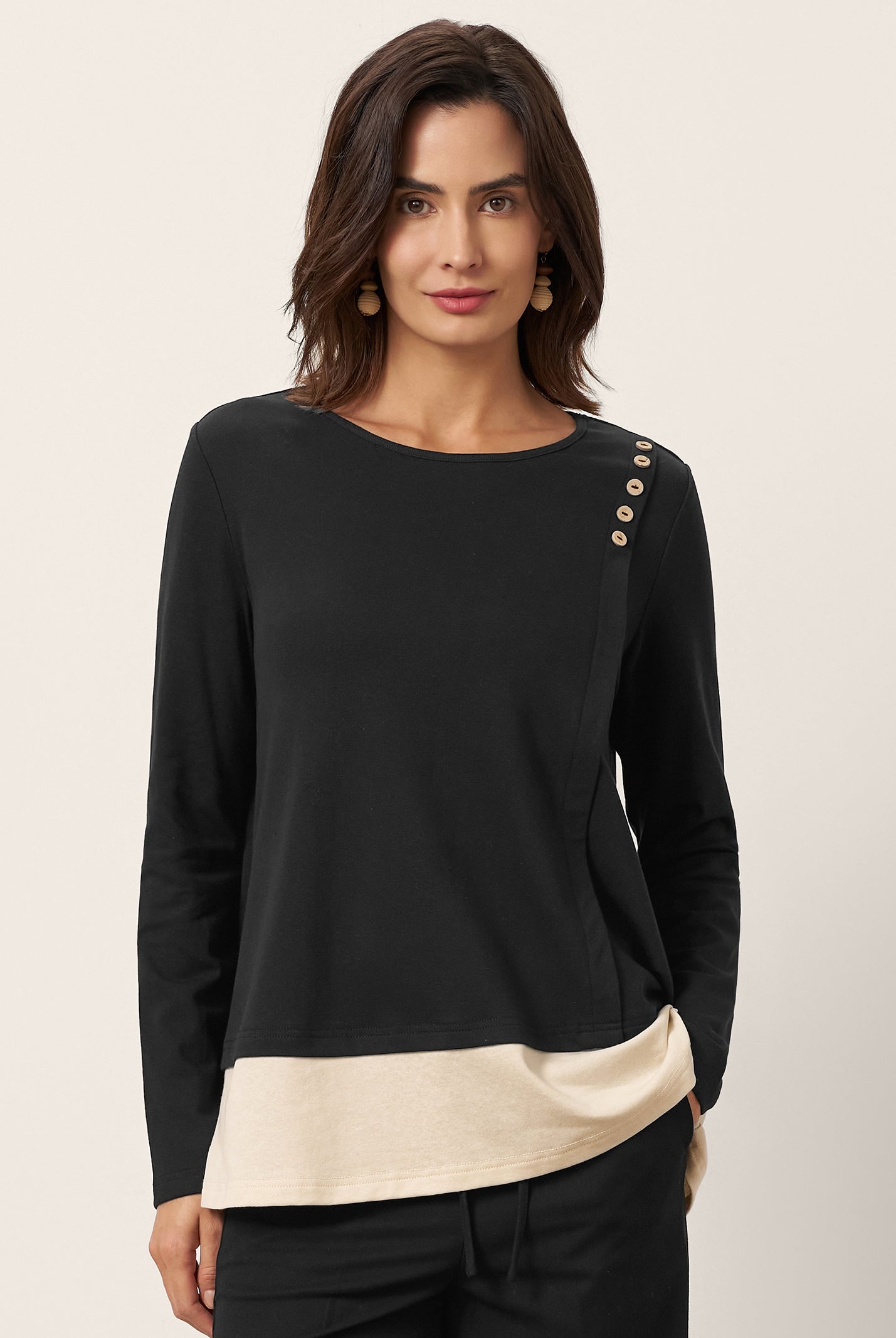 Love this top! The cotton is super soft, and the shoulder buttons add such a cute touch. Fits true to size and works with everything—jeans, skirts, you name it. So comfy I forget I’m even dressed up.