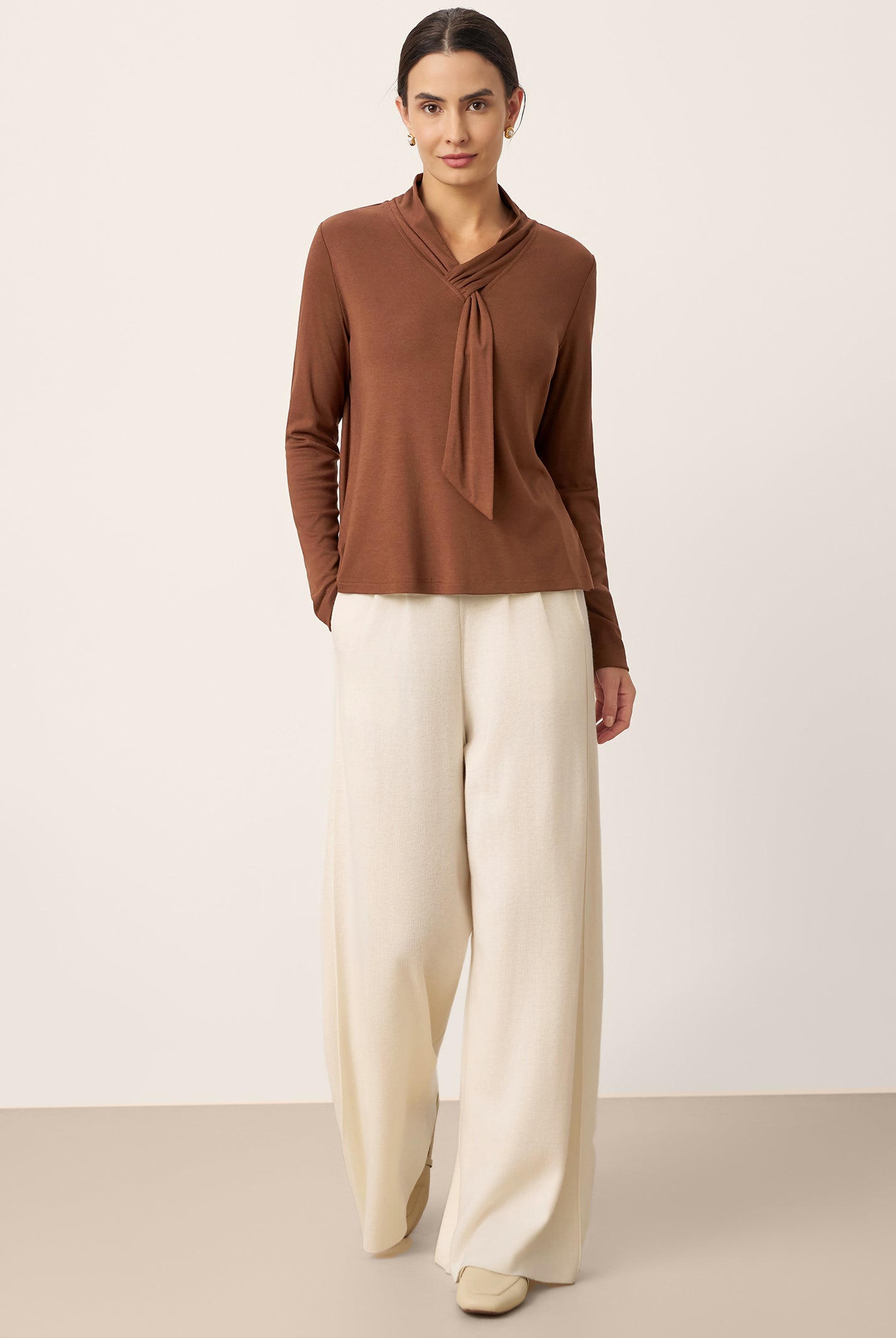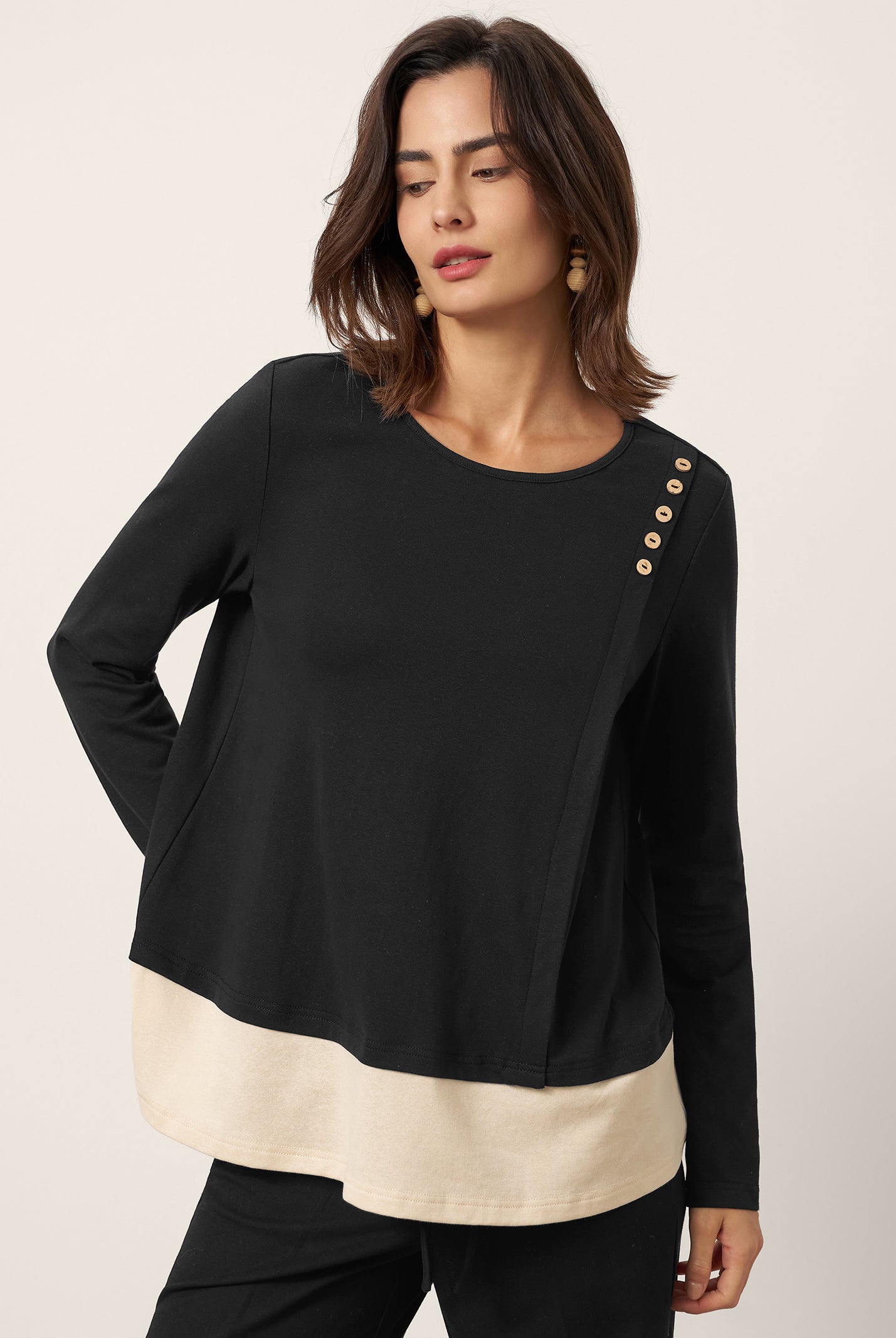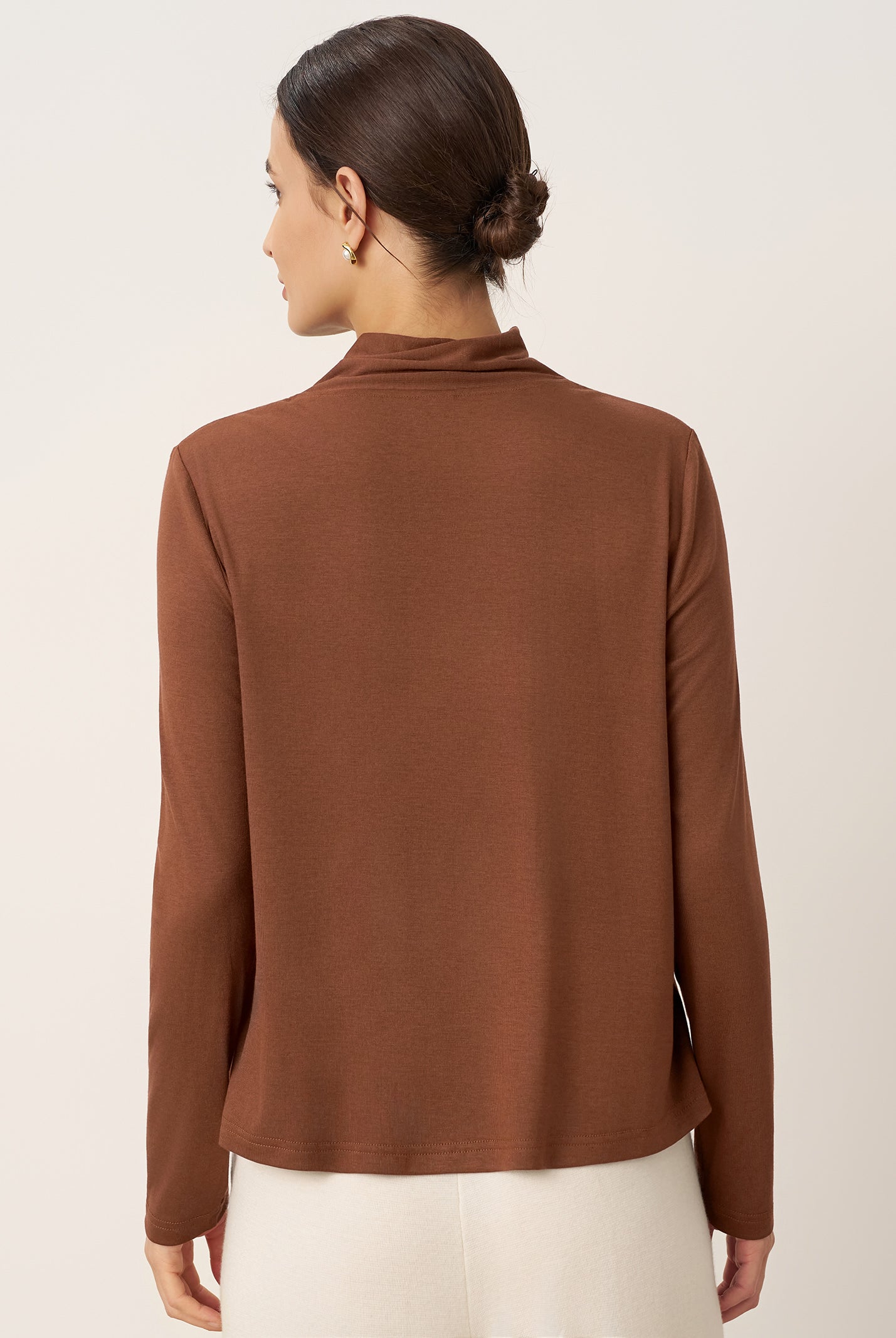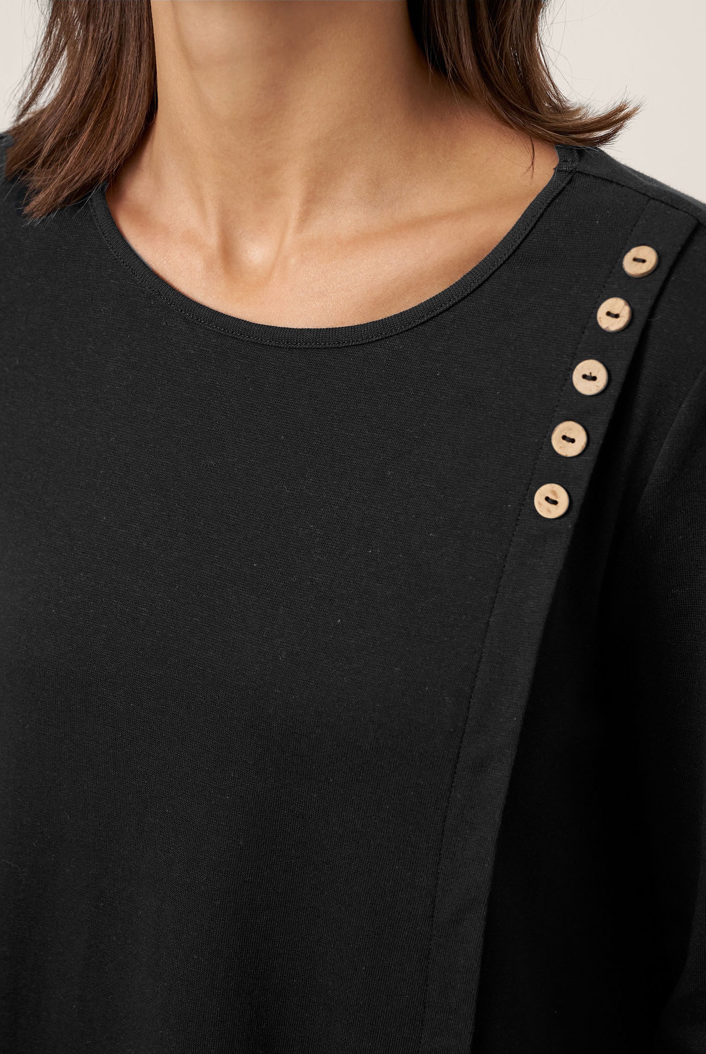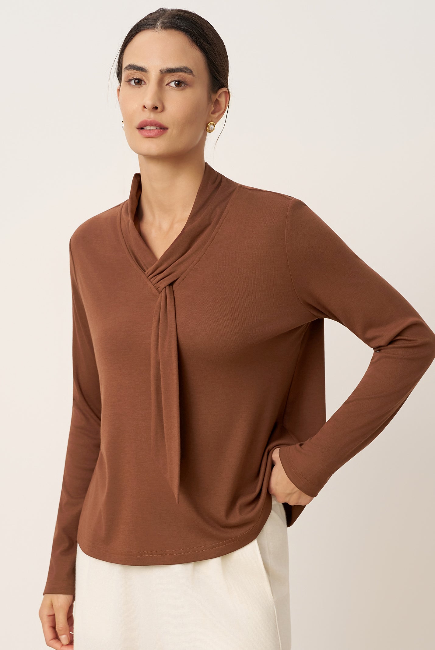 The cotton draped neck top is so comfortable and stylish. The A line fit flatters my figure perfectly and the long sleeves are great for cooler days. I get compliments every time I wear it and it pairs well with everything in my closet.