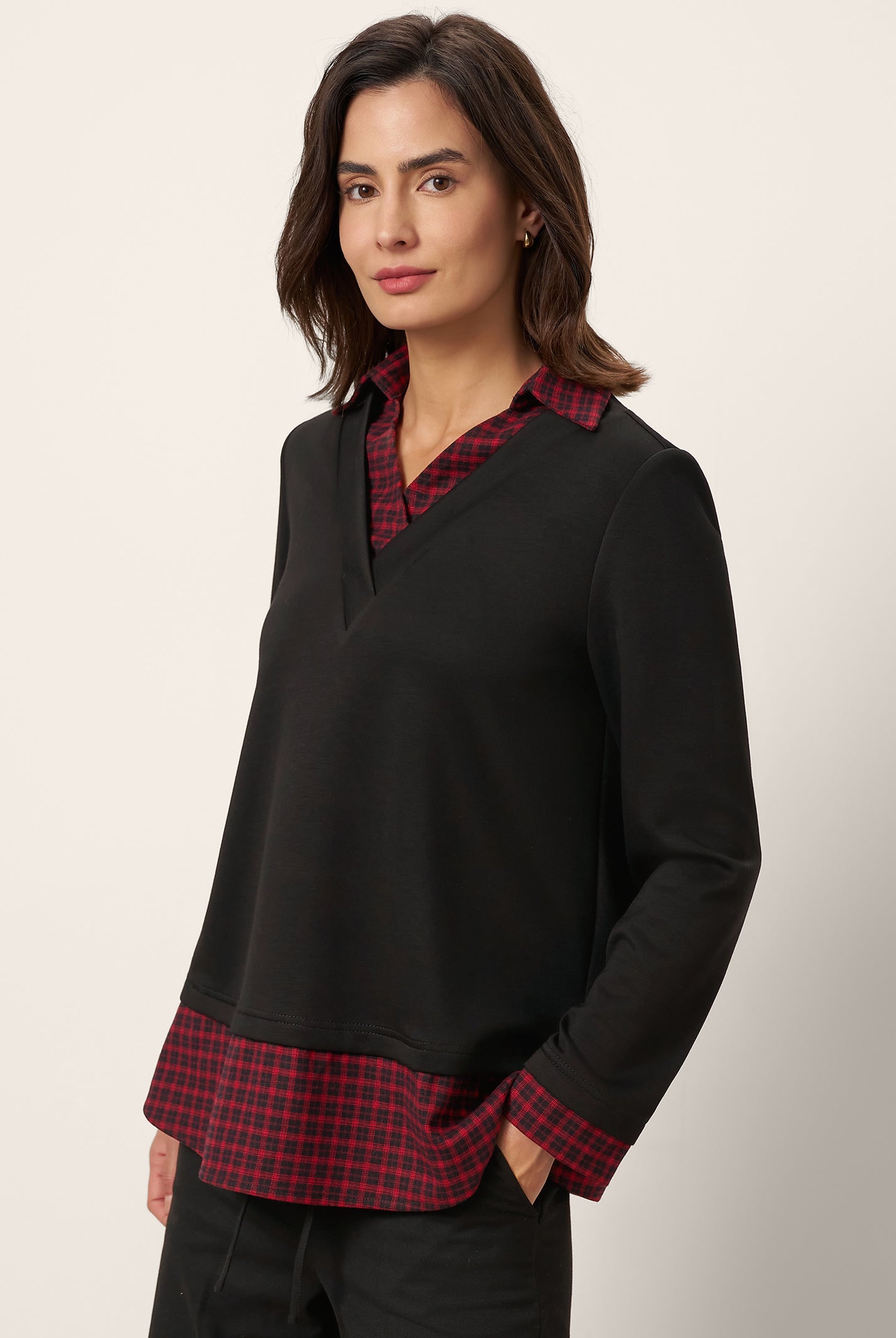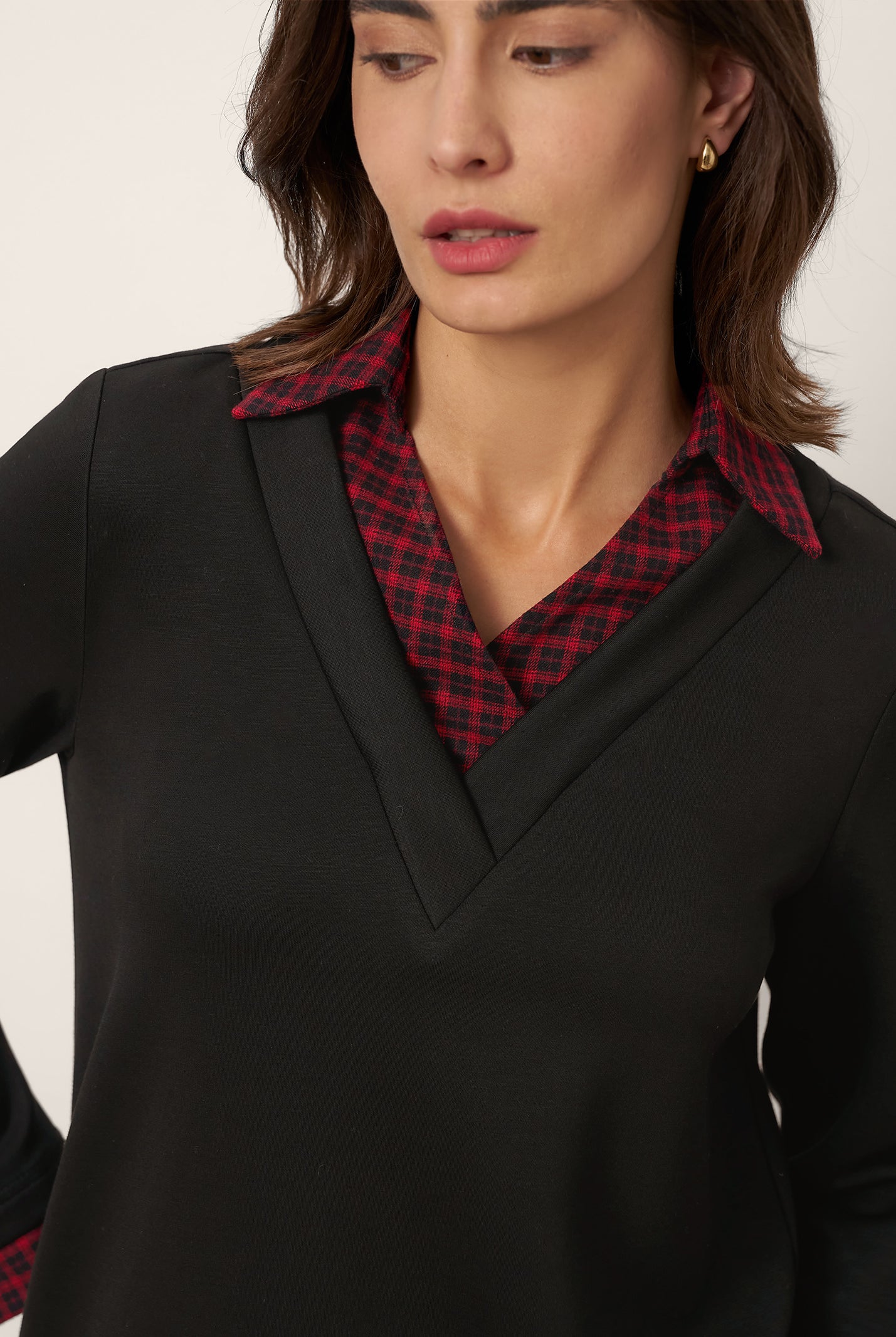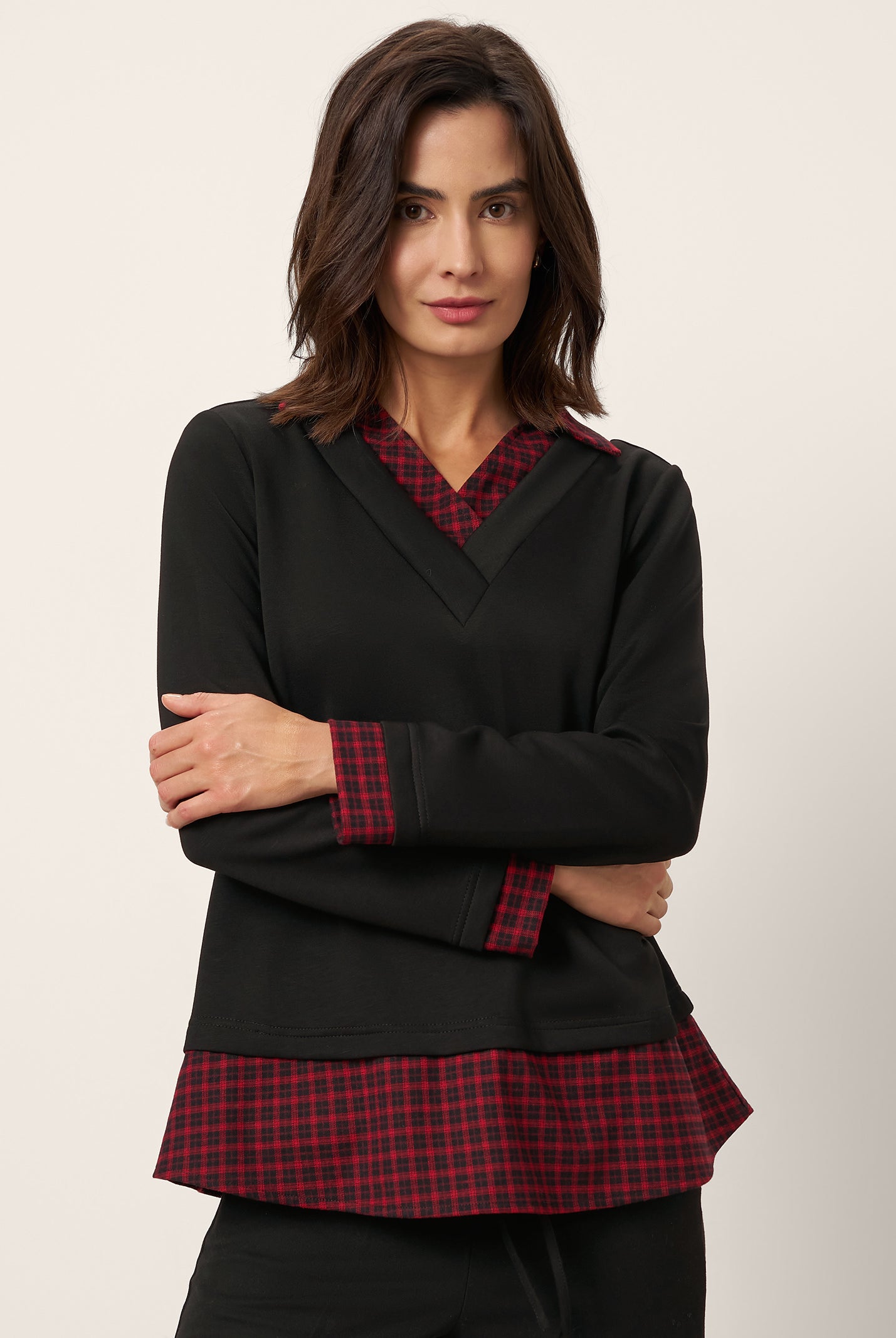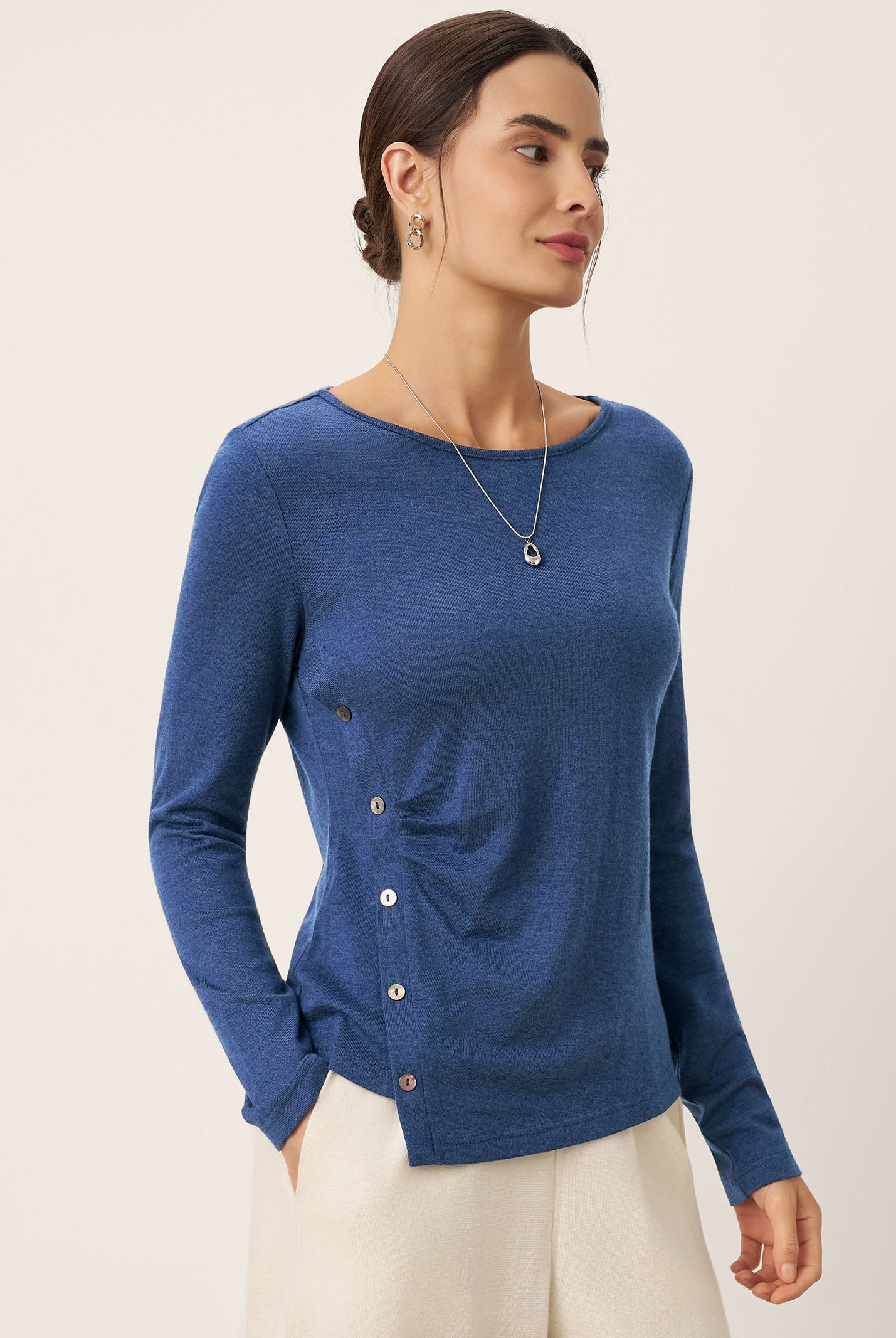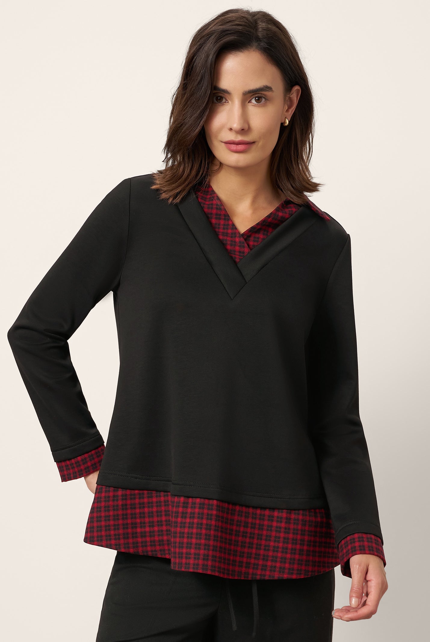 The cotton draped neck top is so comfortable and stylish. The A line fit flatters my figure perfectly and the long sleeves are great for cooler days. I get compliments every time I wear it and it pairs well with everything in my closet.