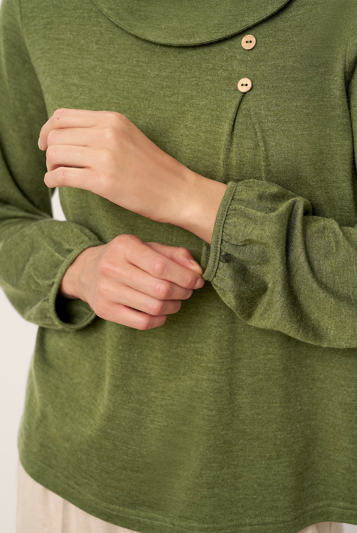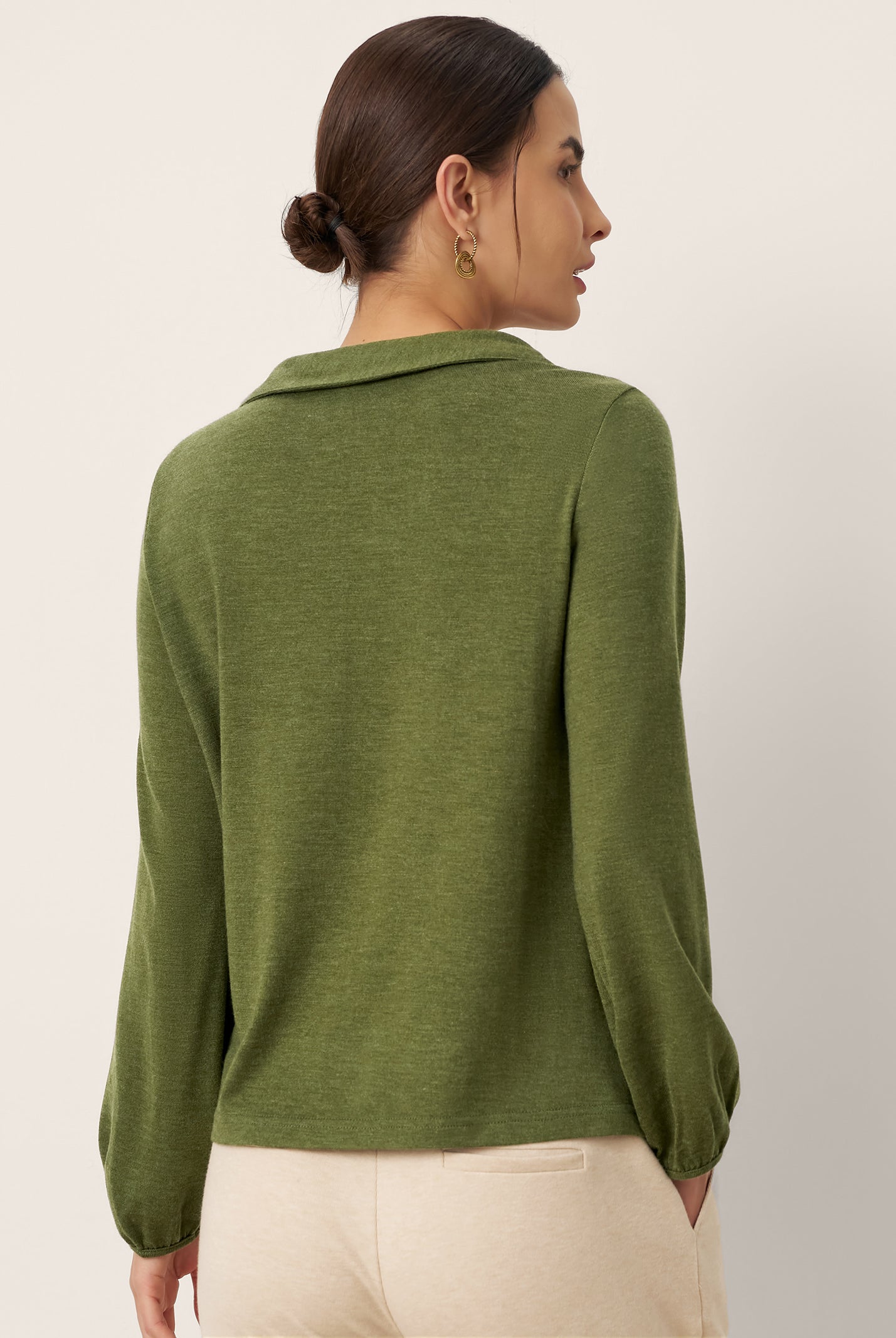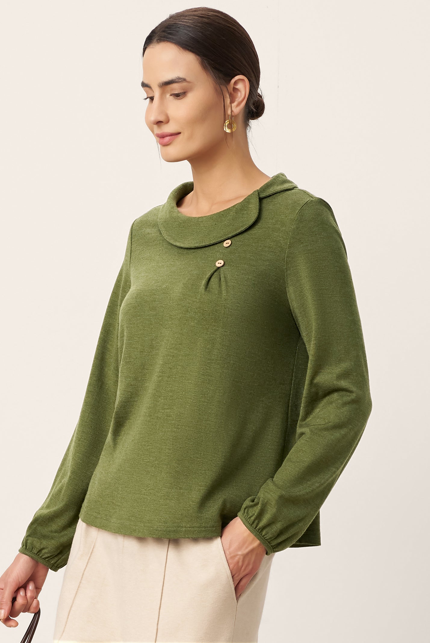 I'm impressed by how comfortable this top is. The wool keeps me warm without being bulky, and the collar detail makes it look more dressy than a basic sweater.