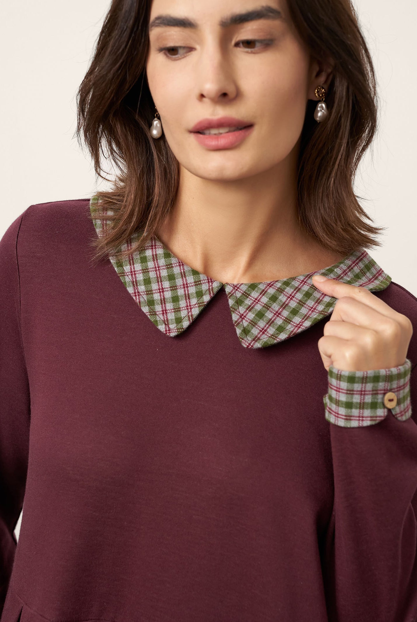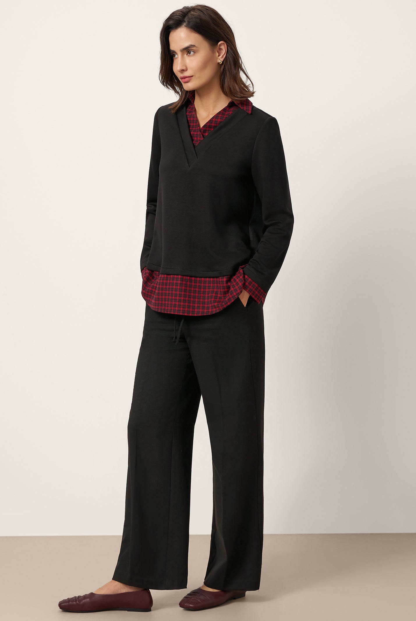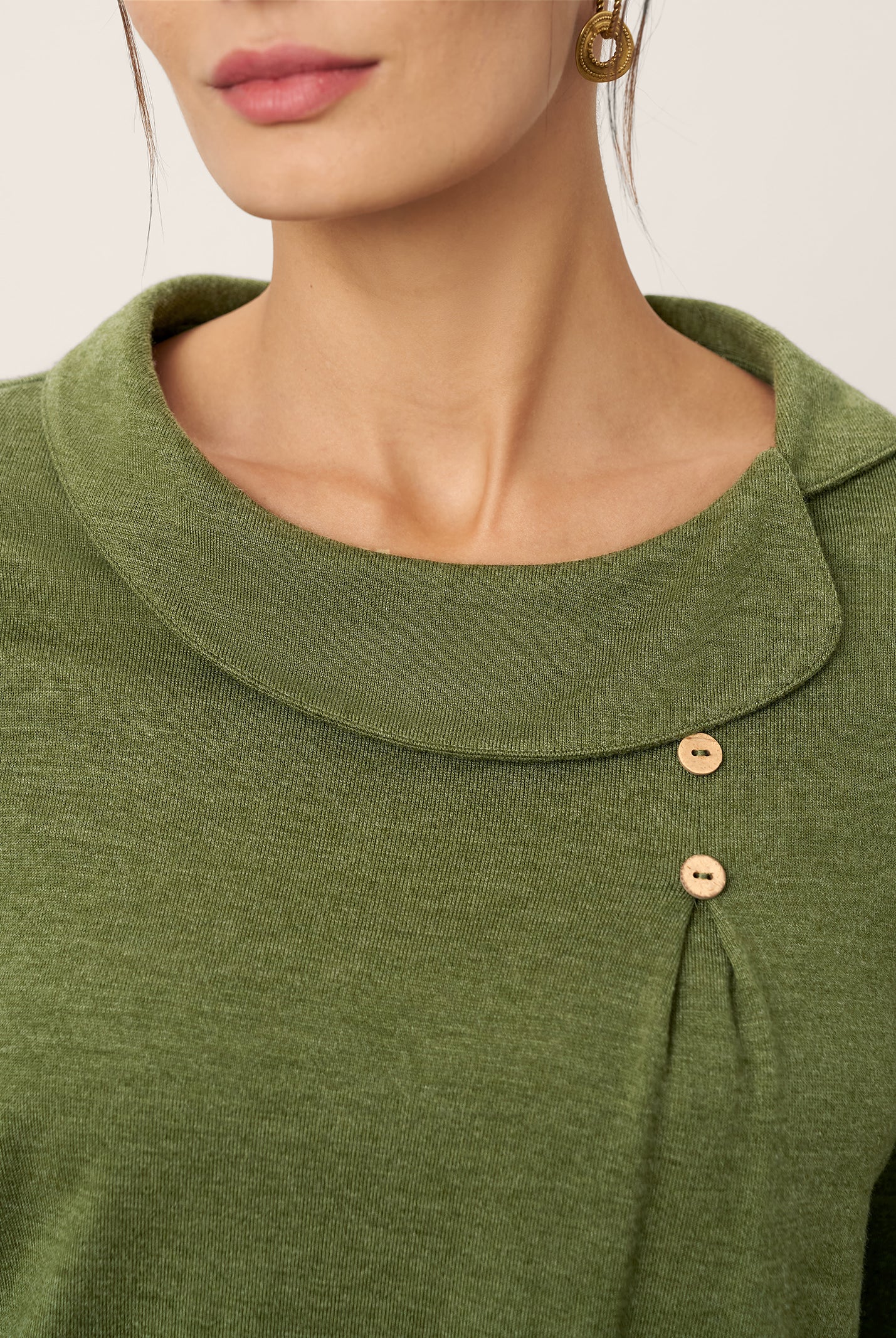 I'm impressed by how comfortable this top is. The wool keeps me warm without being bulky, and the collar detail makes it look more dressy than a basic sweater.