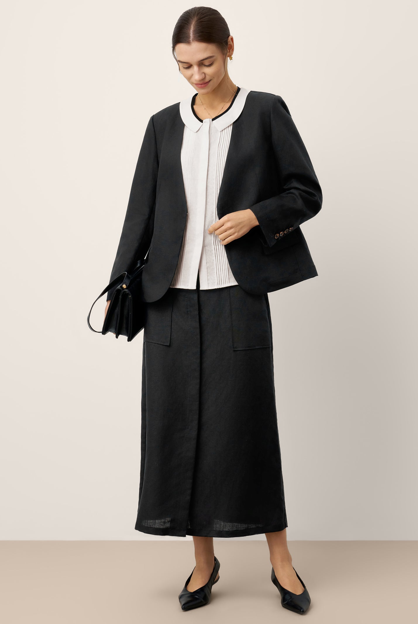 Love this linen blouse! The fabric is breathable and feels great on the skin, and the structured collar gives it a polished look. I got a size S, and the fit is just right, relaxed but still flattering.