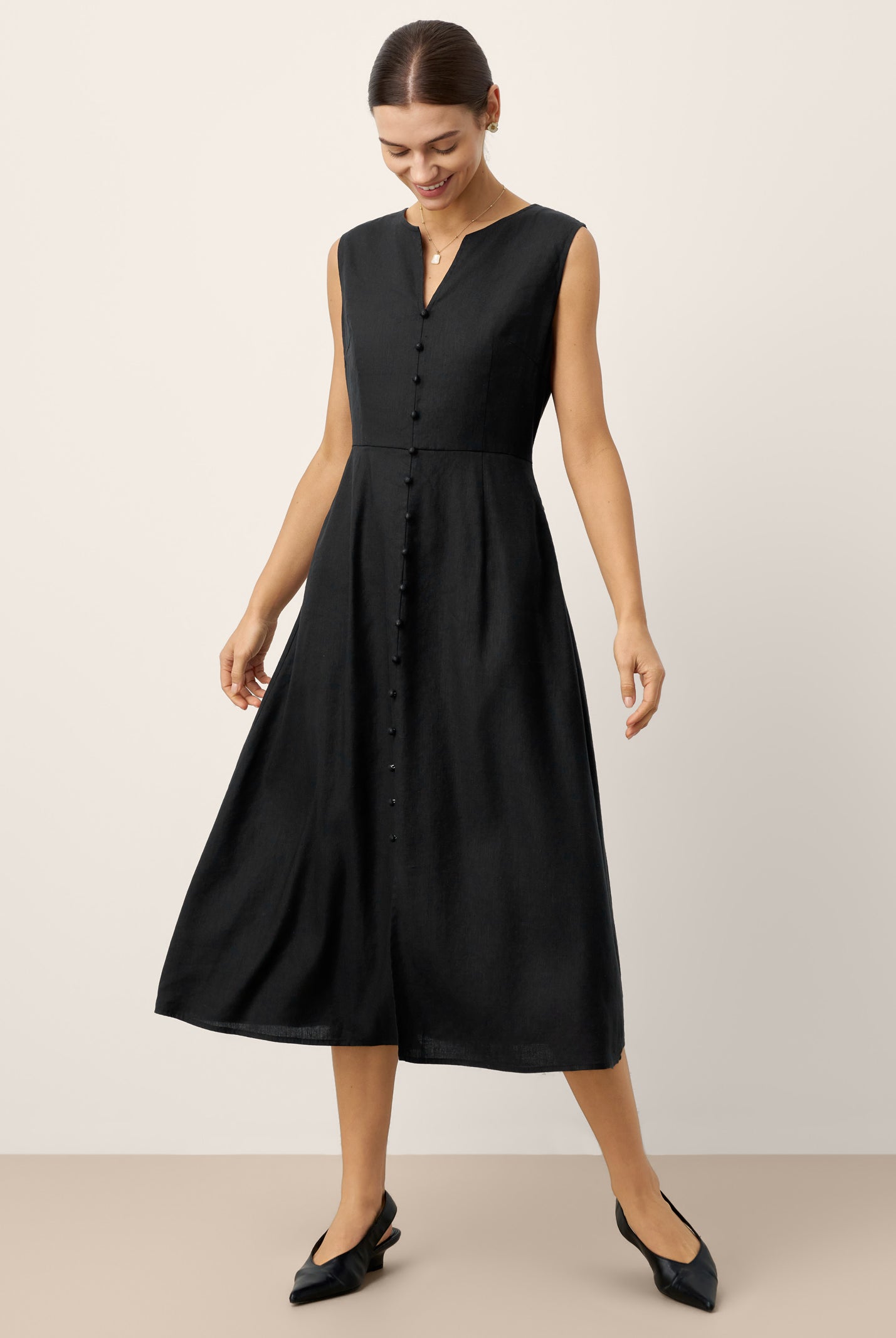 Love this linen dress, a medium to heavy weight linen, very soft and smooth. Great pockets, lots of "swing" to the dress. Cool and stylish for summer days !