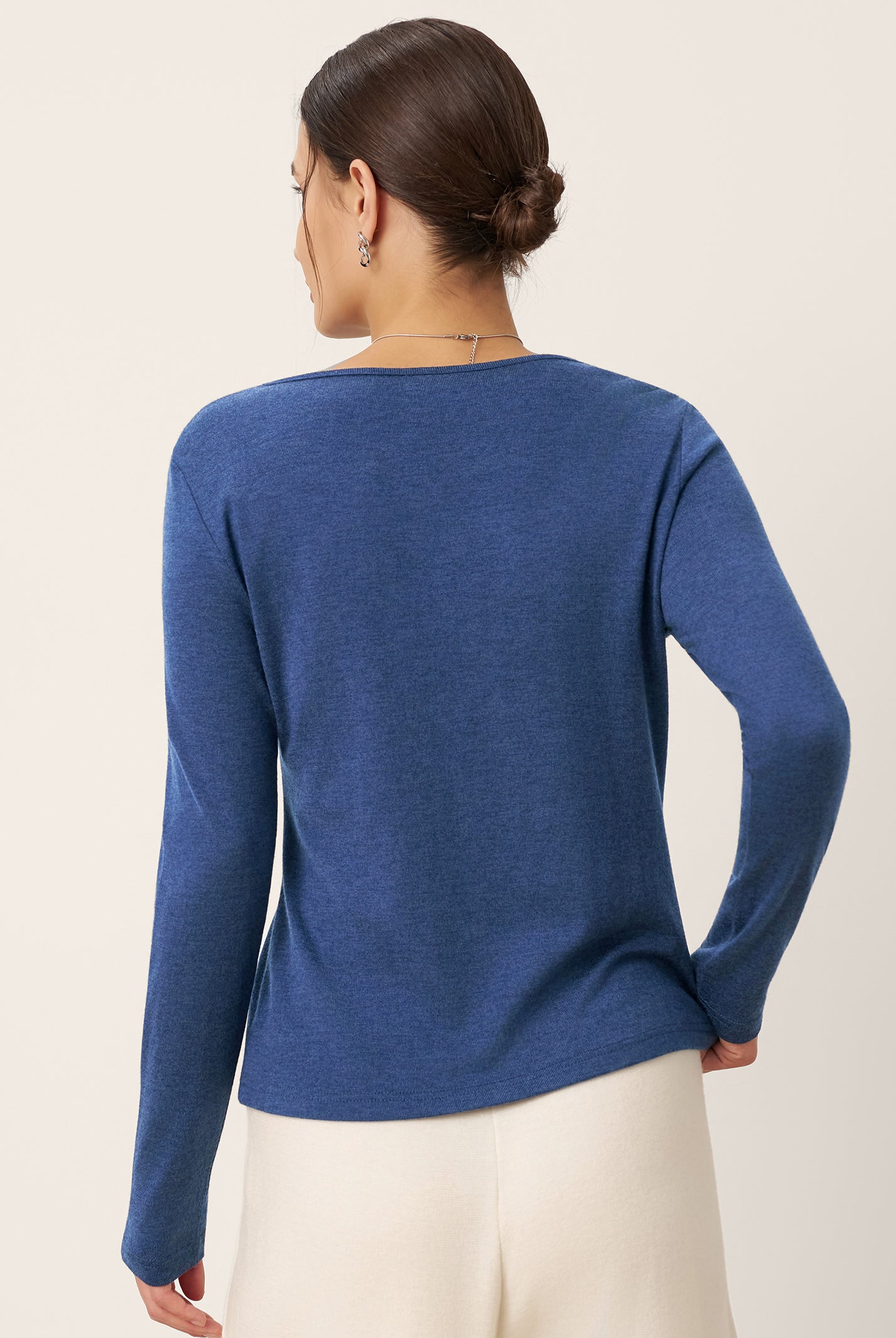 So glad I got this long sleeve top. The design is chic and the material feels high quality. Goes with everything in my closet.