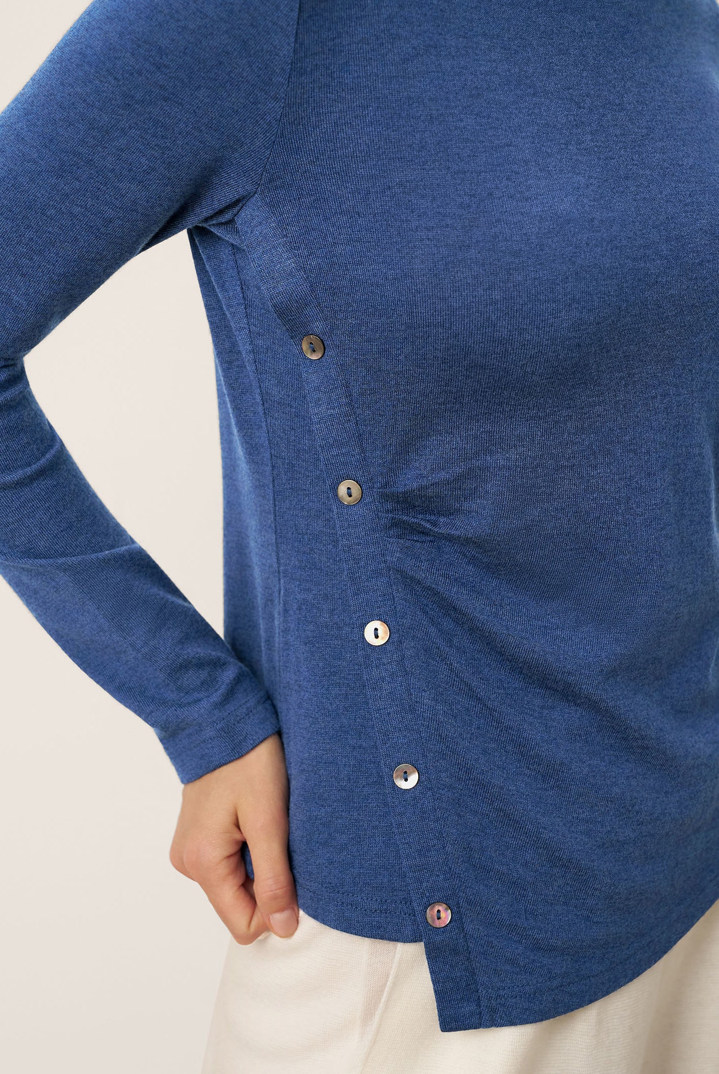 Obsessed with this top! The ruching detail adds just the right amount of flair, and the stretchy wool is both cozy and polished. Perfect for pairing with jeans. Love it!