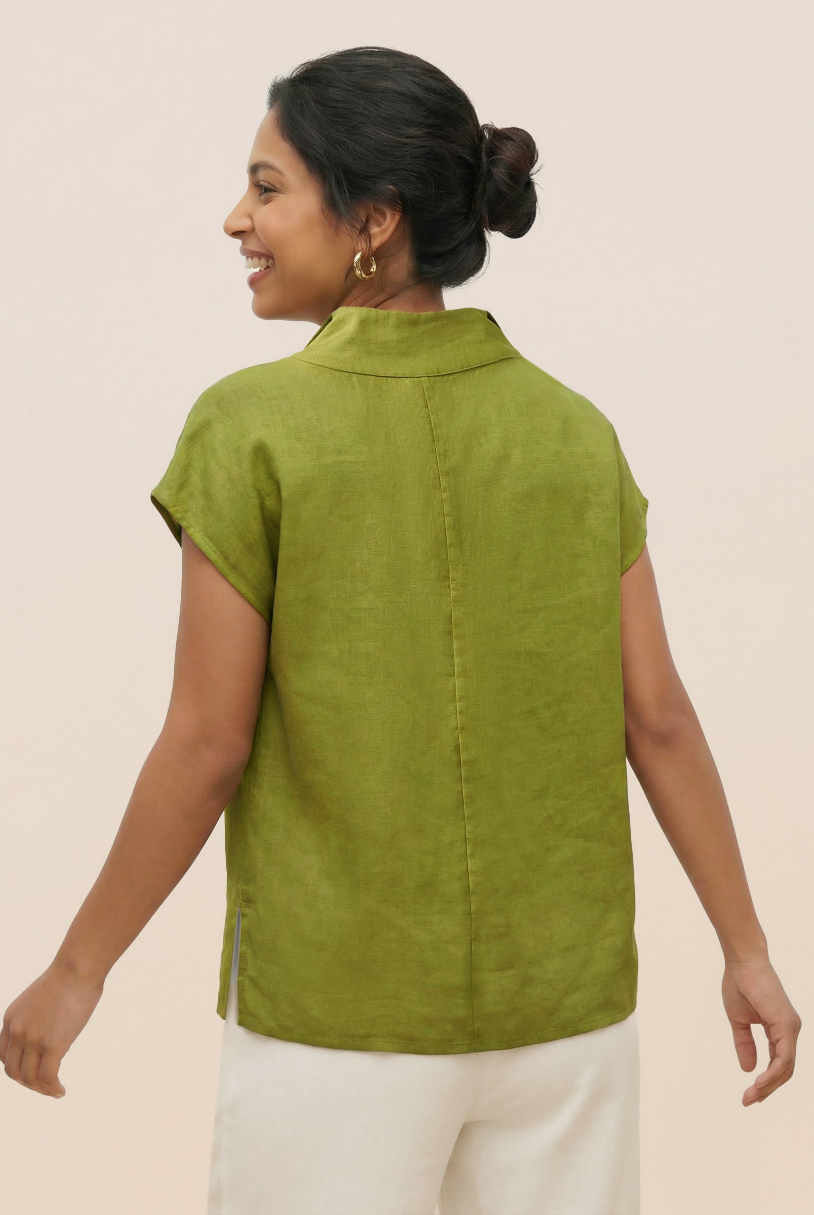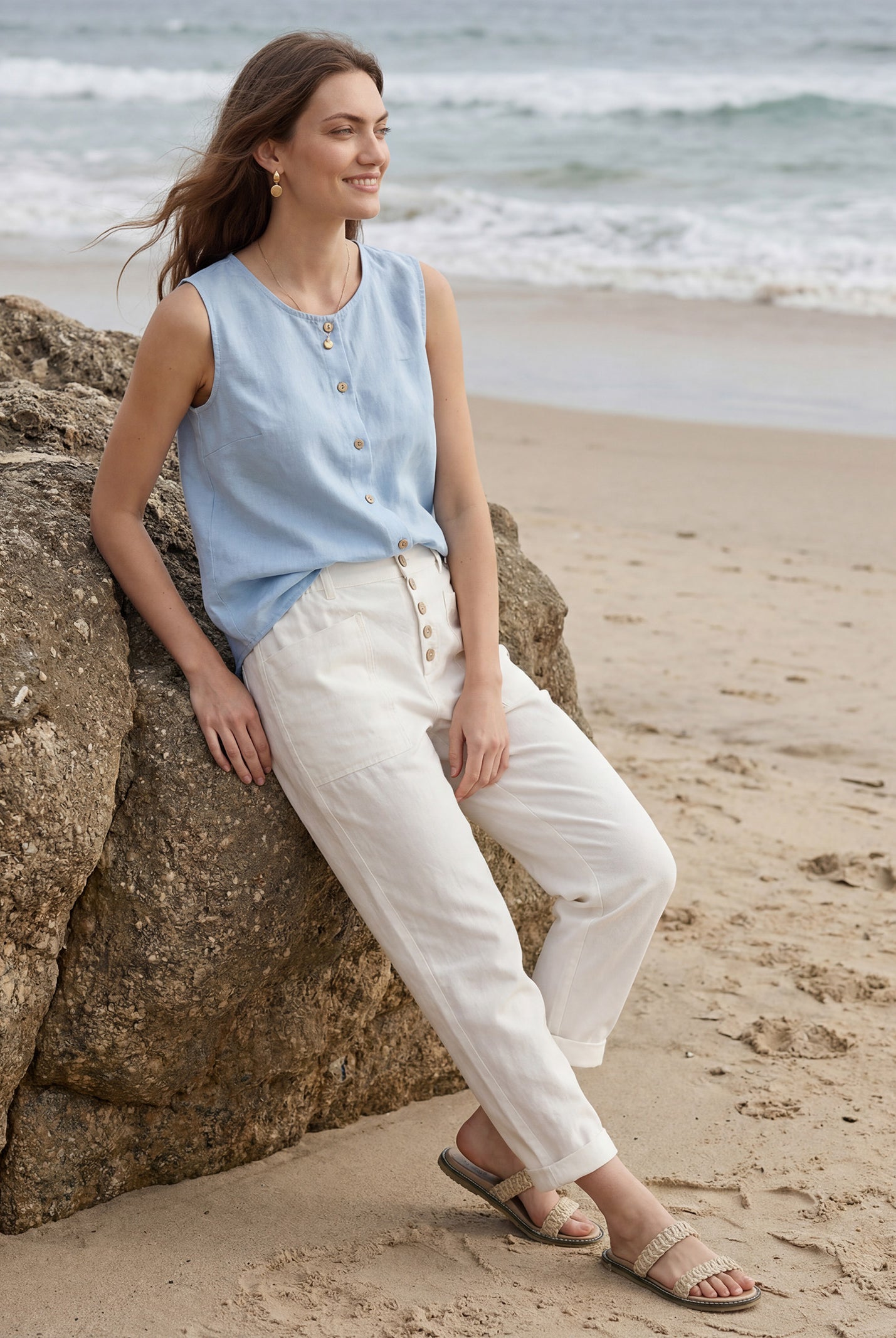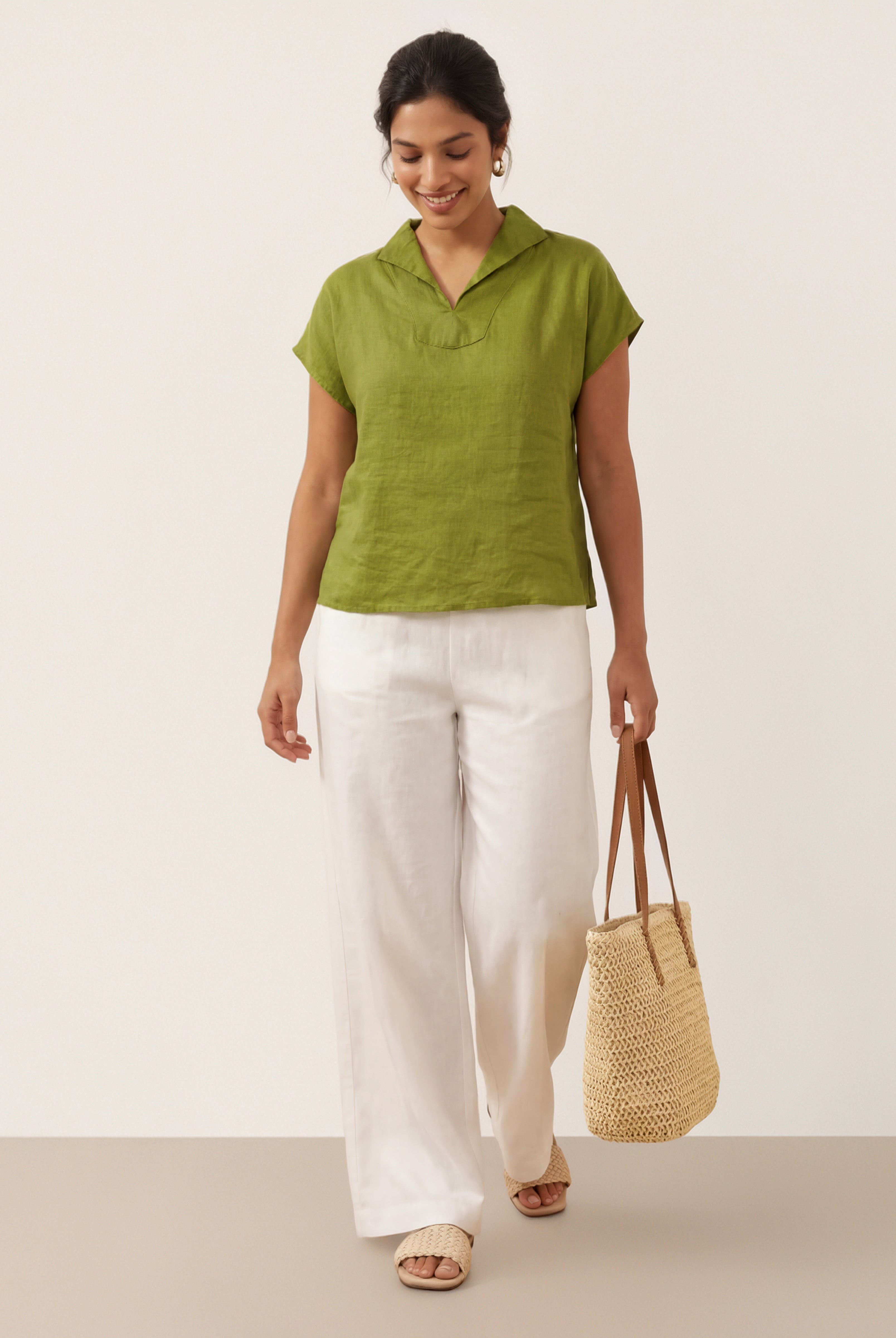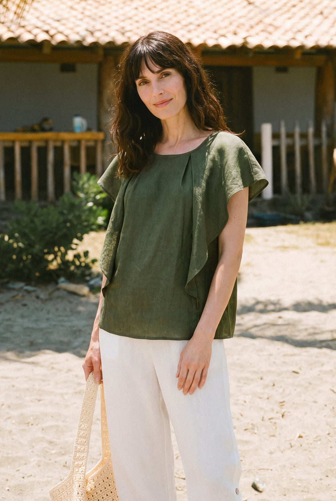 This linen top became an instant favorite, wore it to my regular coffee spot and felt comfortable all day. The fabric breathes beautifully, and the neckline adds subtle style. Fits true to size with a flattering drape that doesn't cling. Color and details match the website photos perfectly. Already planning next purchase!