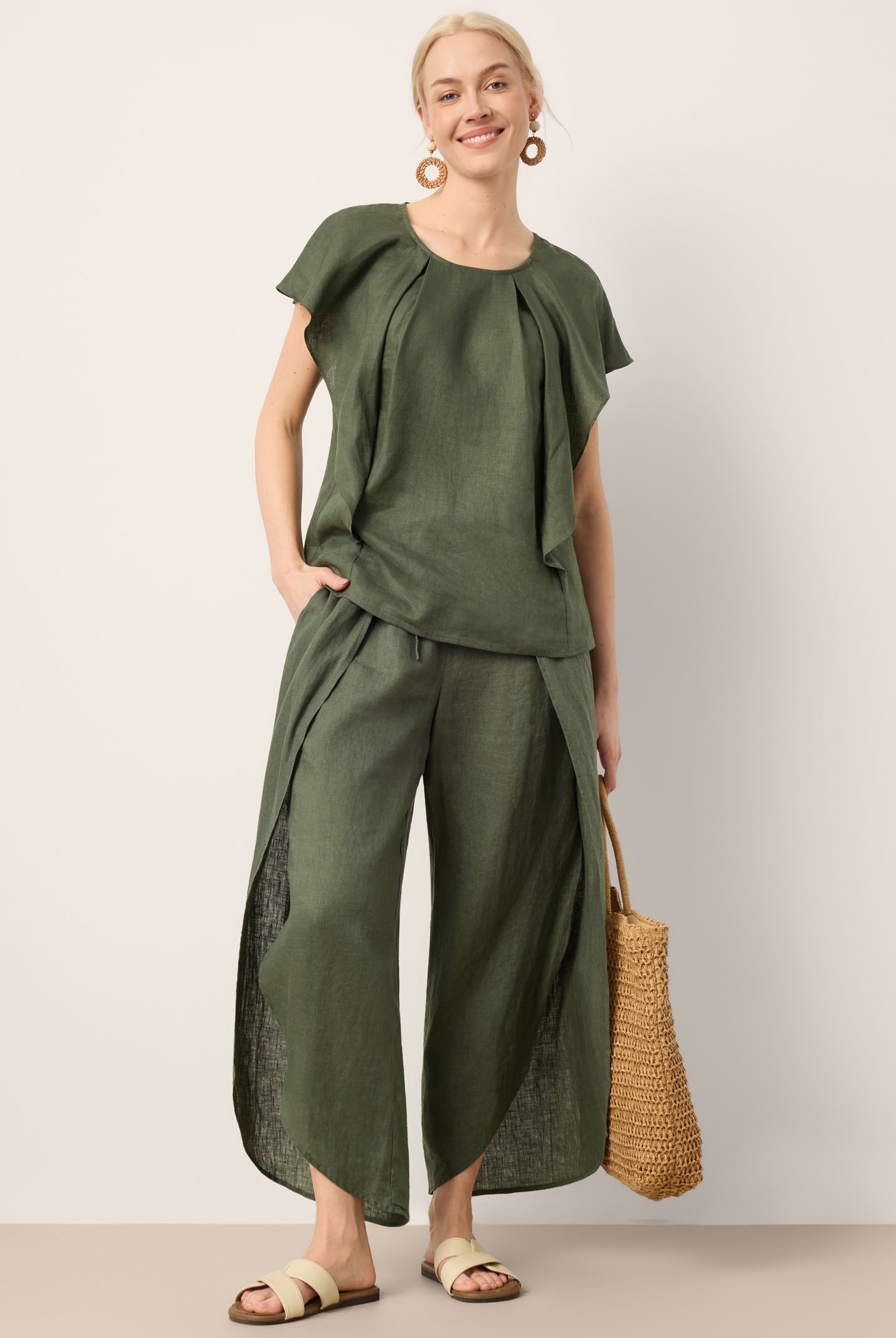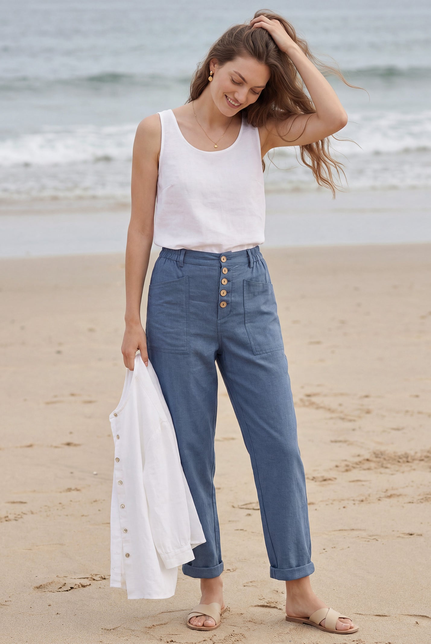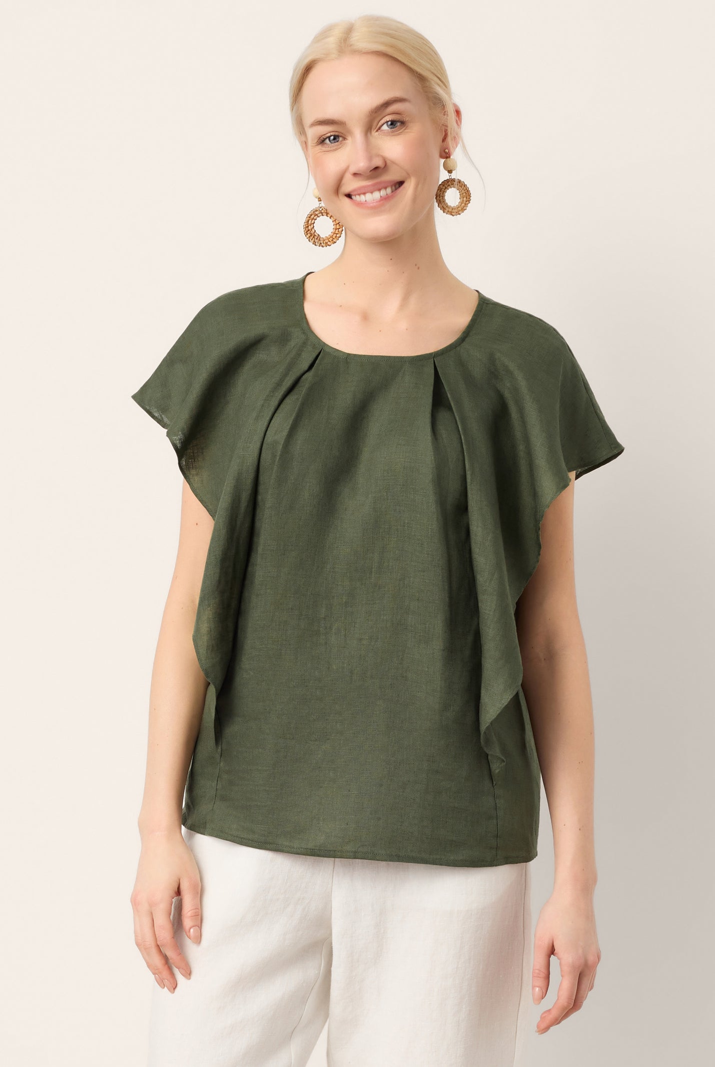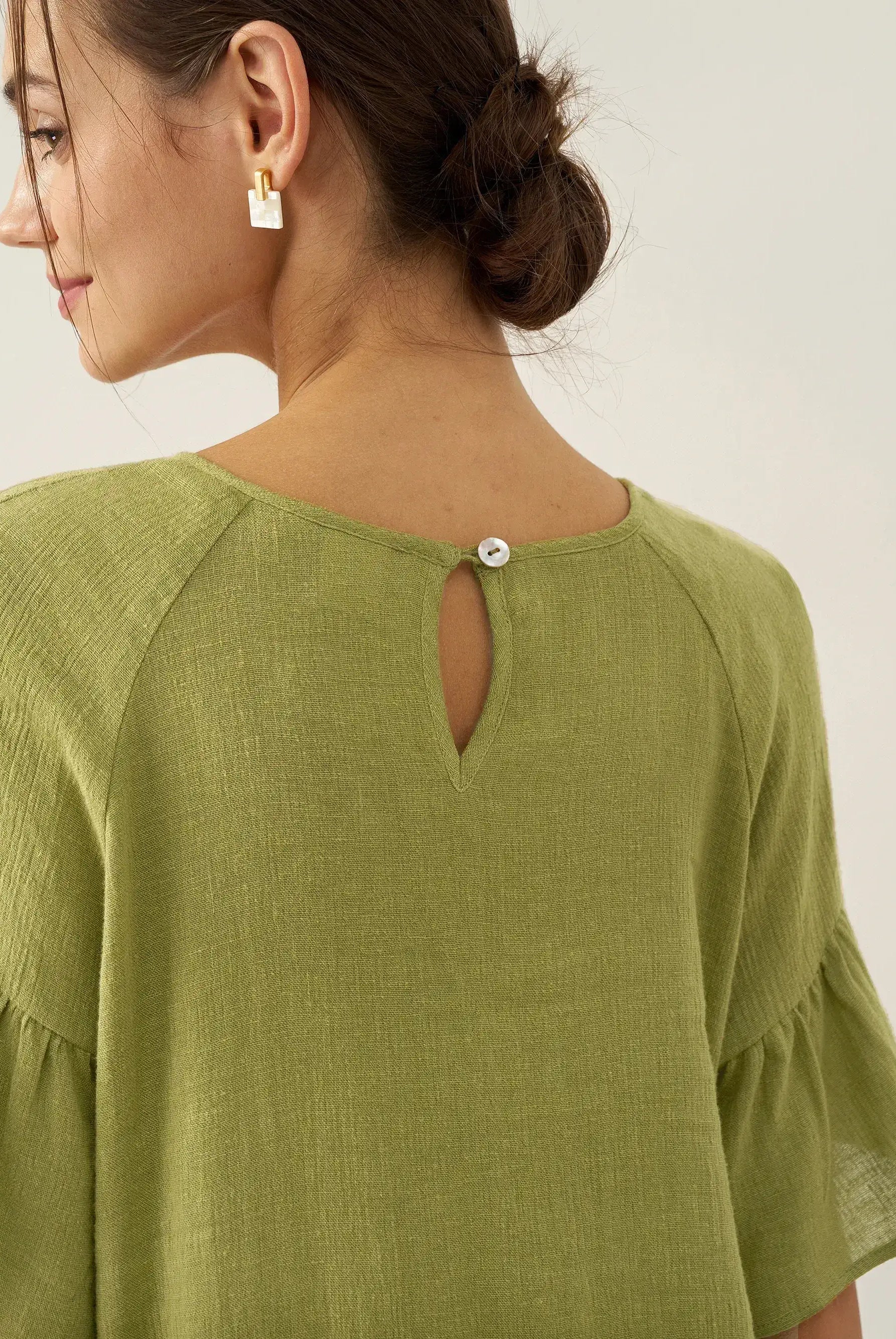 This linen top became an instant favorite, wore it to my regular coffee spot and felt comfortable all day. The fabric breathes beautifully, and the neckline adds subtle style. Fits true to size with a flattering drape that doesn't cling. Color and details match the website photos perfectly. Already planning next purchase!