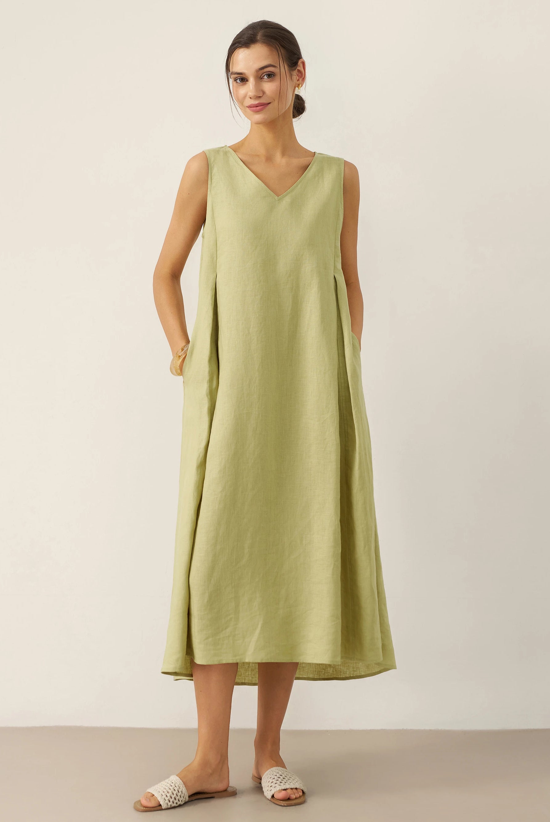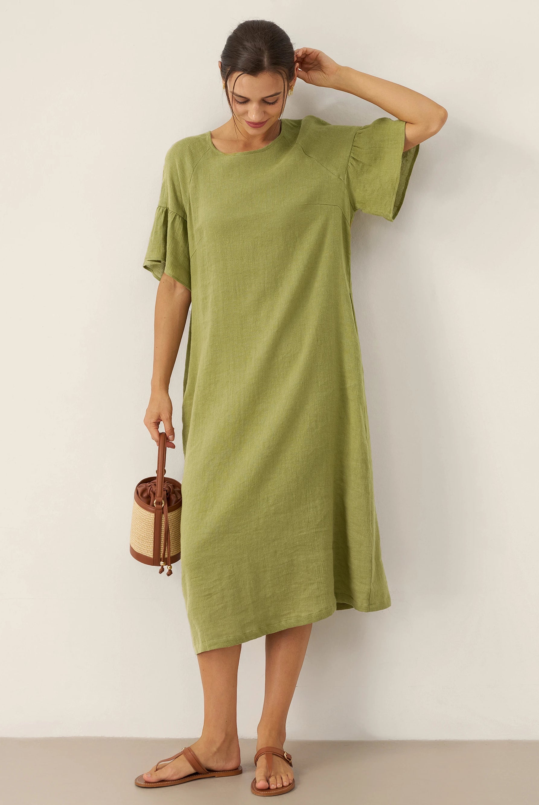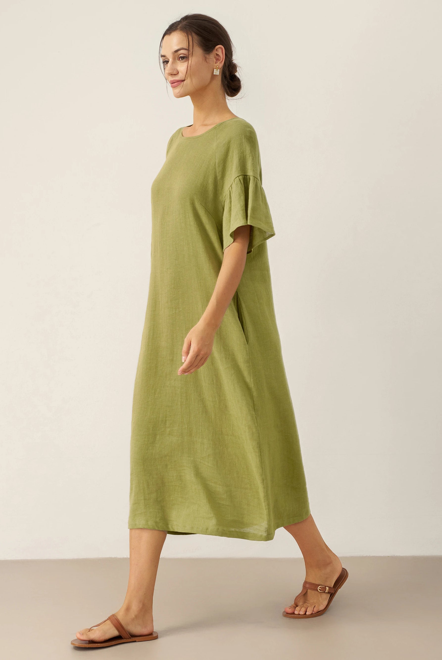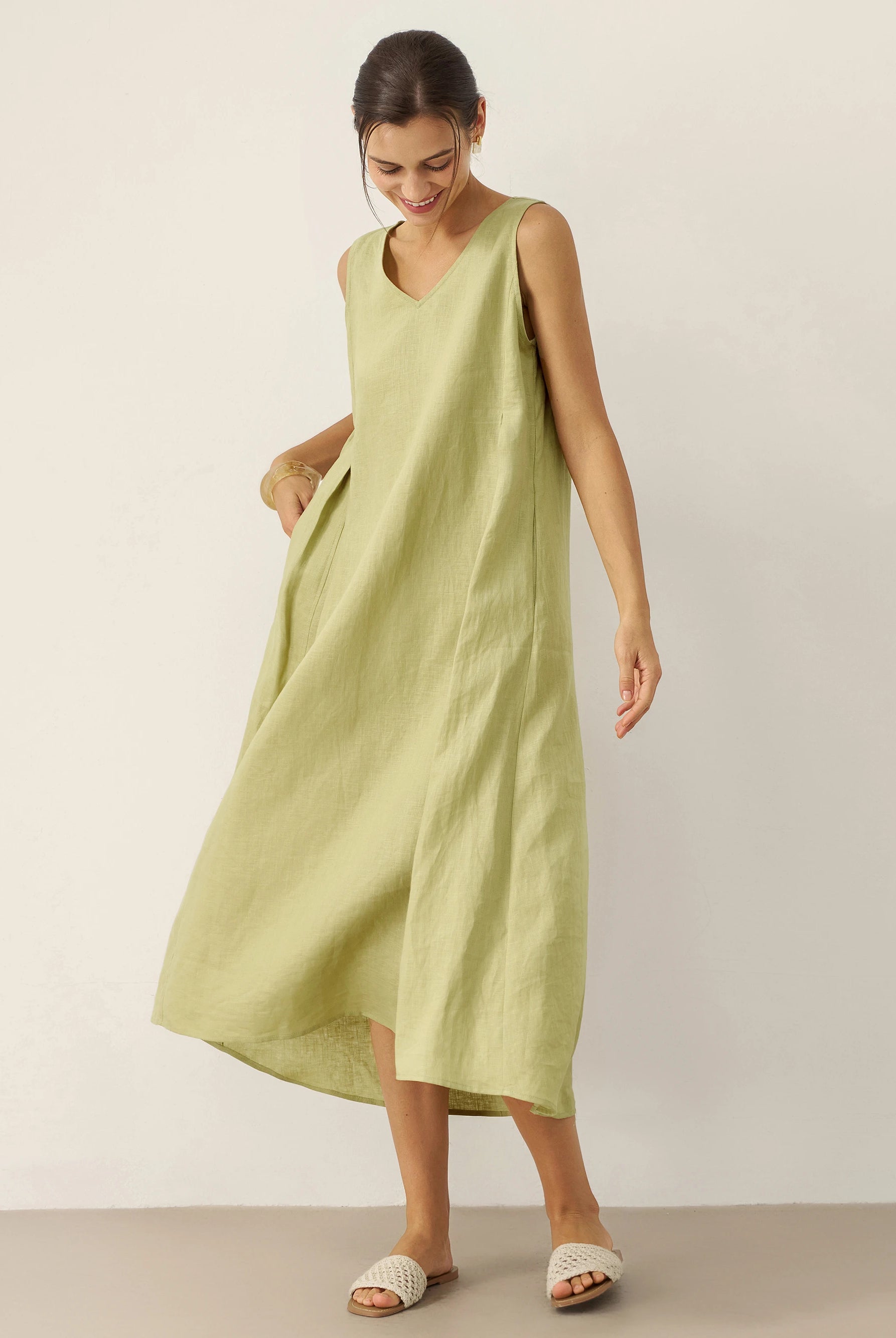 I didn’t expect a linen dress to feel this easy to wear. The deep green color is beautiful and the fabric is breathable even on warm days. The pockets are a lovely bonus, and the relaxed silhouette makes it perfect for walking around the city or meeting friends for coffee.