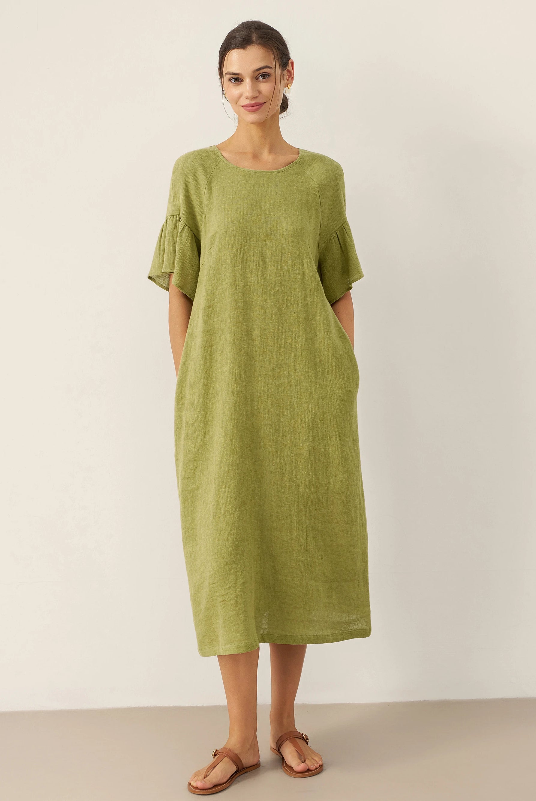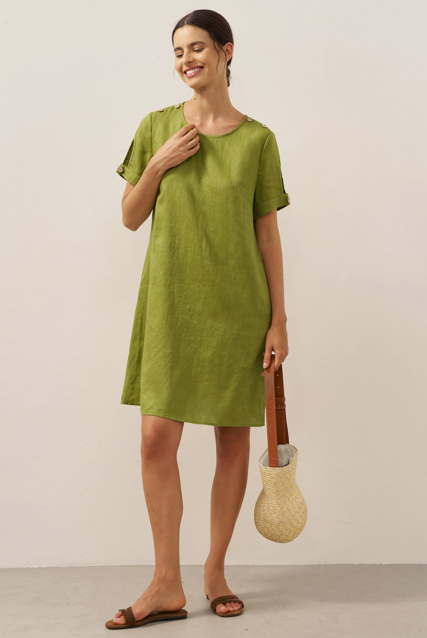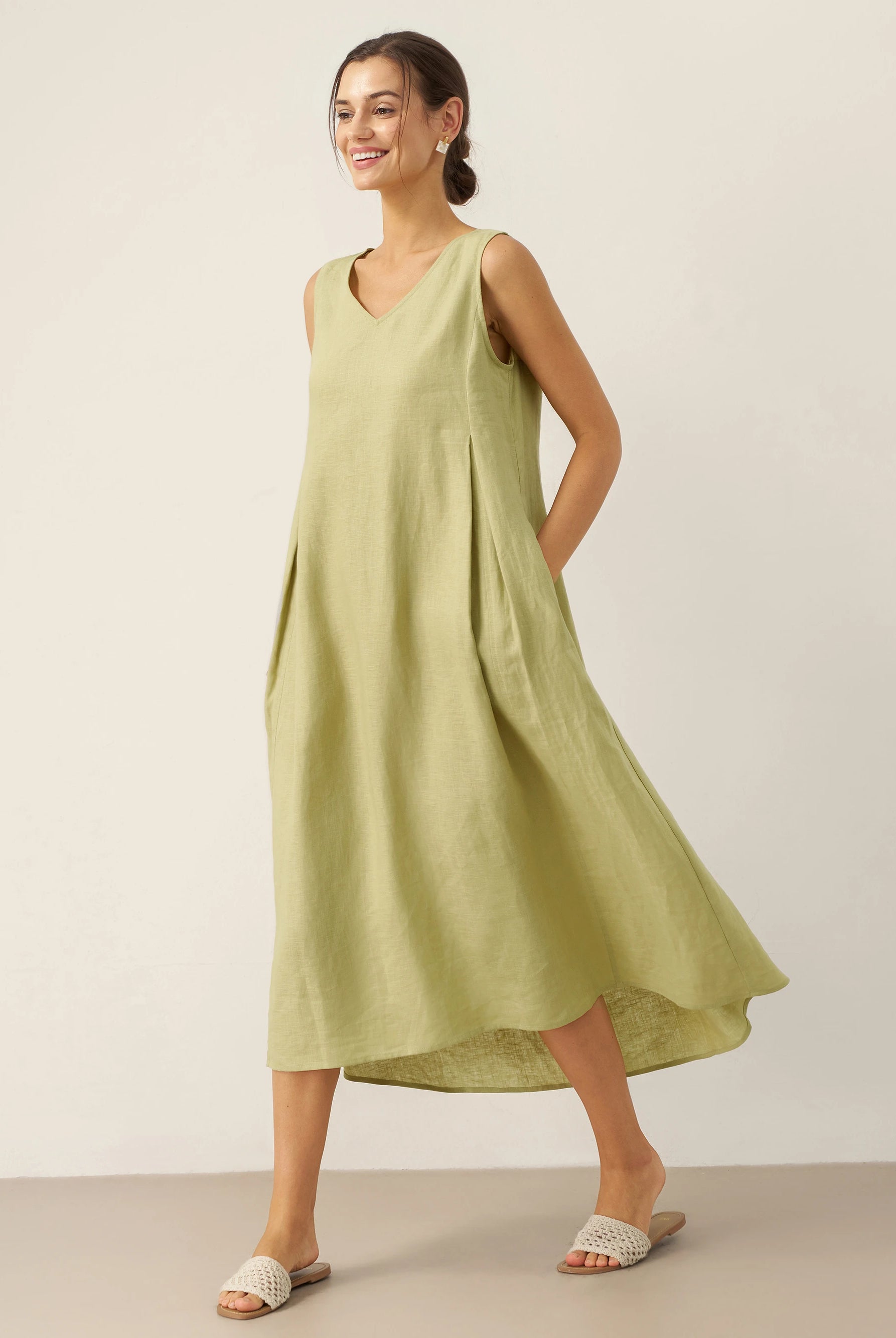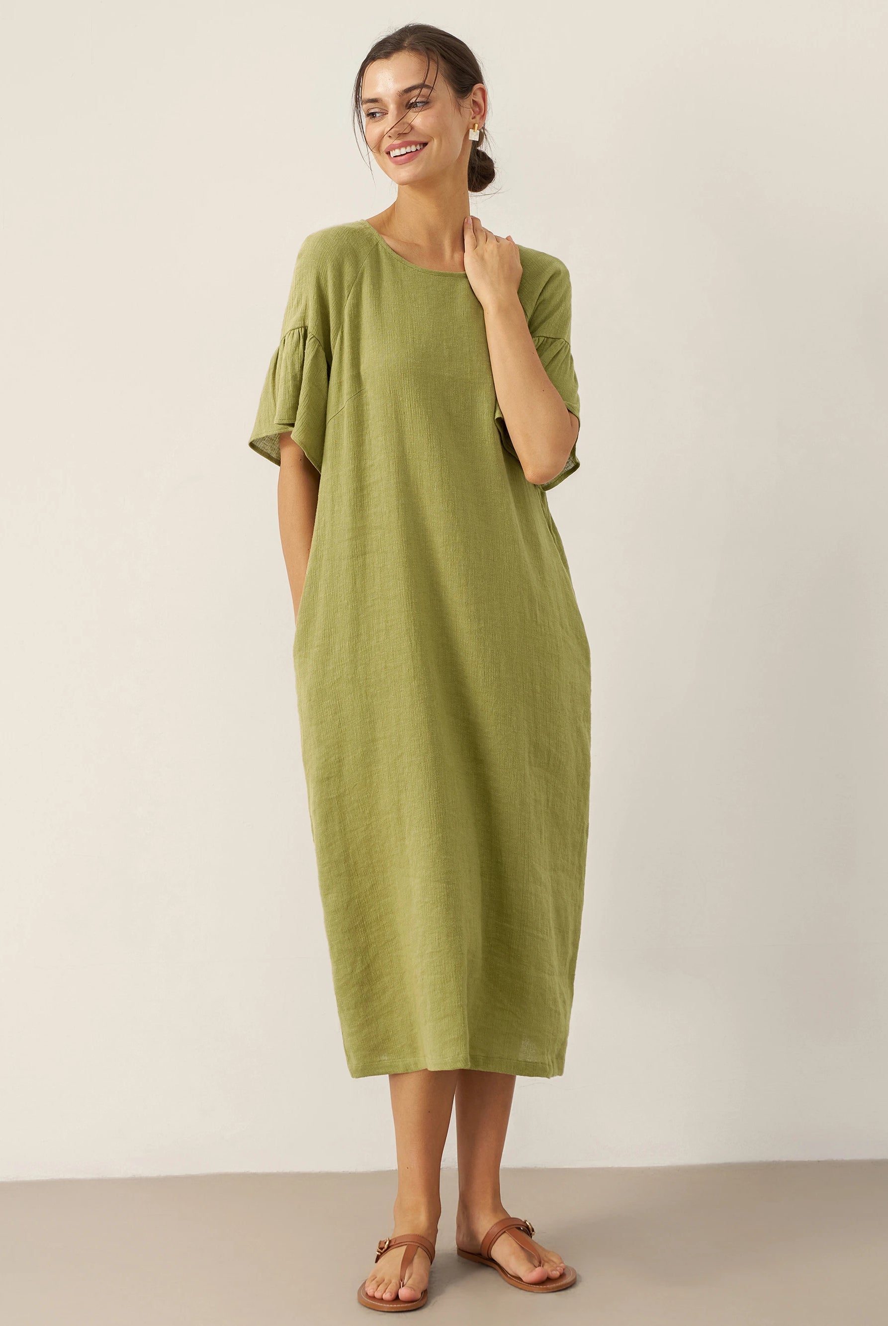 I didn’t expect a linen dress to feel this easy to wear. The deep green color is beautiful and the fabric is breathable even on warm days. The pockets are a lovely bonus, and the relaxed silhouette makes it perfect for walking around the city or meeting friends for coffee.