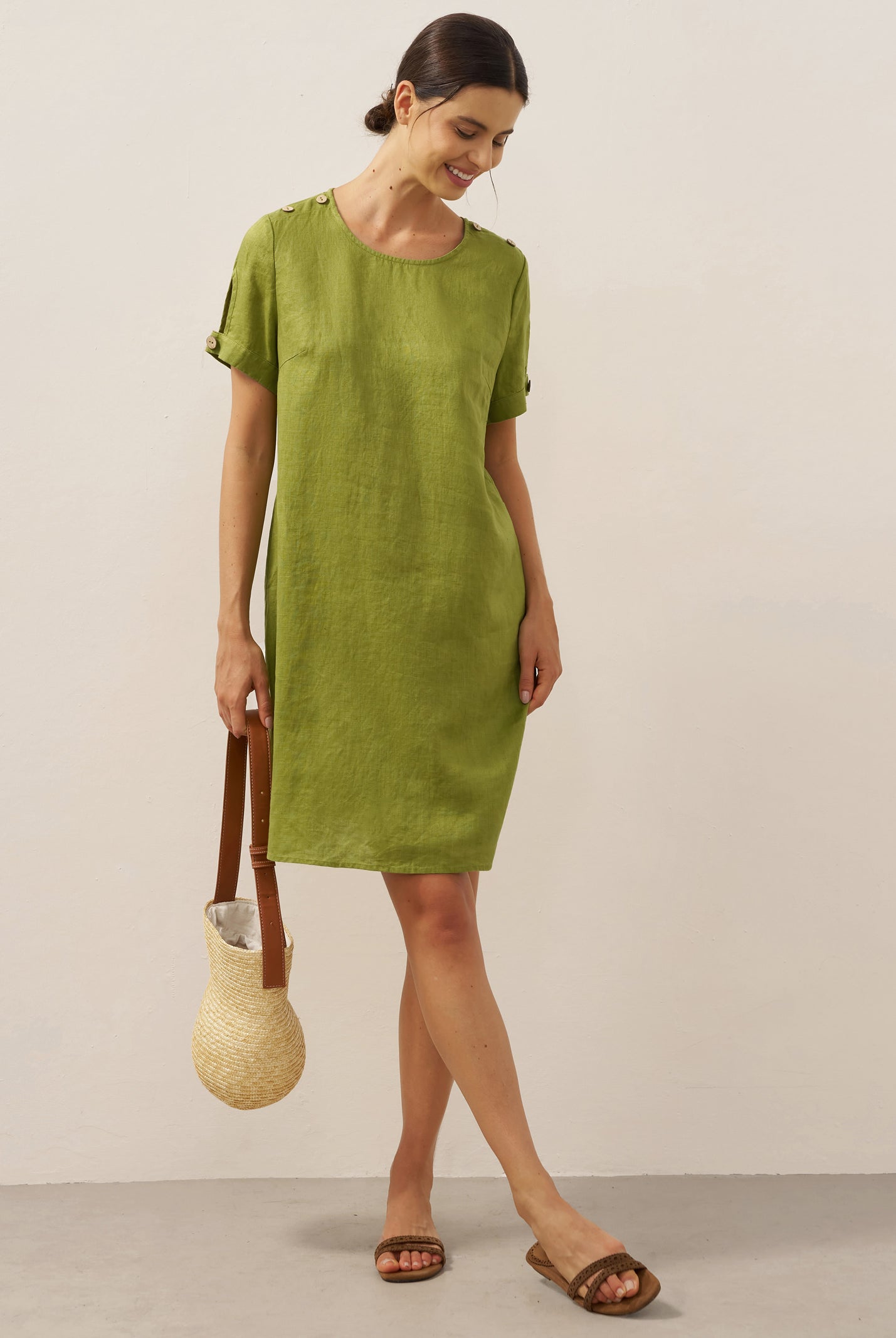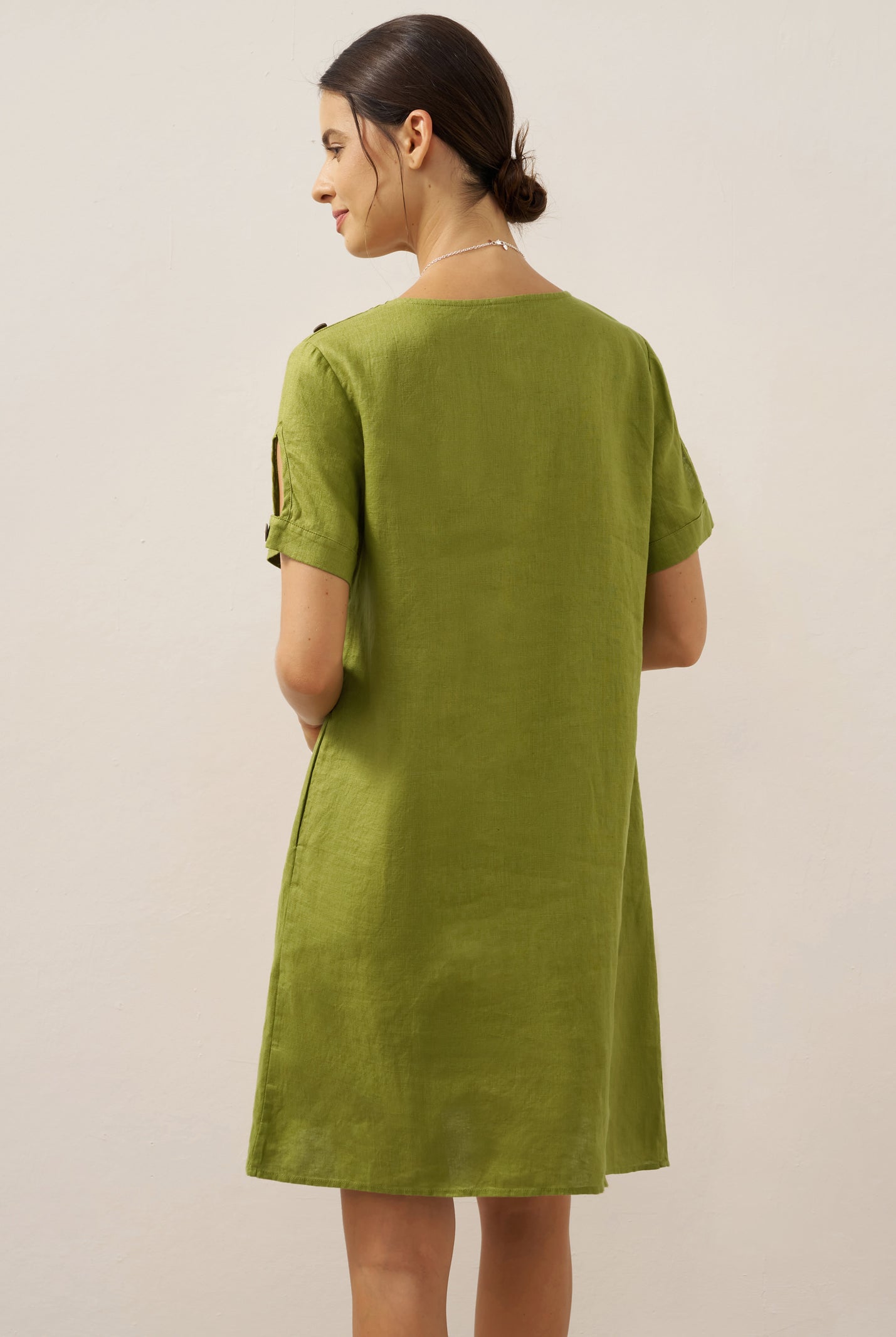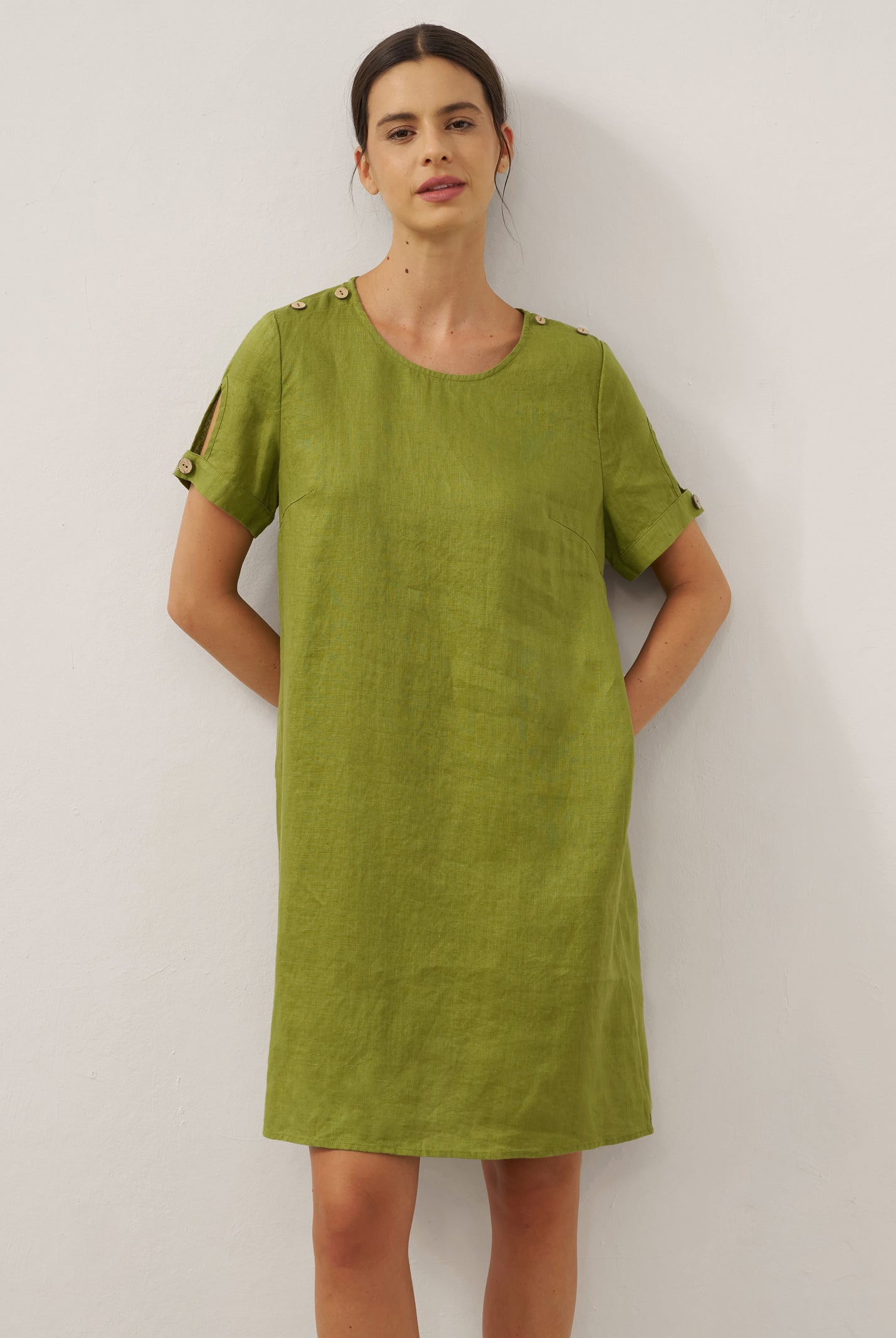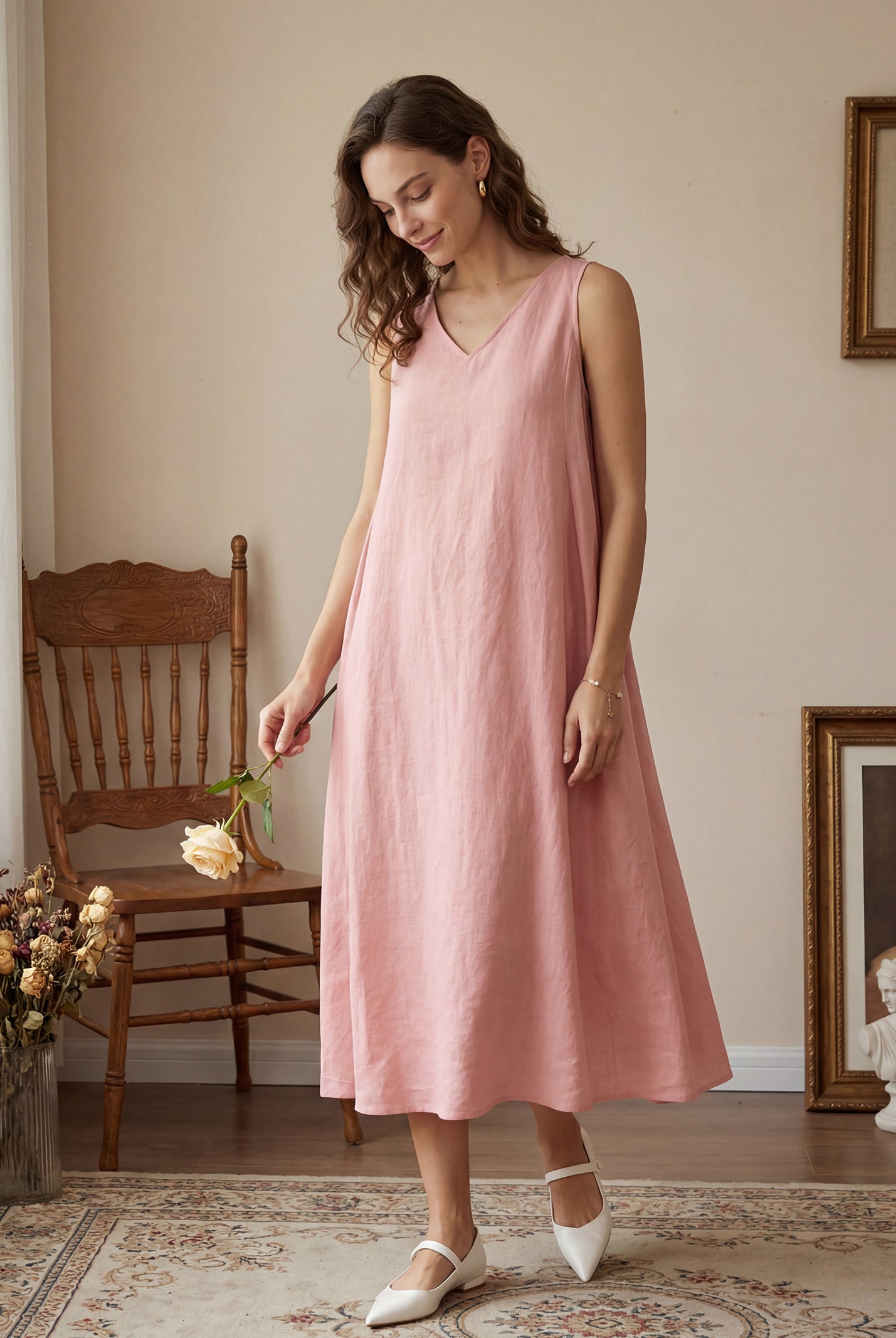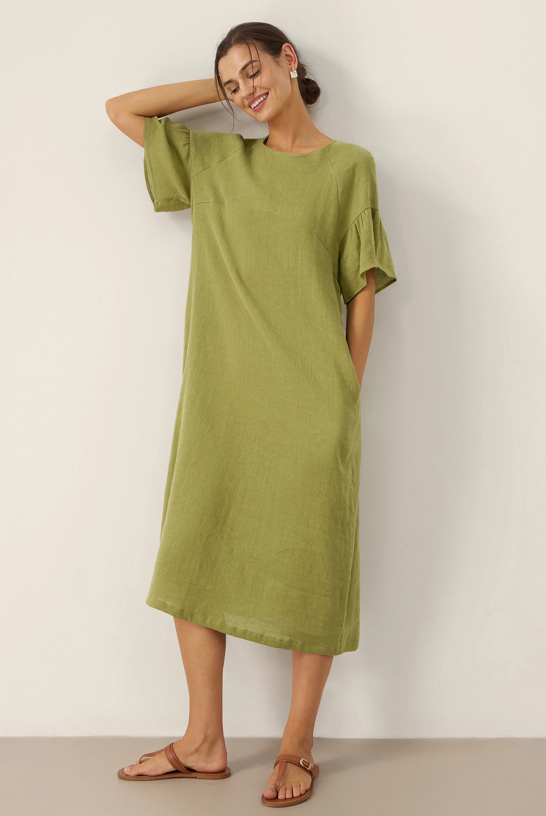 I didn’t expect a linen dress to feel this easy to wear. The deep green color is beautiful and the fabric is breathable even on warm days. The pockets are a lovely bonus, and the relaxed silhouette makes it perfect for walking around the city or meeting friends for coffee.