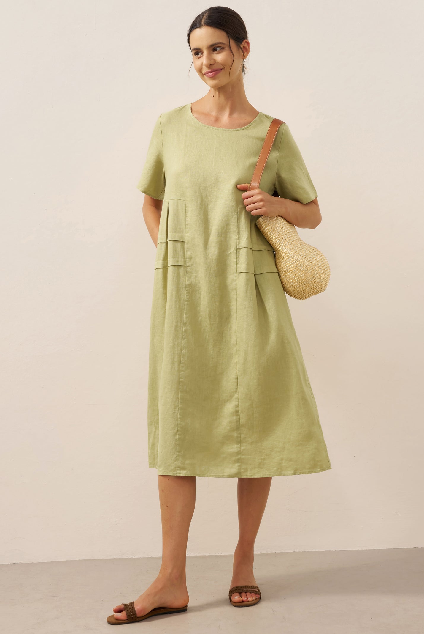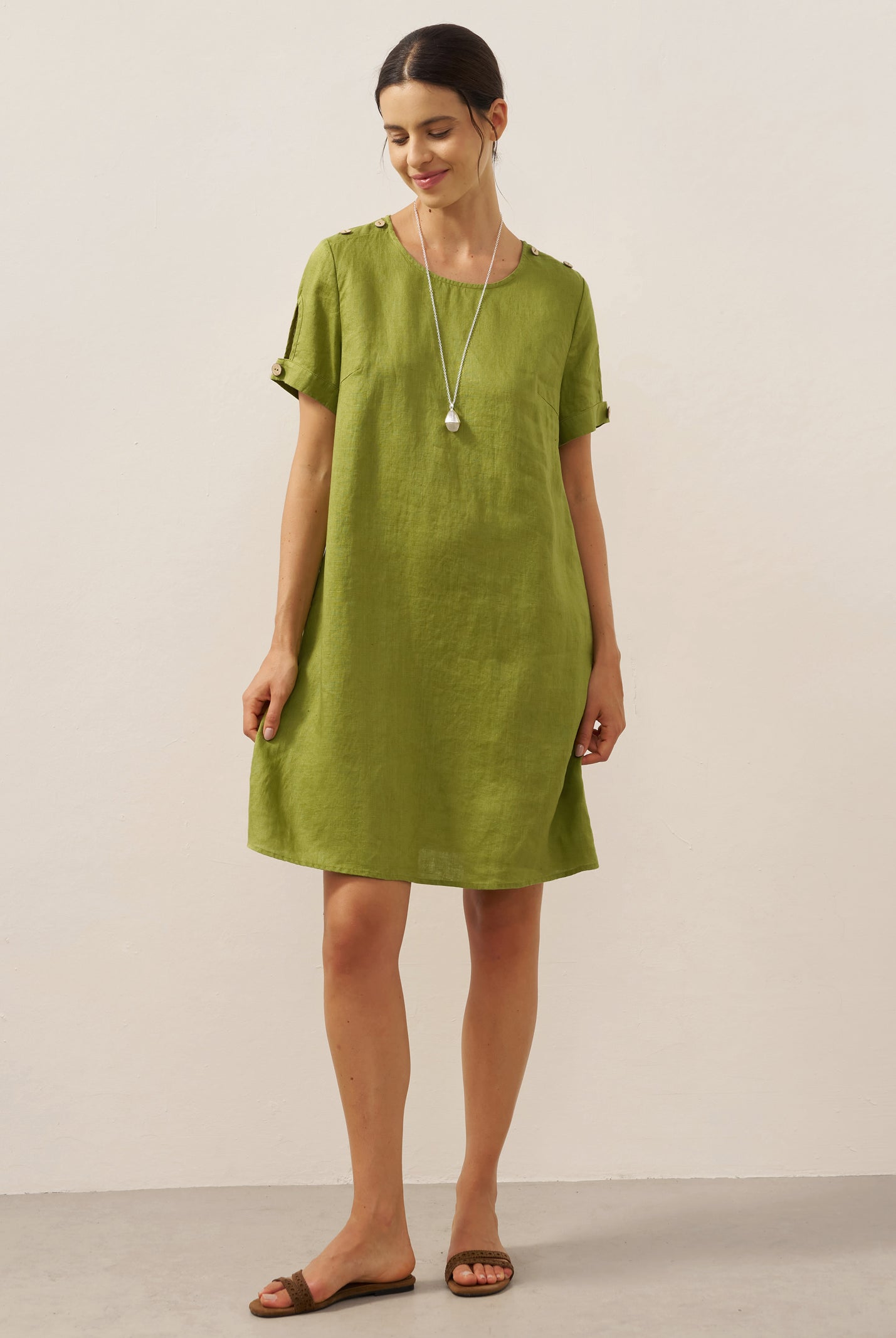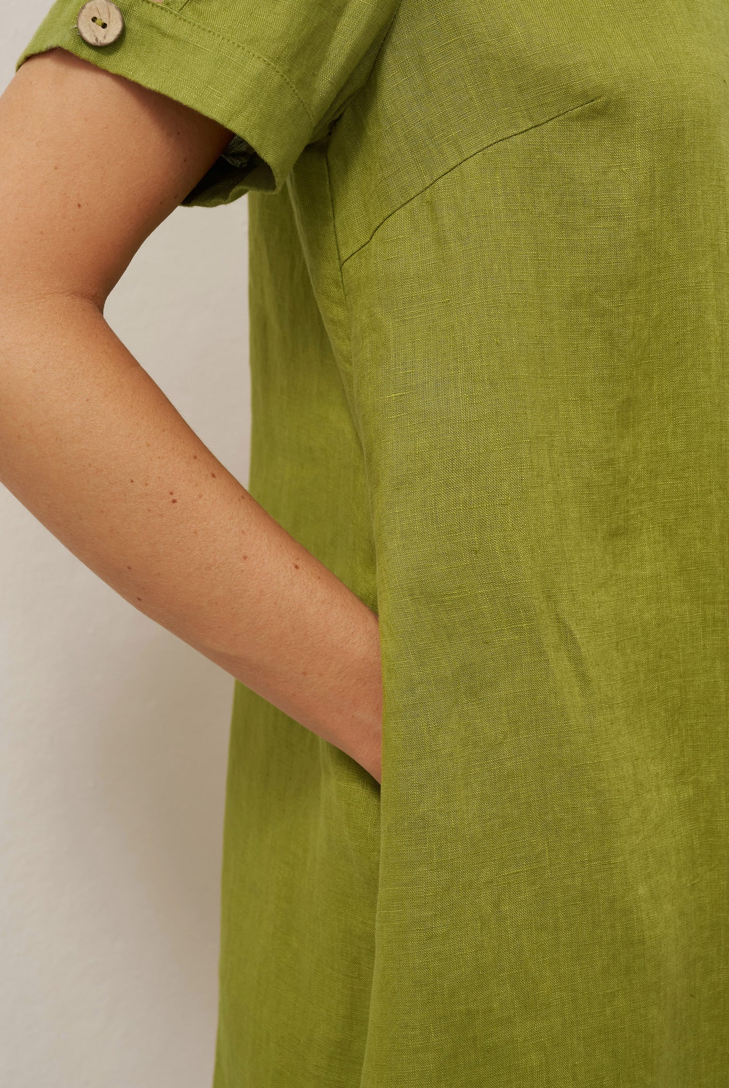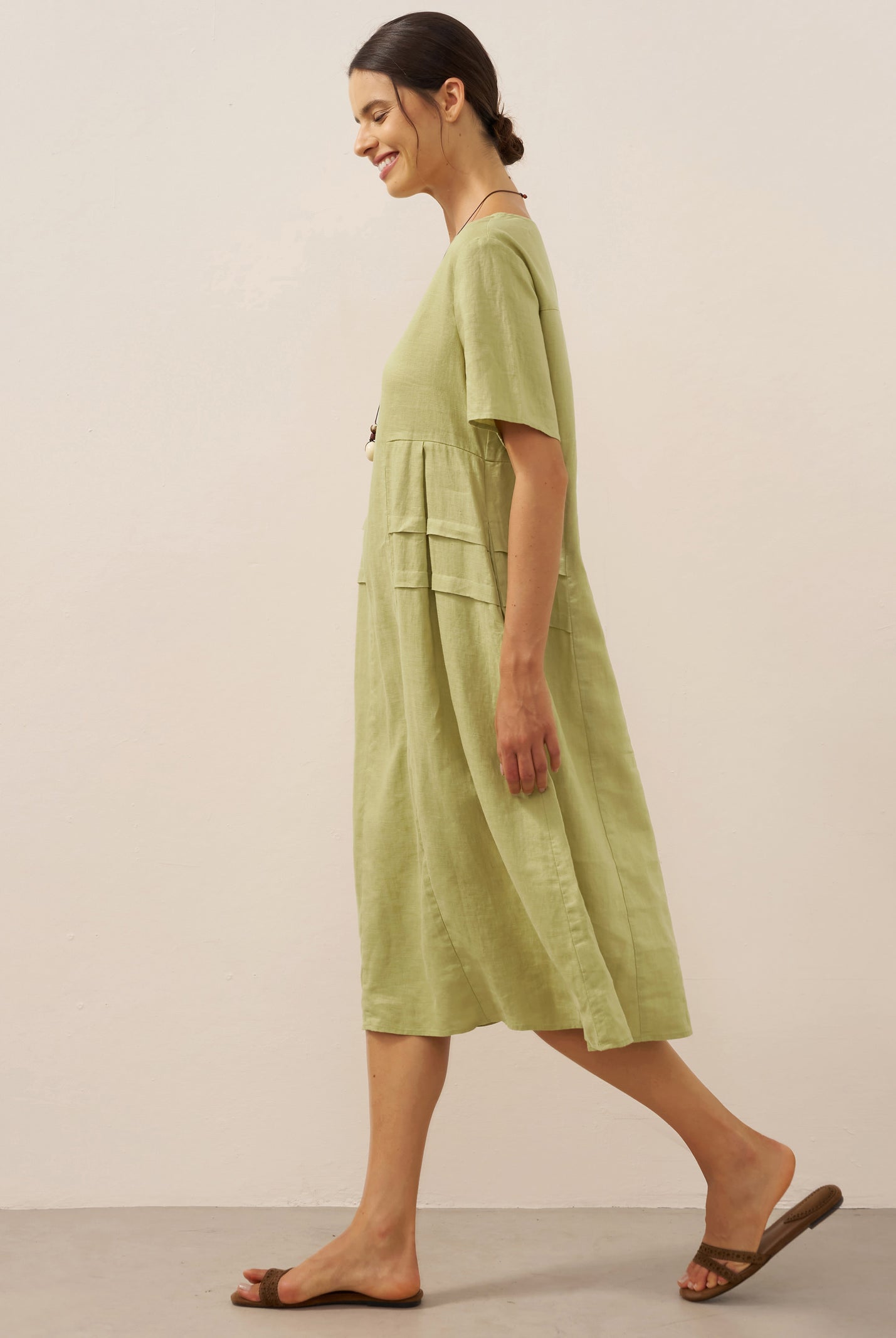 I didn’t expect a linen dress to feel this easy to wear. The deep green color is beautiful and the fabric is breathable even on warm days. The pockets are a lovely bonus, and the relaxed silhouette makes it perfect for walking around the city or meeting friends for coffee.