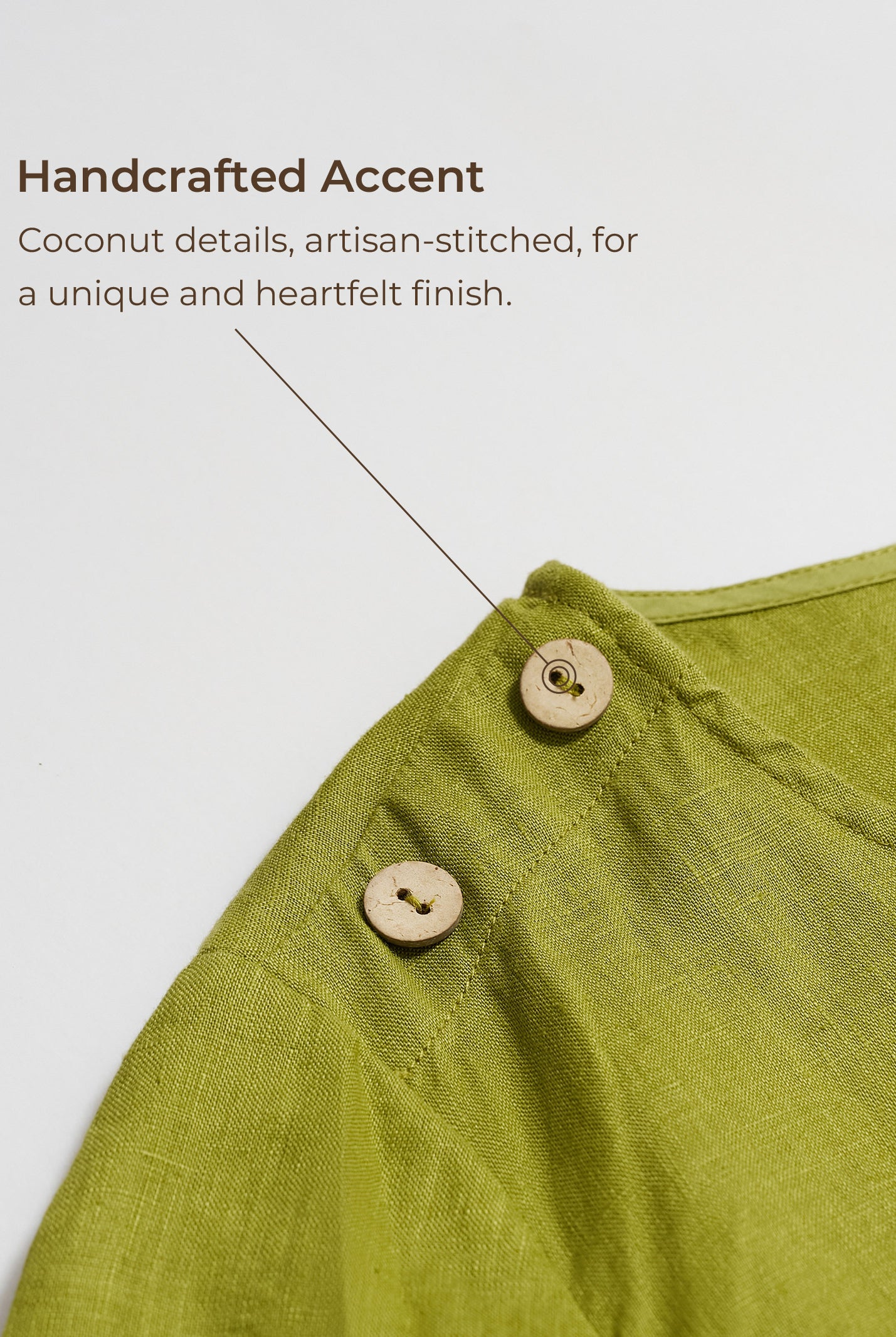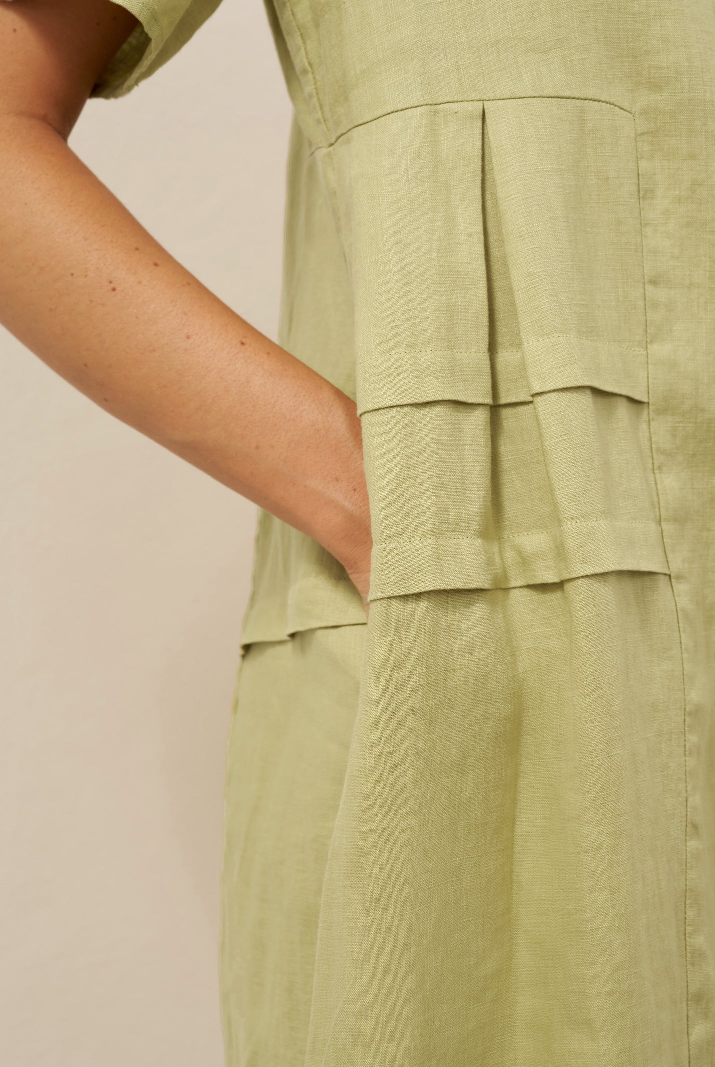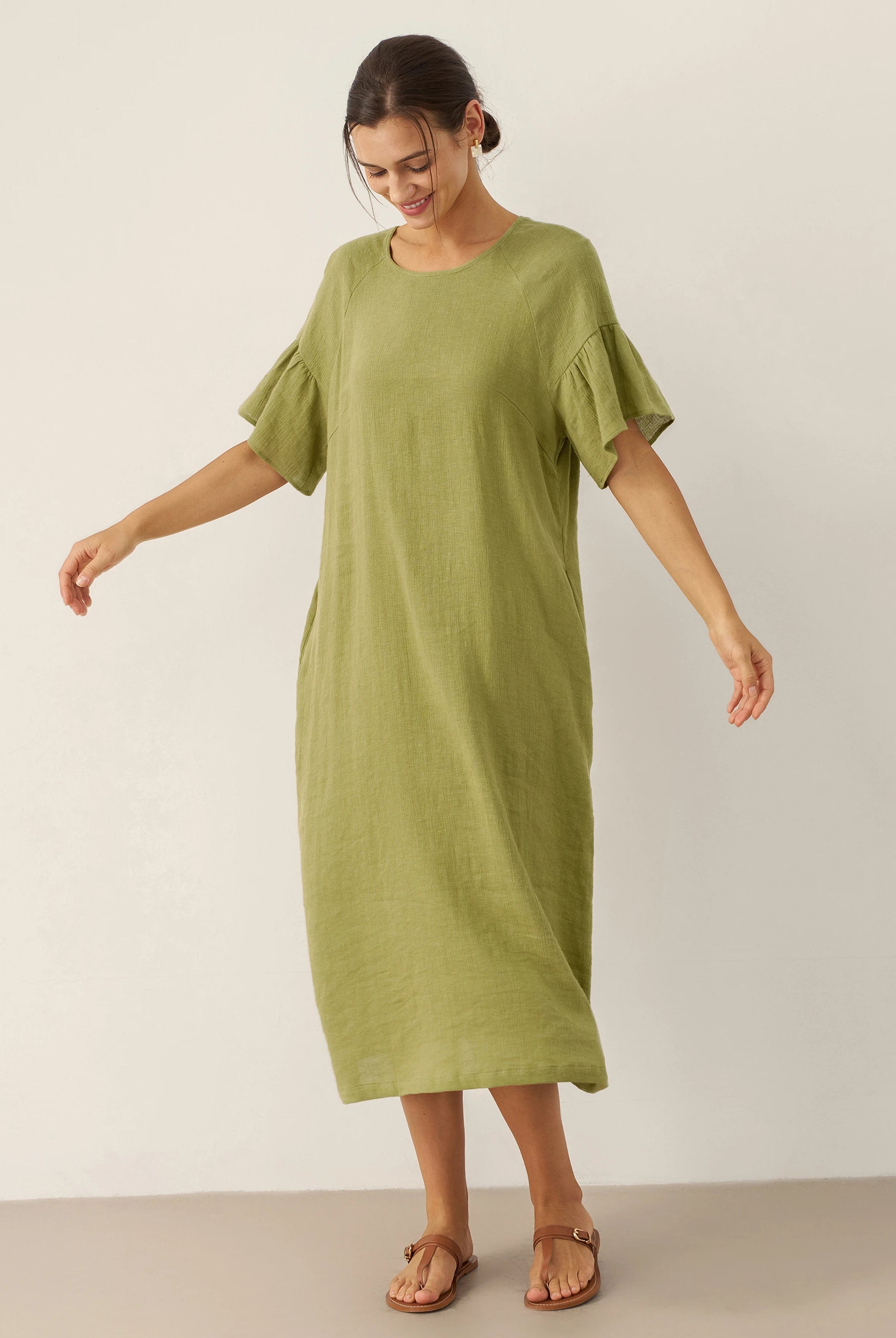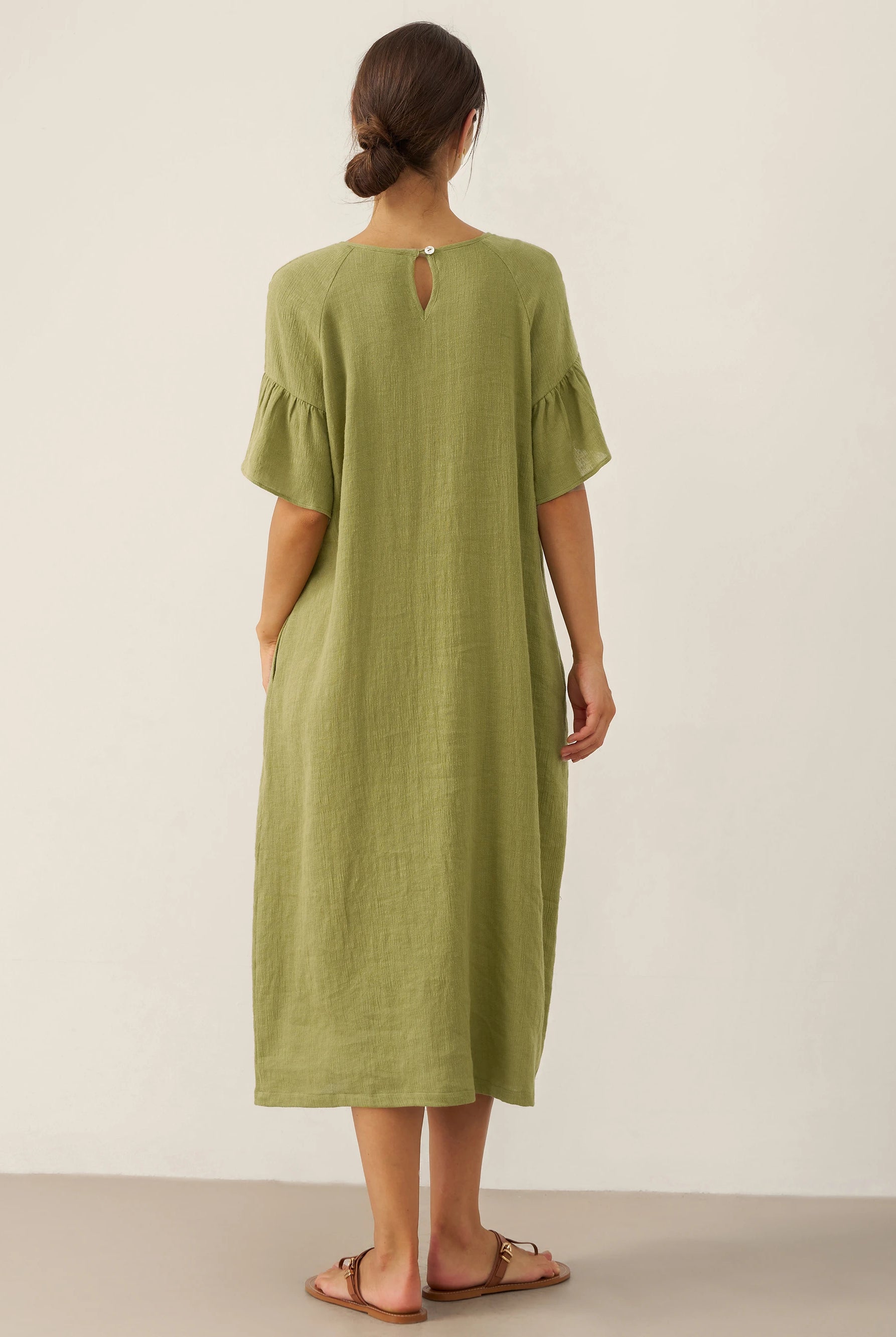 I didn’t expect a linen dress to feel this easy to wear. The deep green color is beautiful and the fabric is breathable even on warm days. The pockets are a lovely bonus, and the relaxed silhouette makes it perfect for walking around the city or meeting friends for coffee.