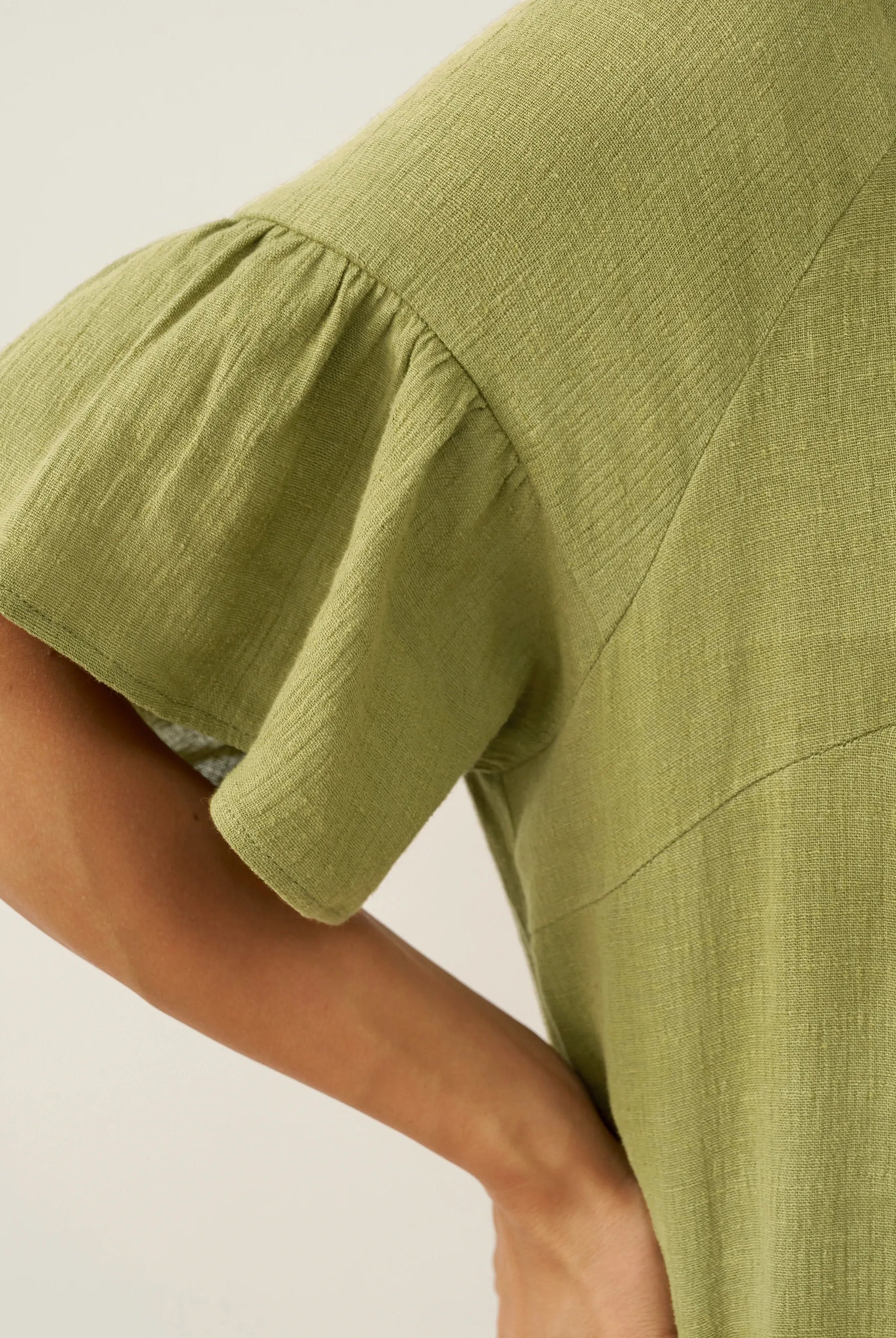 This linen dress feels light but still structured enough to look polished. The earthy green shade is so flattering and easy to style with sandals or flats. I love how comfortable it is while still looking put together.