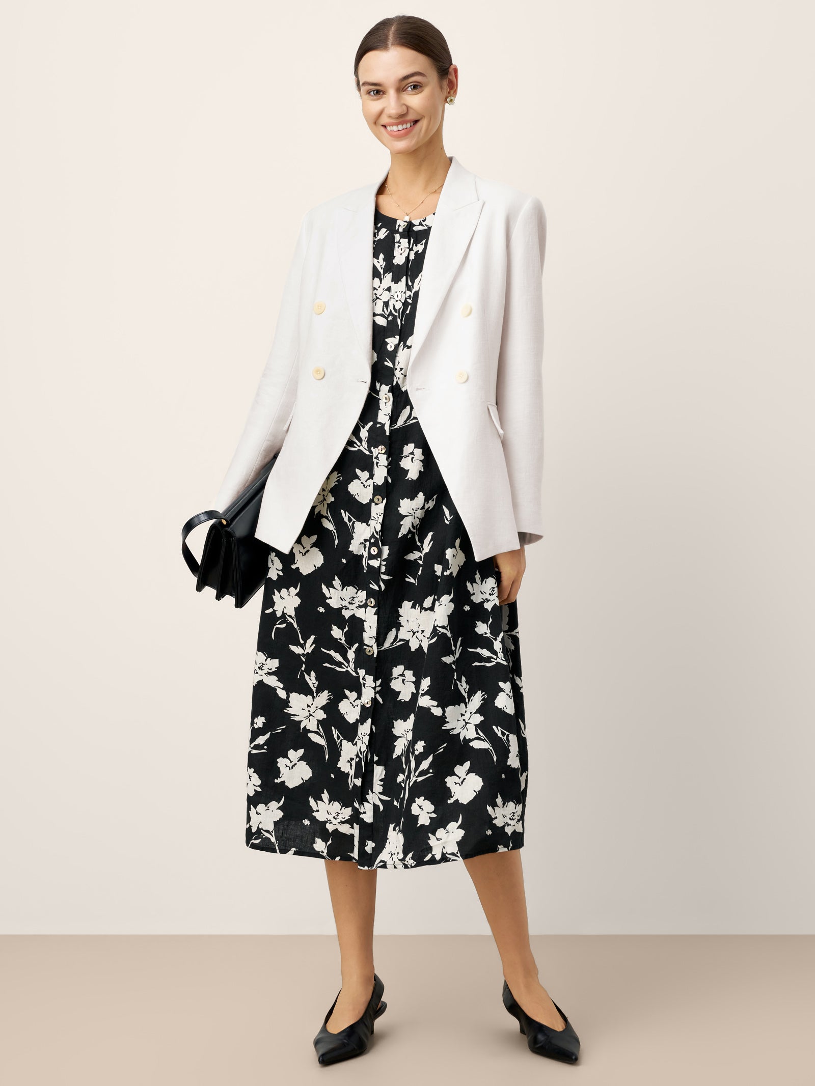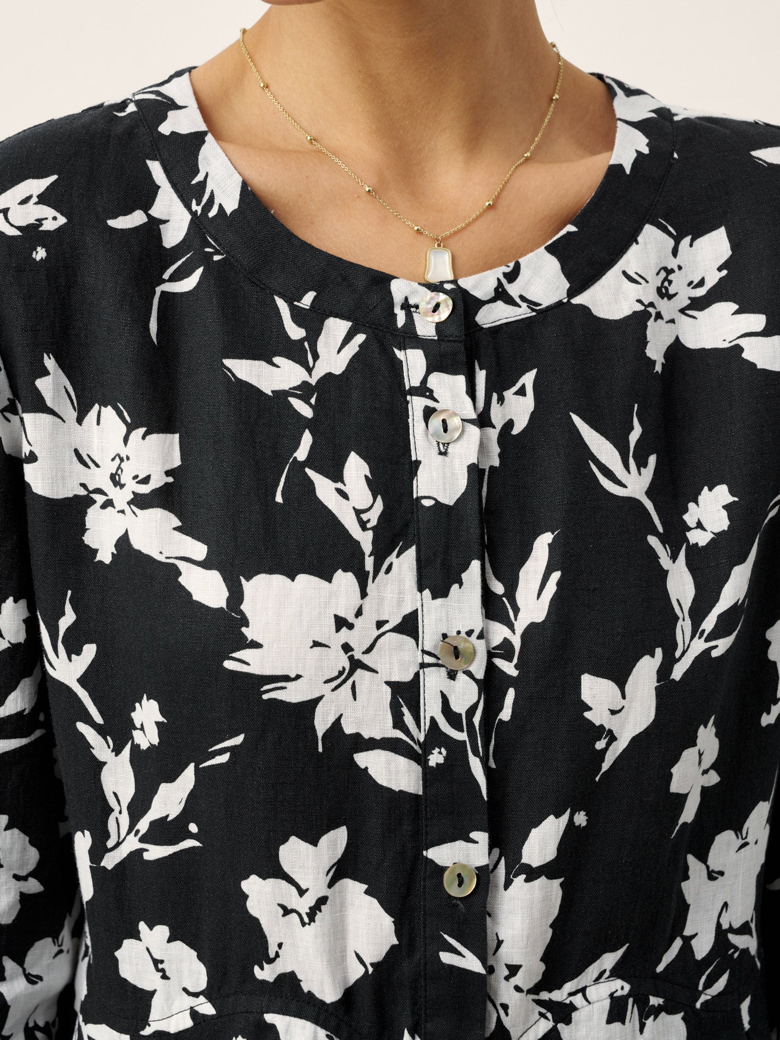 - Shell Button Accents: Iridescent shell buttons elevate the monochrome look with subtle, organic shine.