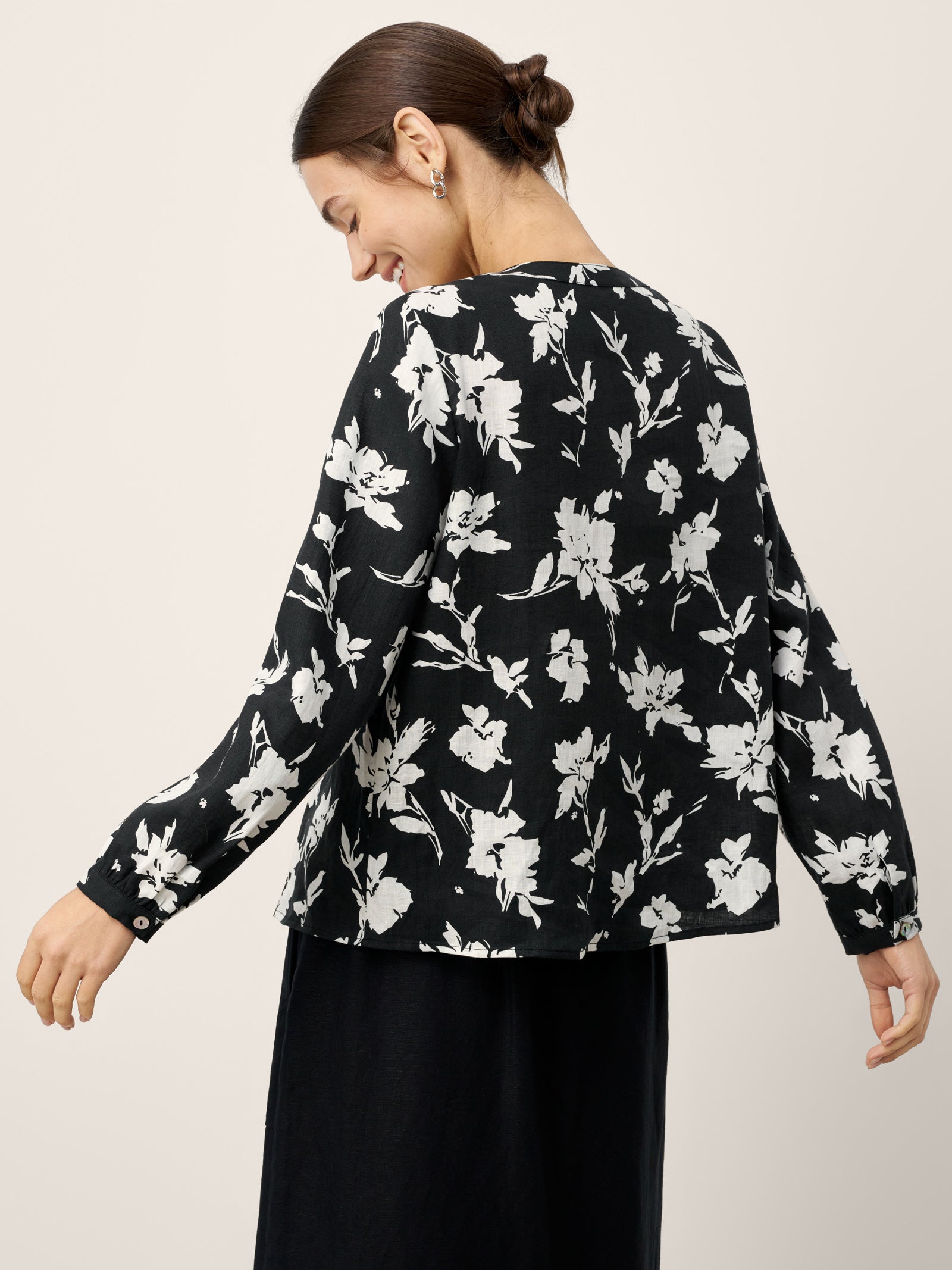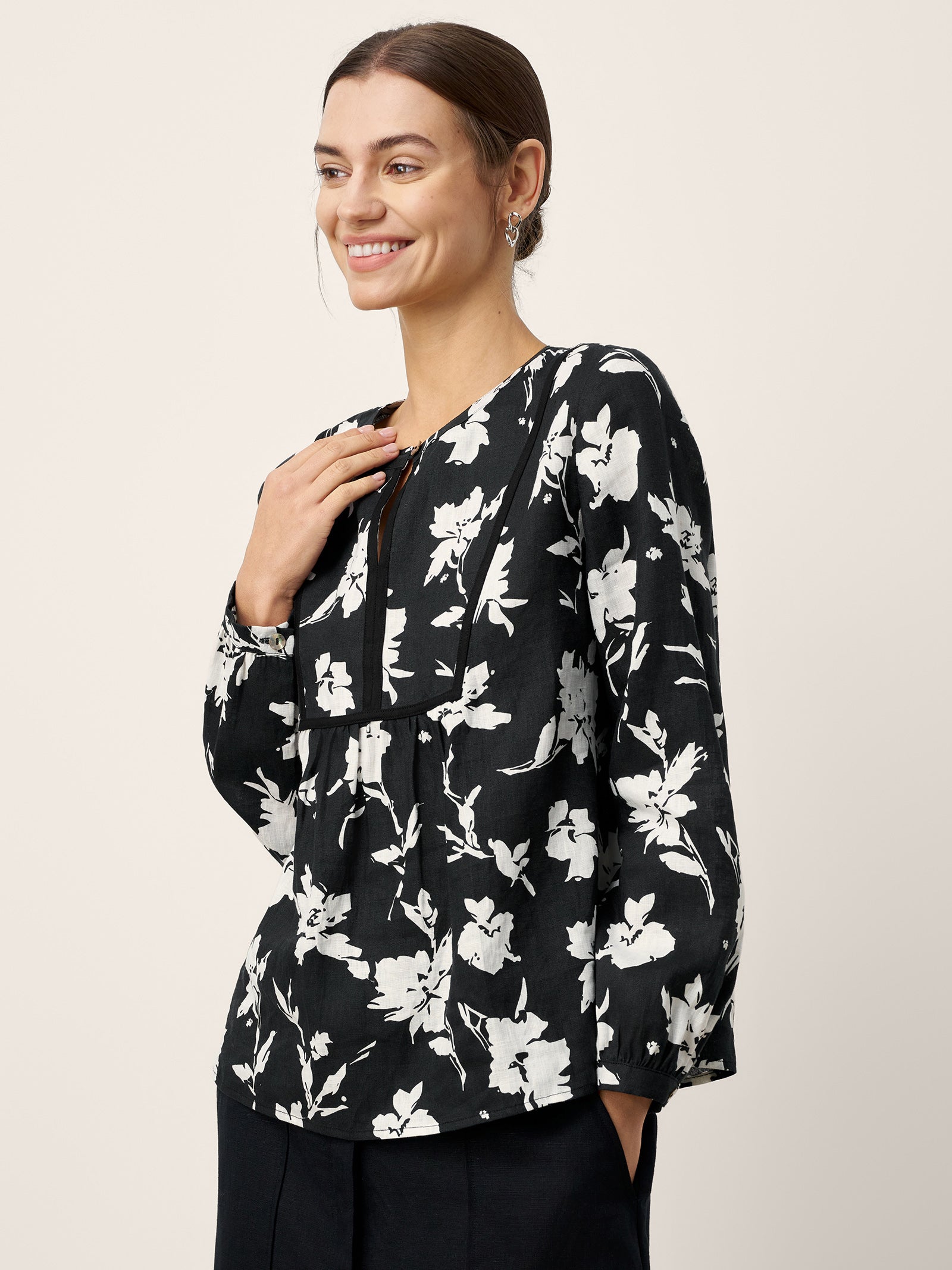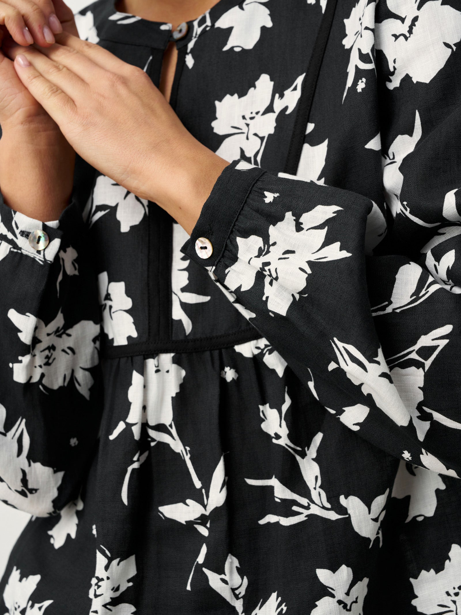 100% Linen Floral Printed Gathered Pullover Top AMIYA