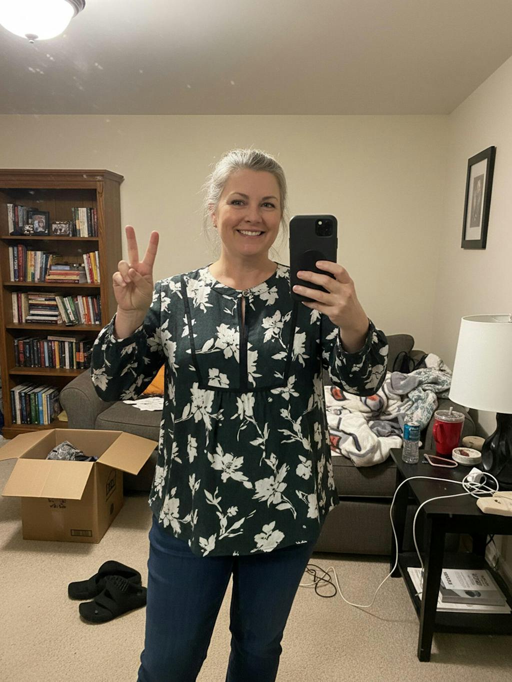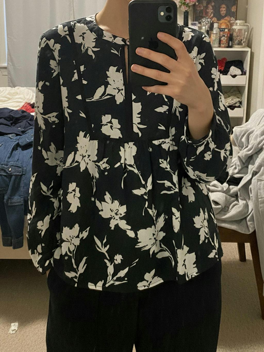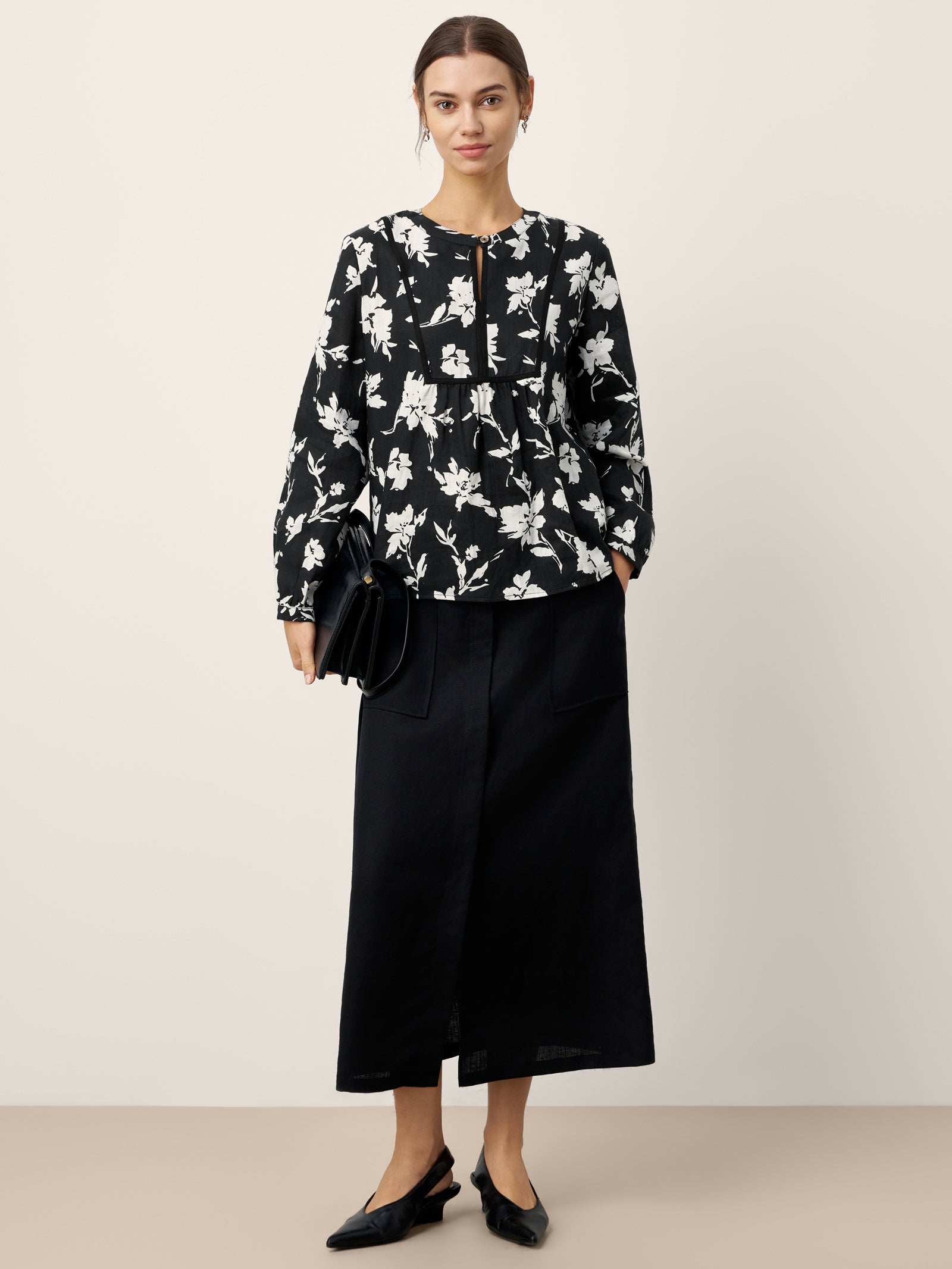 100% Linen Floral Printed Gathered Pullover Top AMIYA