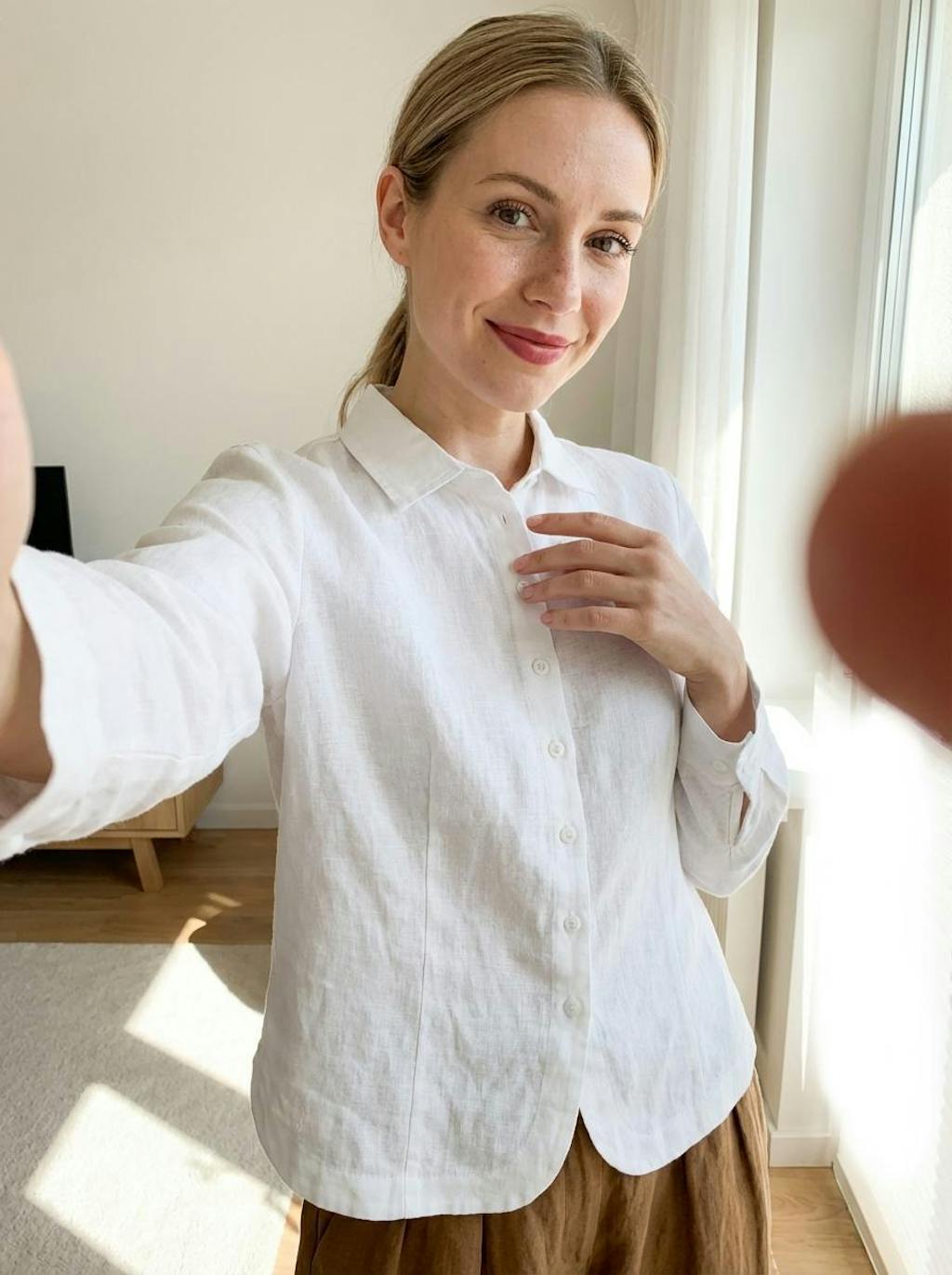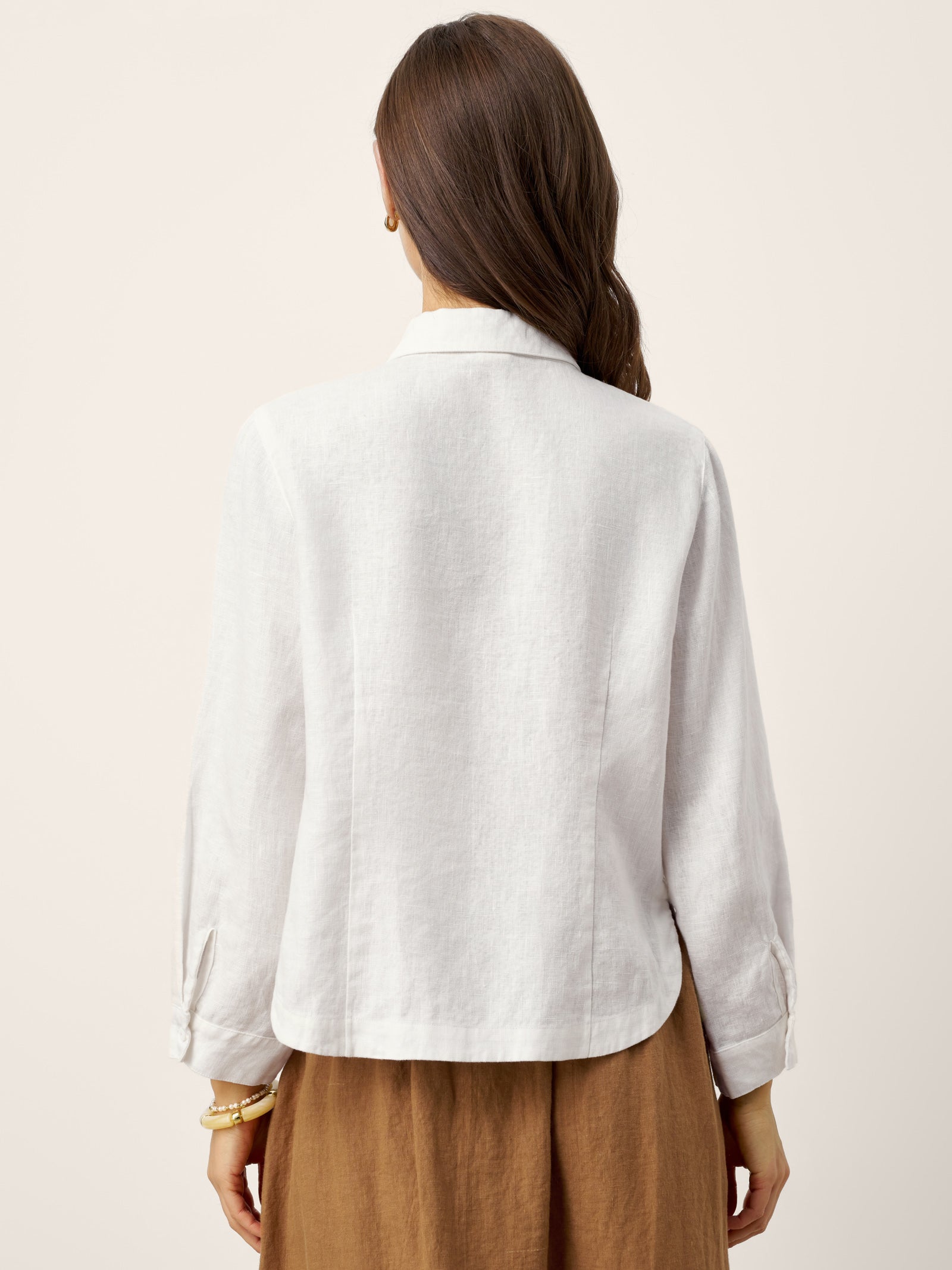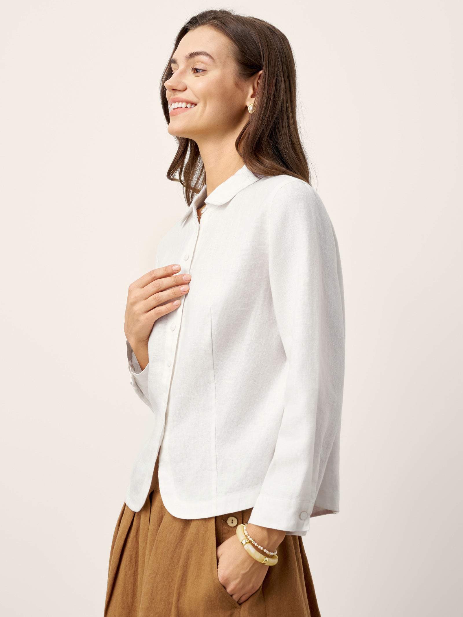 100% Linen Small Collar Curved Hem Tailored Shirt AVELINE