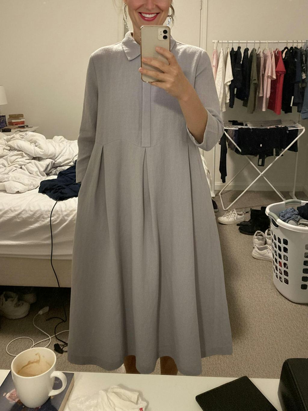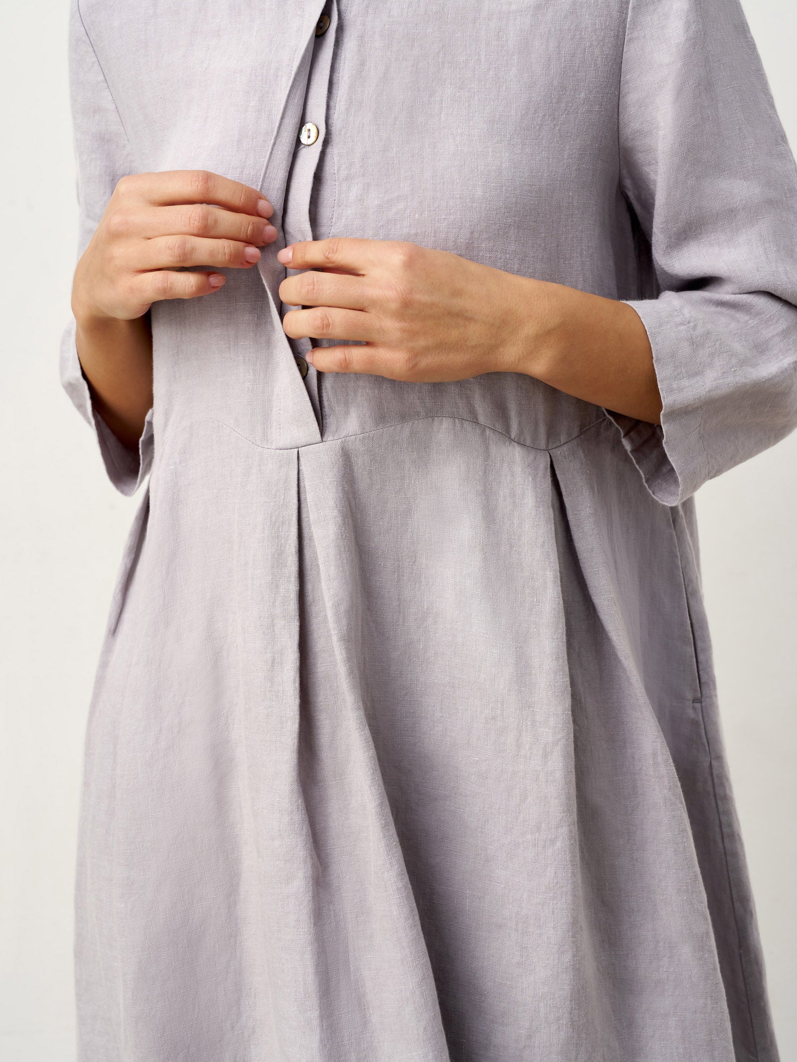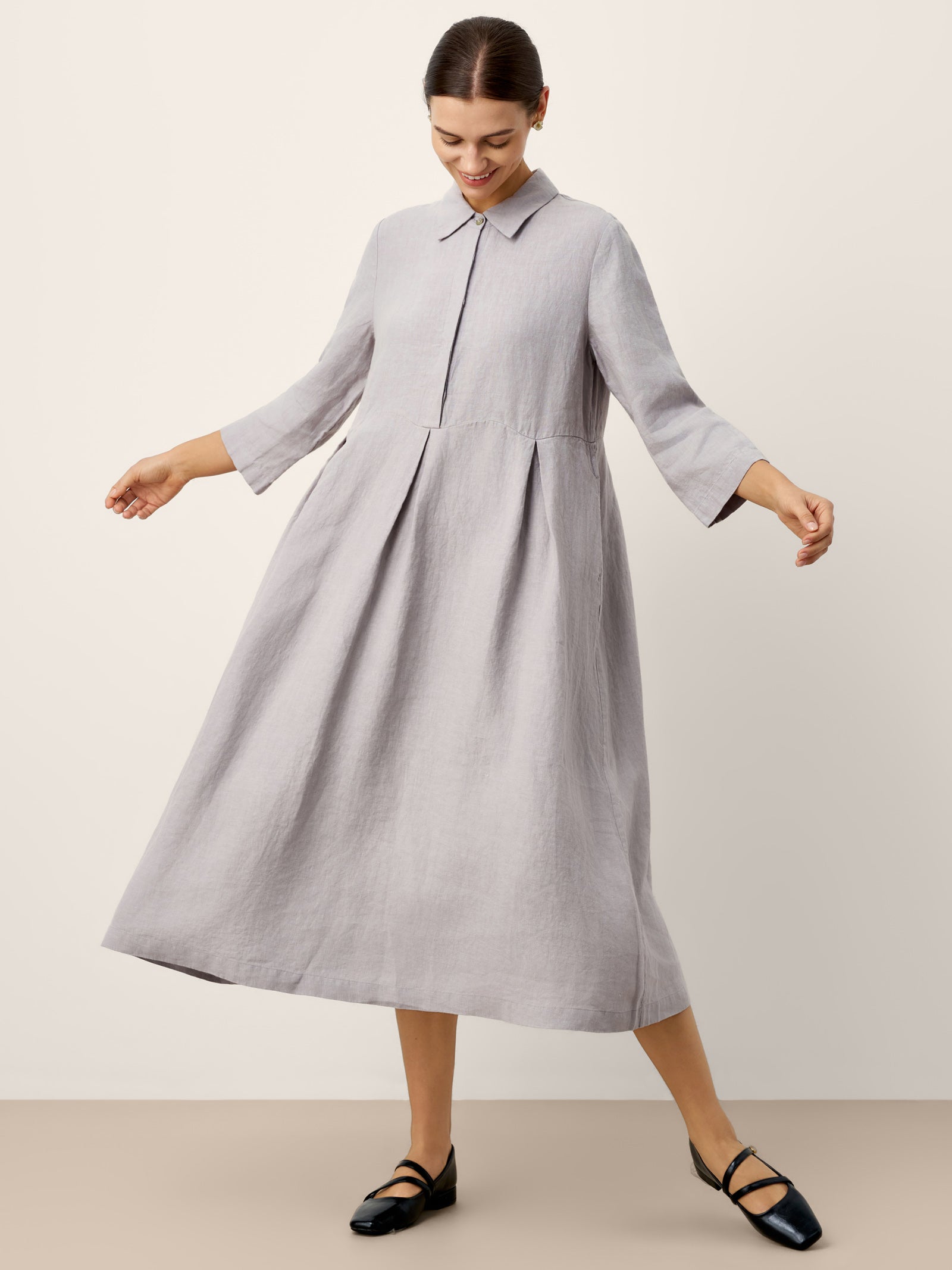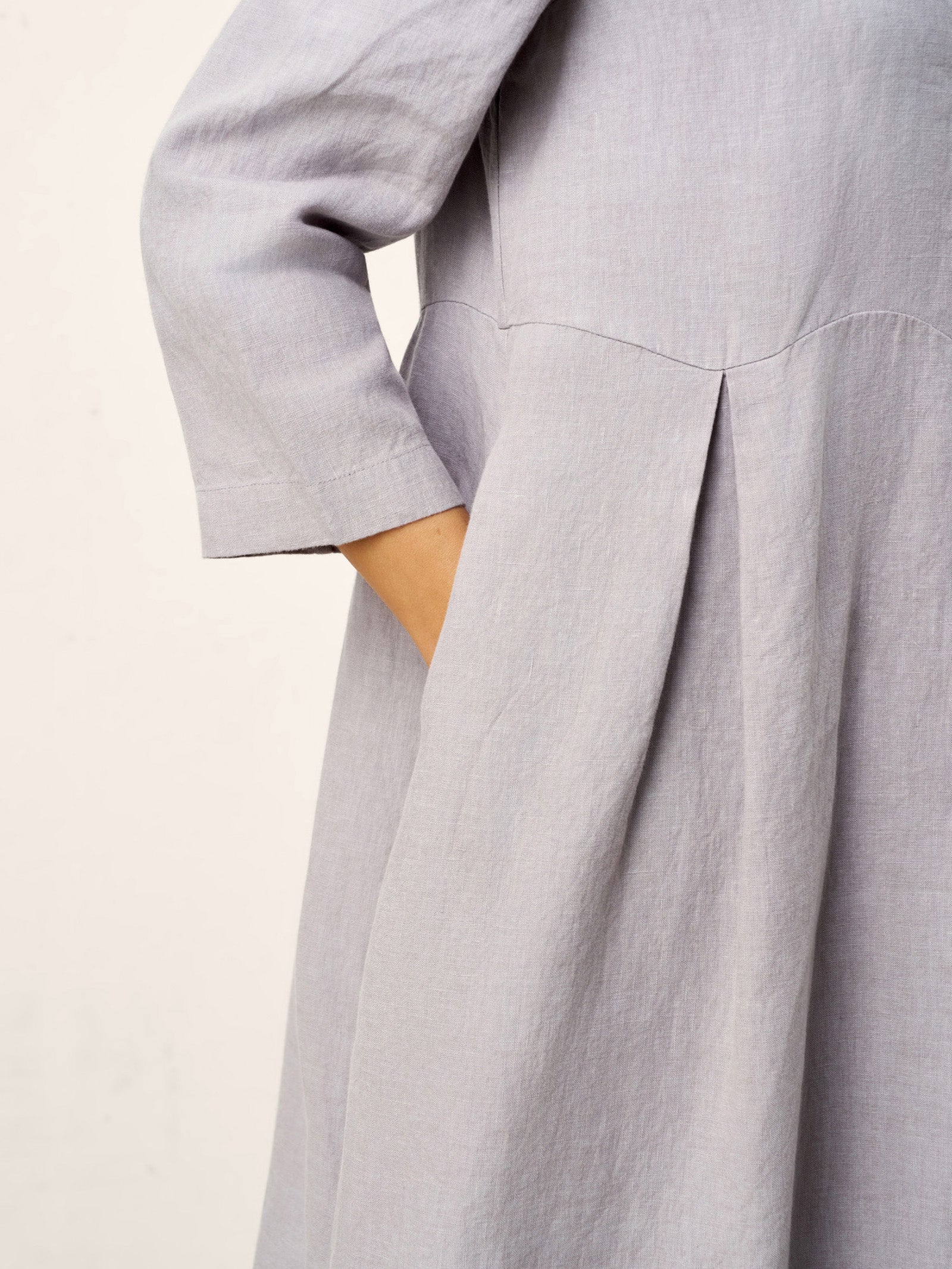 100% Linen Inverted Pleat Curved Seam Maxi Dress VALERIE