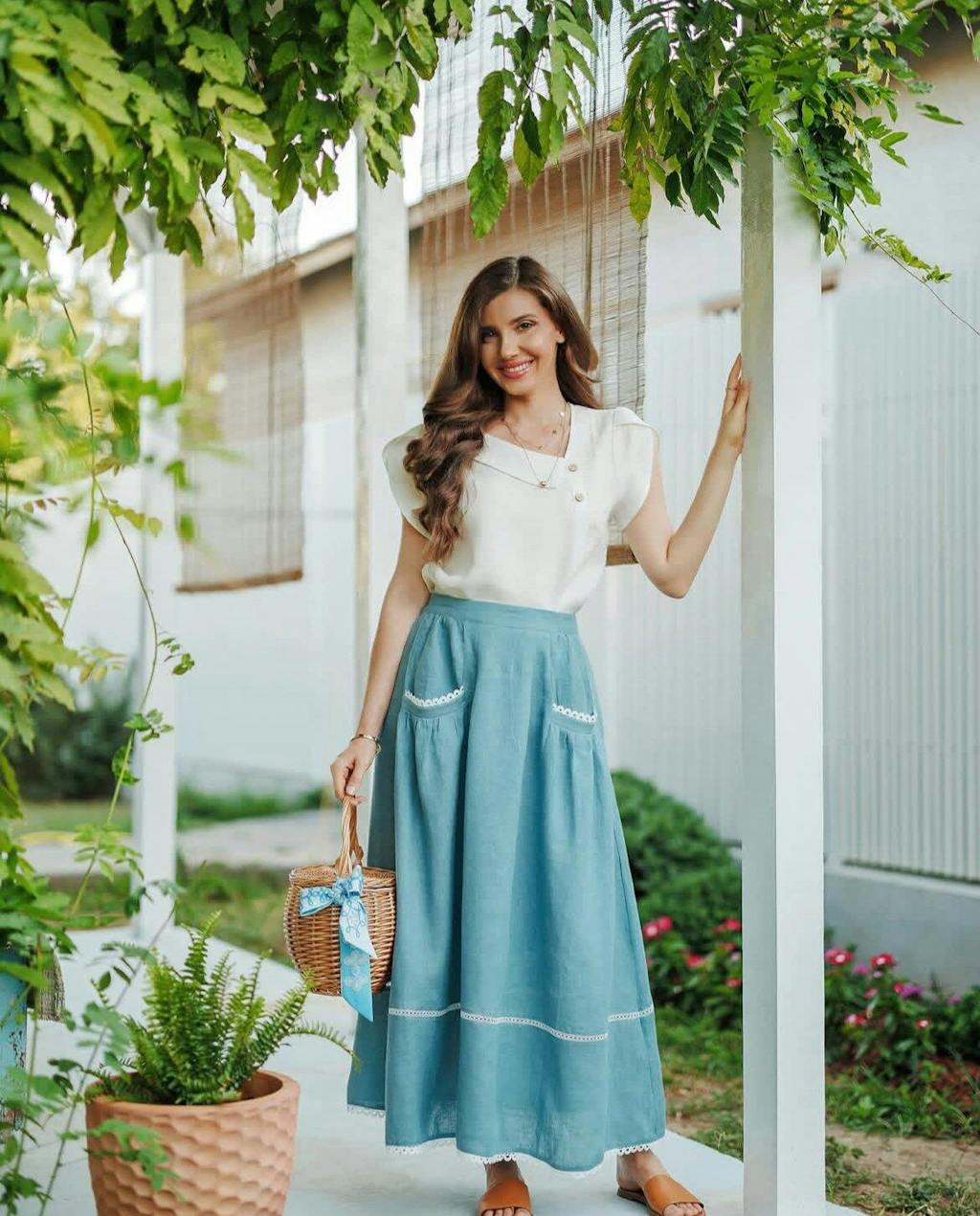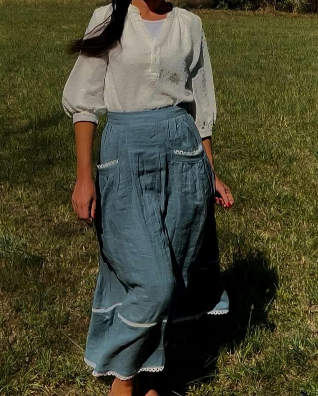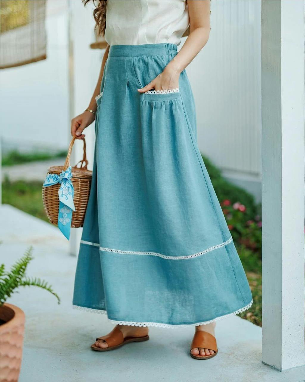 This linen skirt wraps you in timeless allure with its airy fabric and thoughtful details, making every movement feel both elegant and effortless.