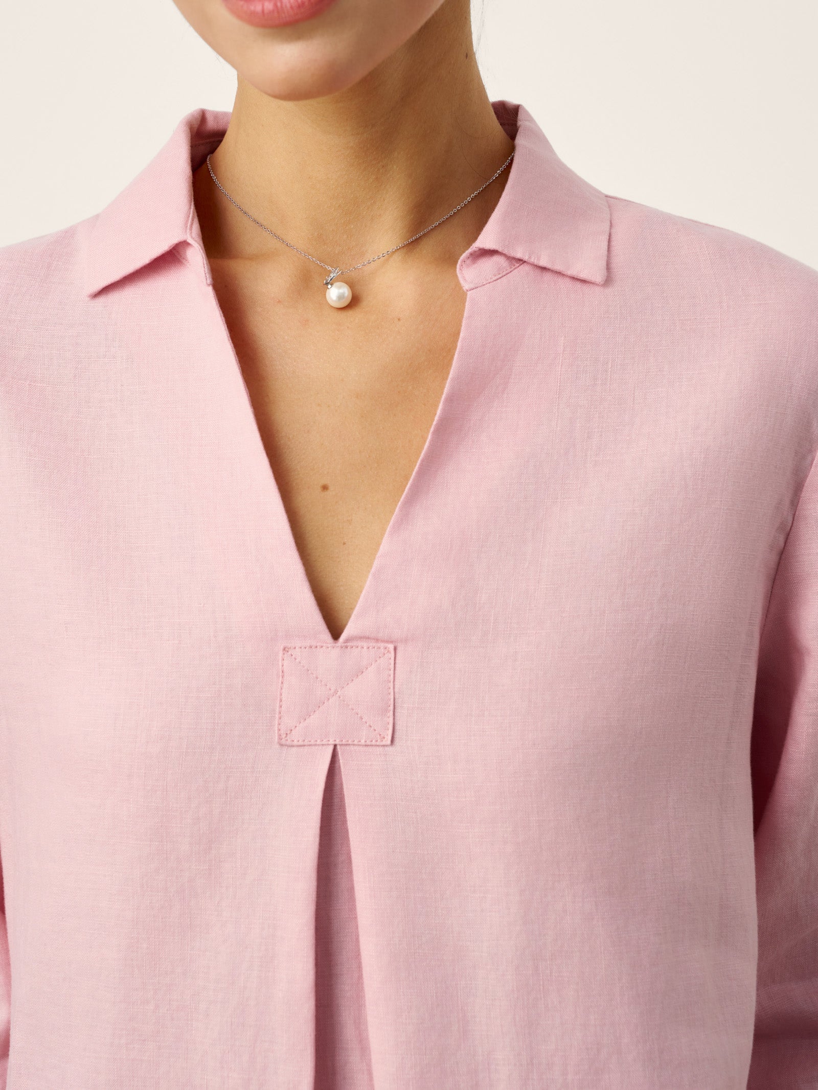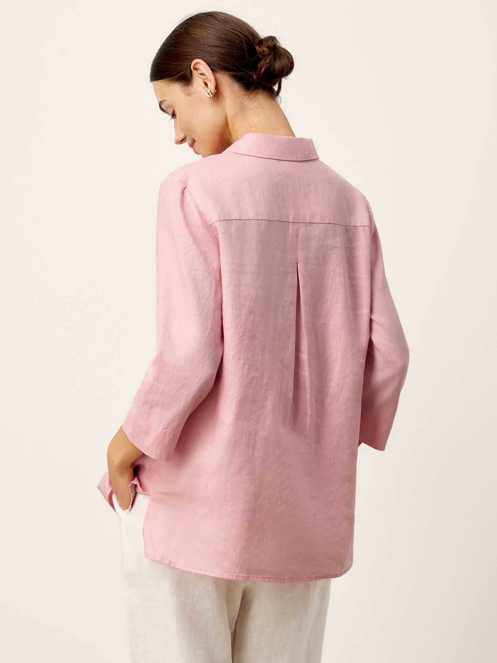 100% Linen Layered Lapel V-neck Sculpted Front Pleat Longline Top ODALYS