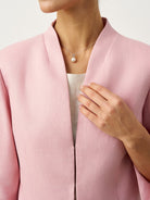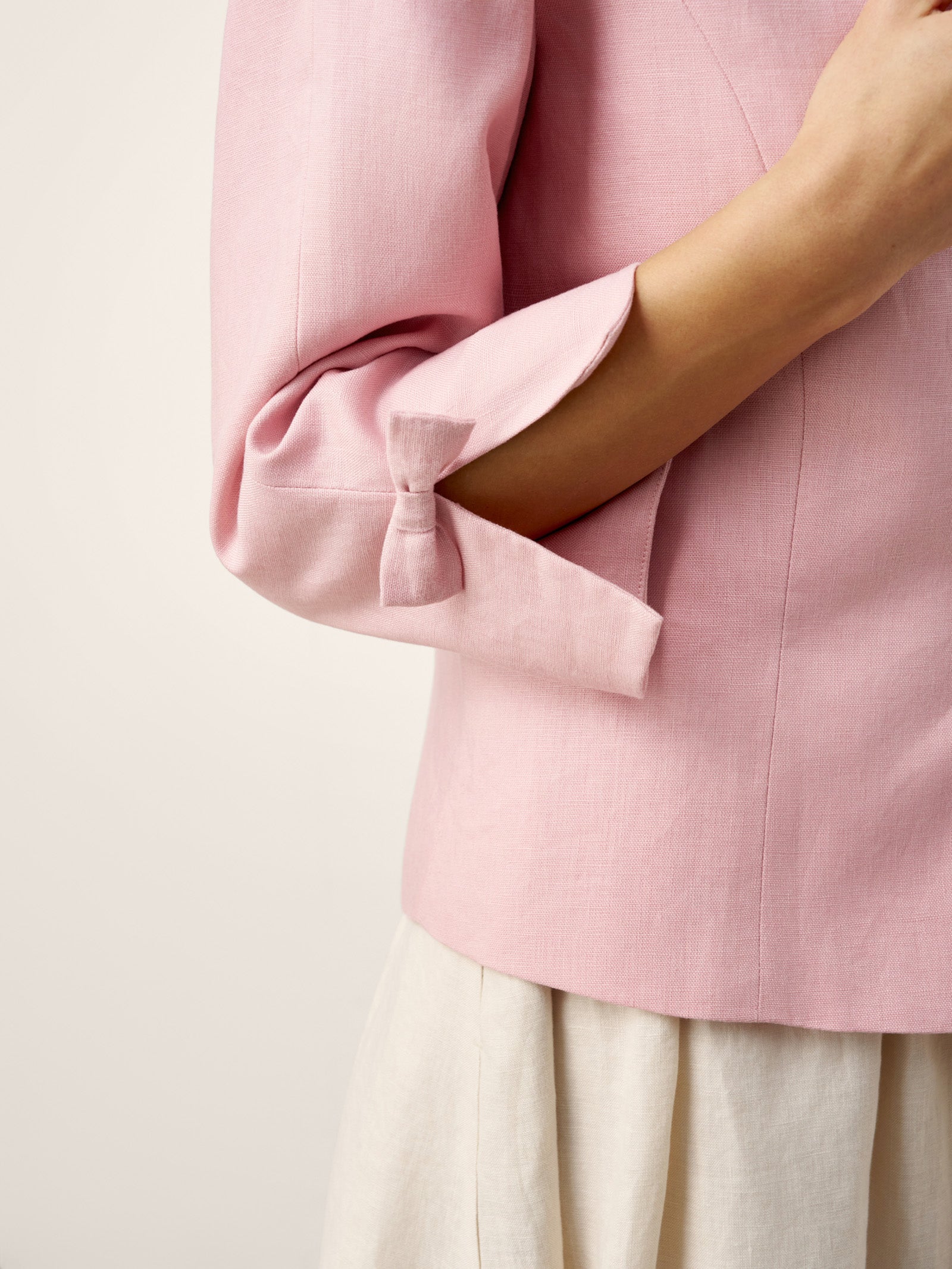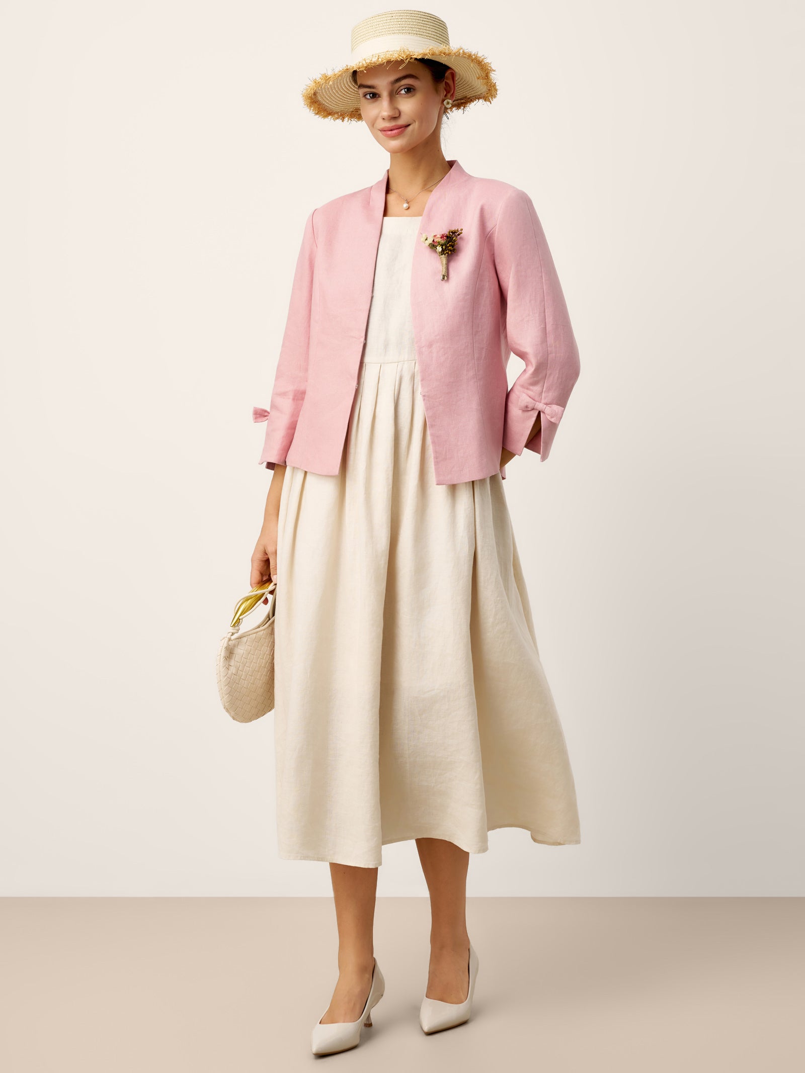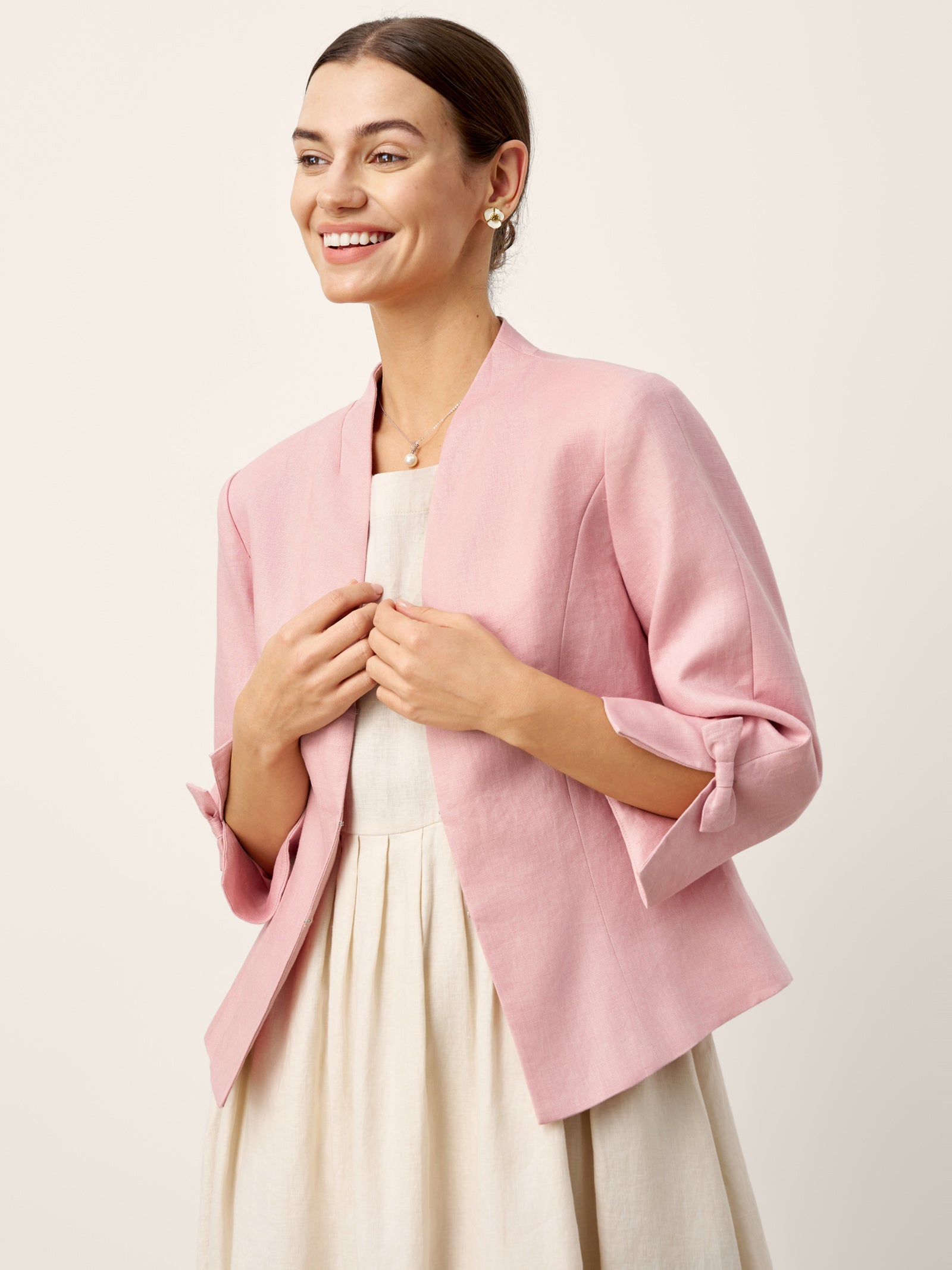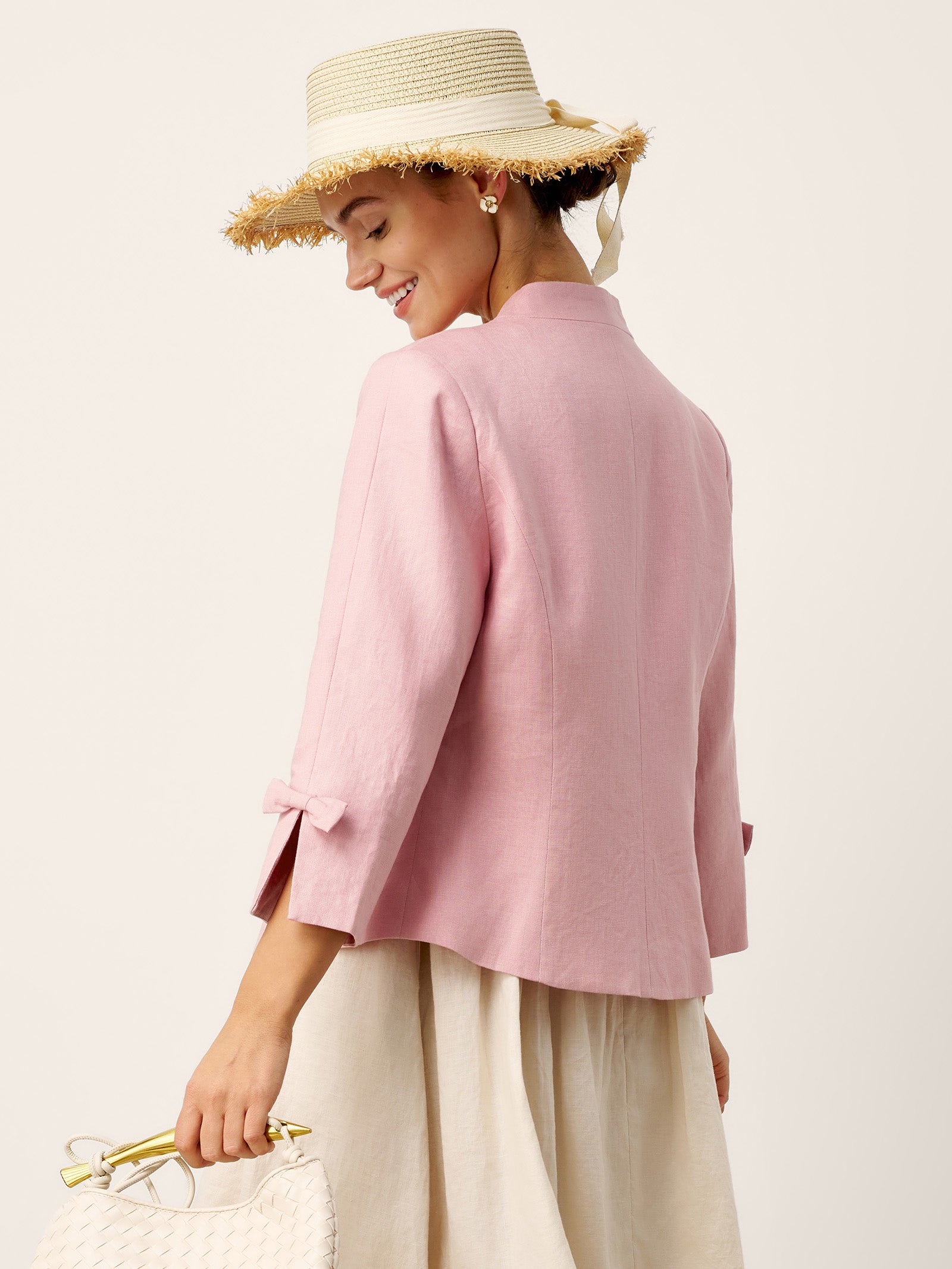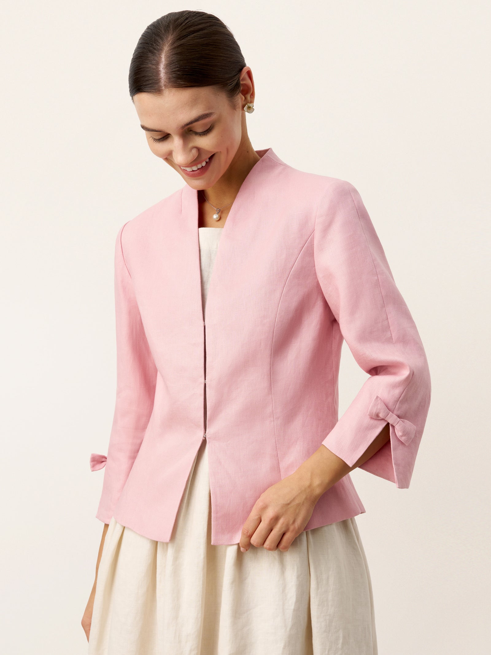 100% Linen Bow Cuff Stand Collar Jacket FINOLA