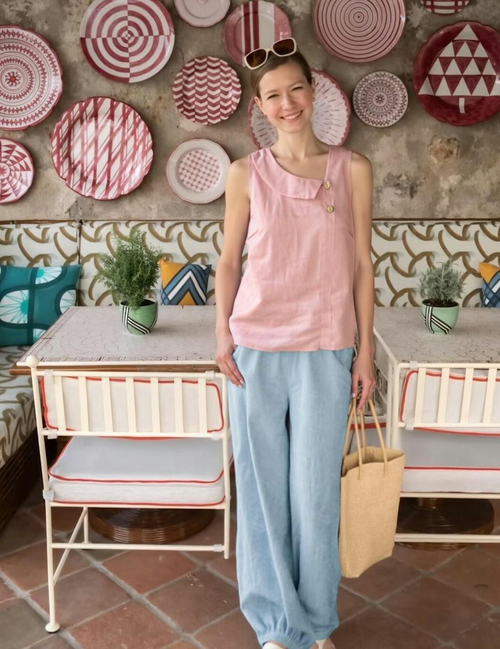 • City Explorer: Pair with wide-leg trousers and leather slide sandals for cultured comfort