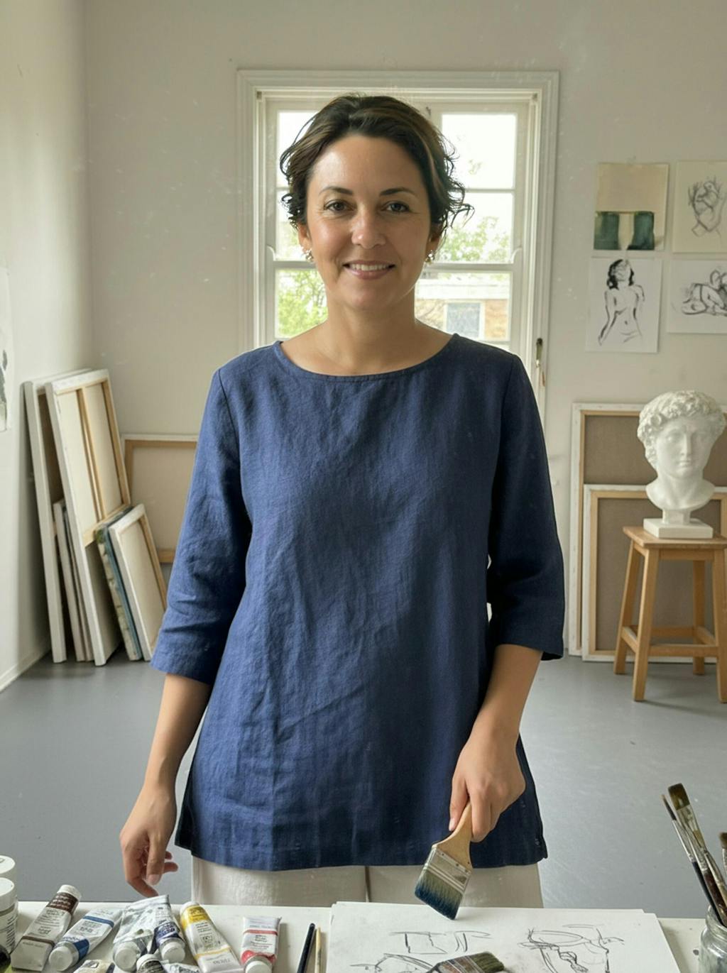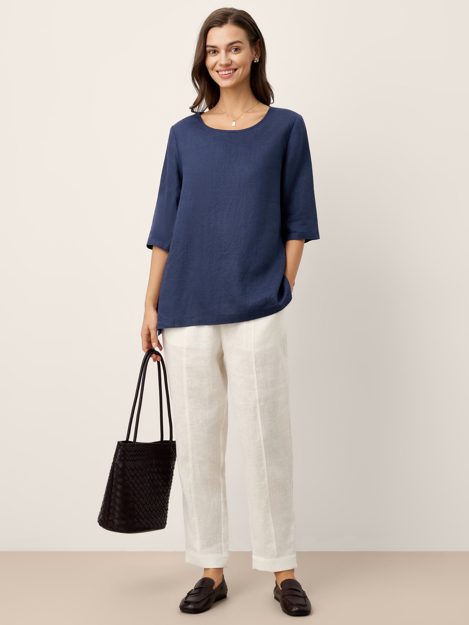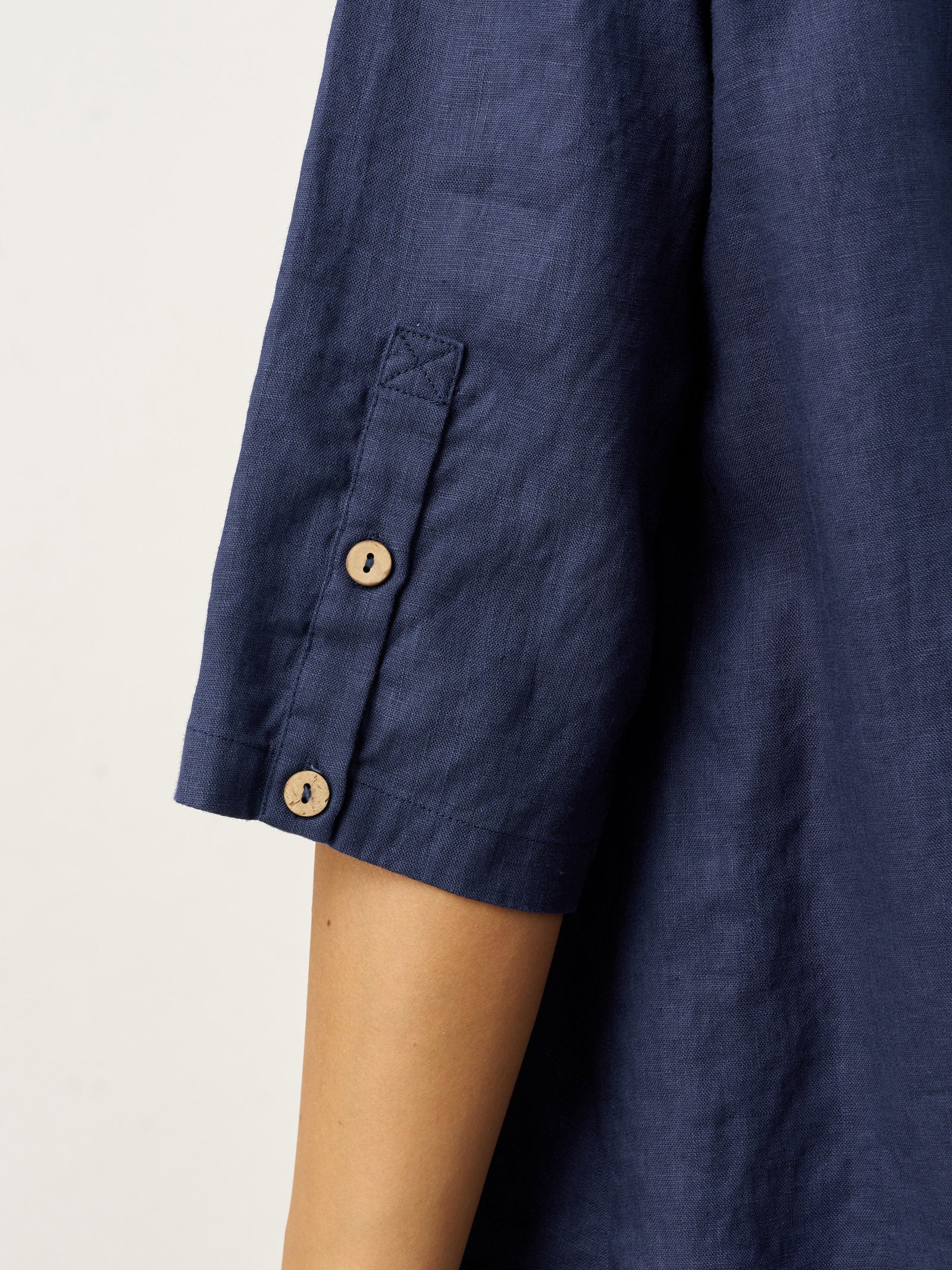 100% Linen Relaxed Back Button Top with Tab Sleeves SYLVANA